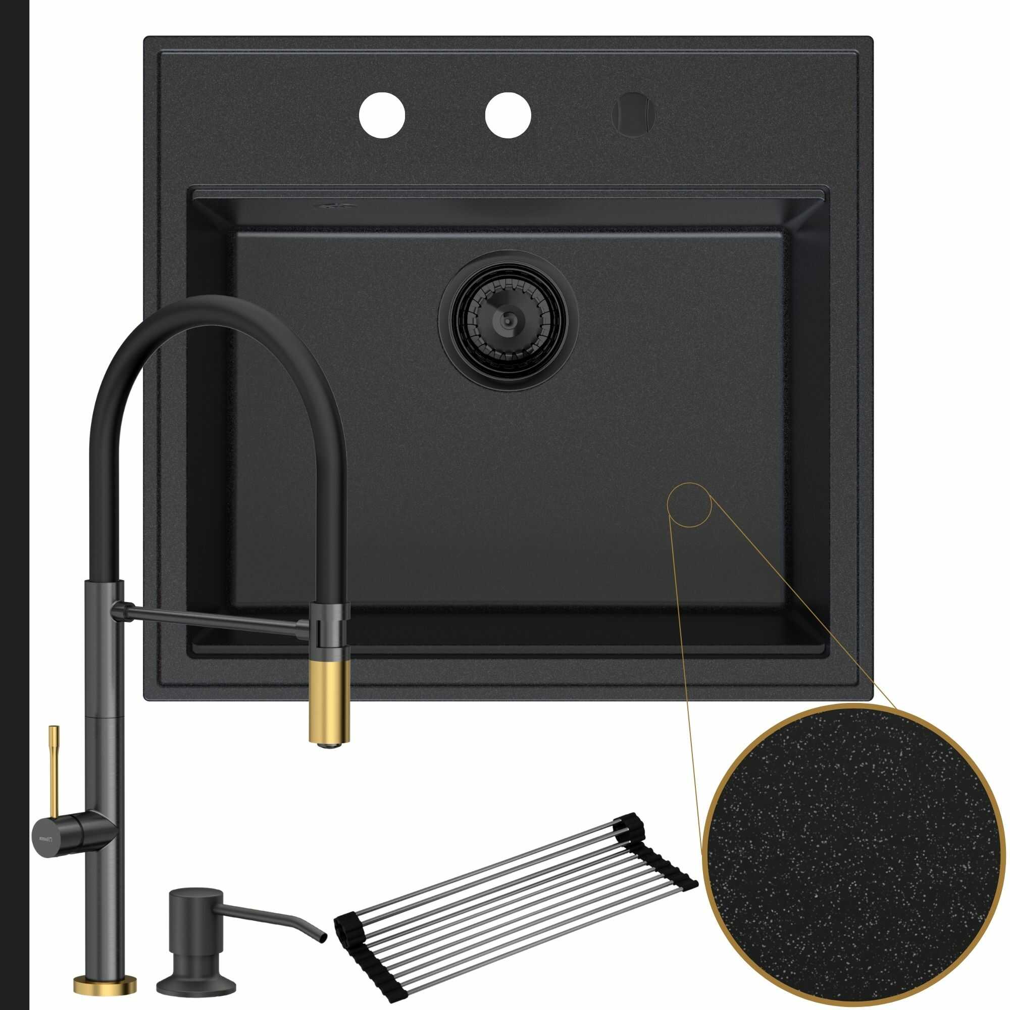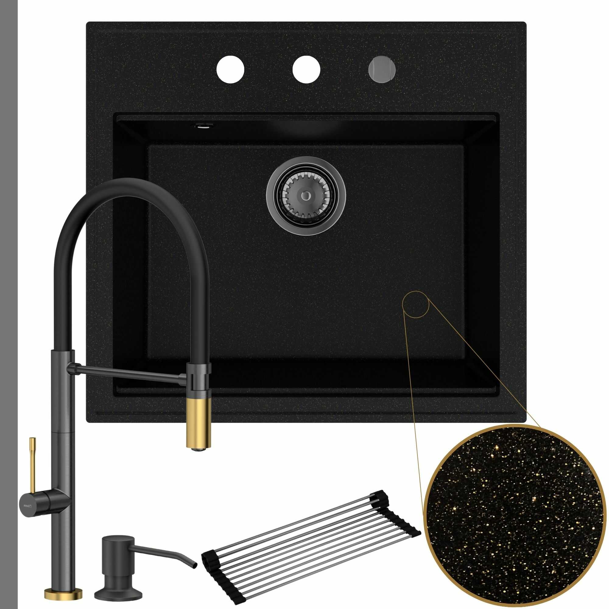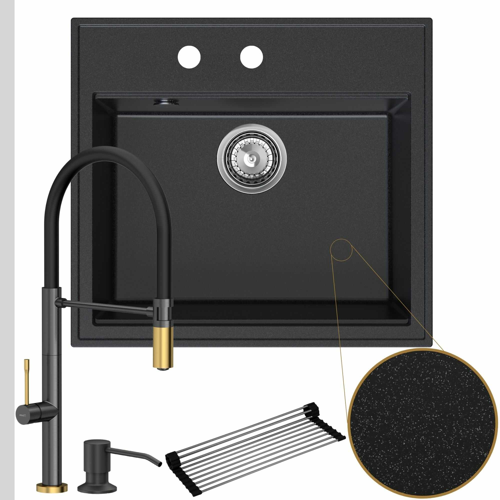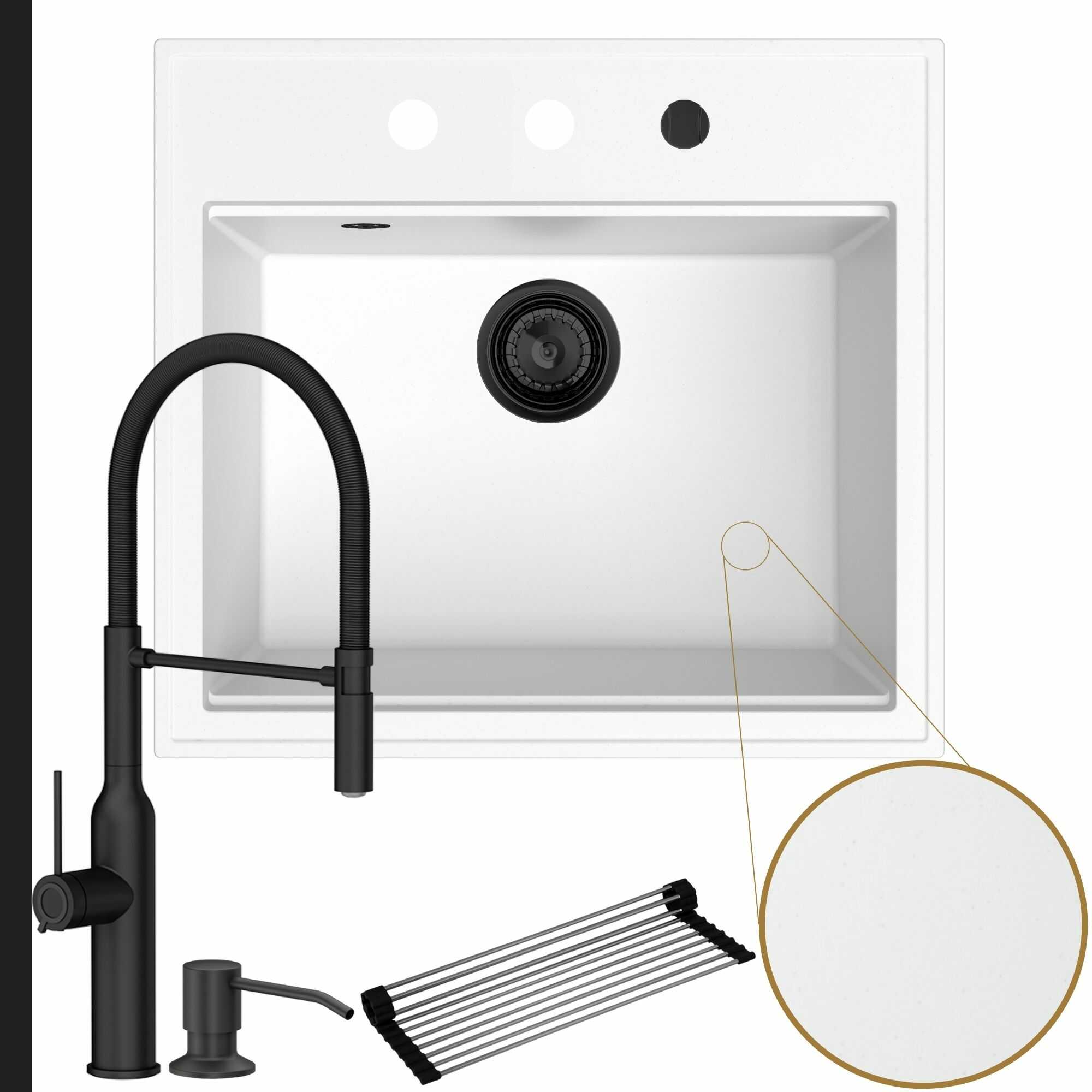 Oryginalna kuchnia: zlew + bateria + dozownik + syfon + mata