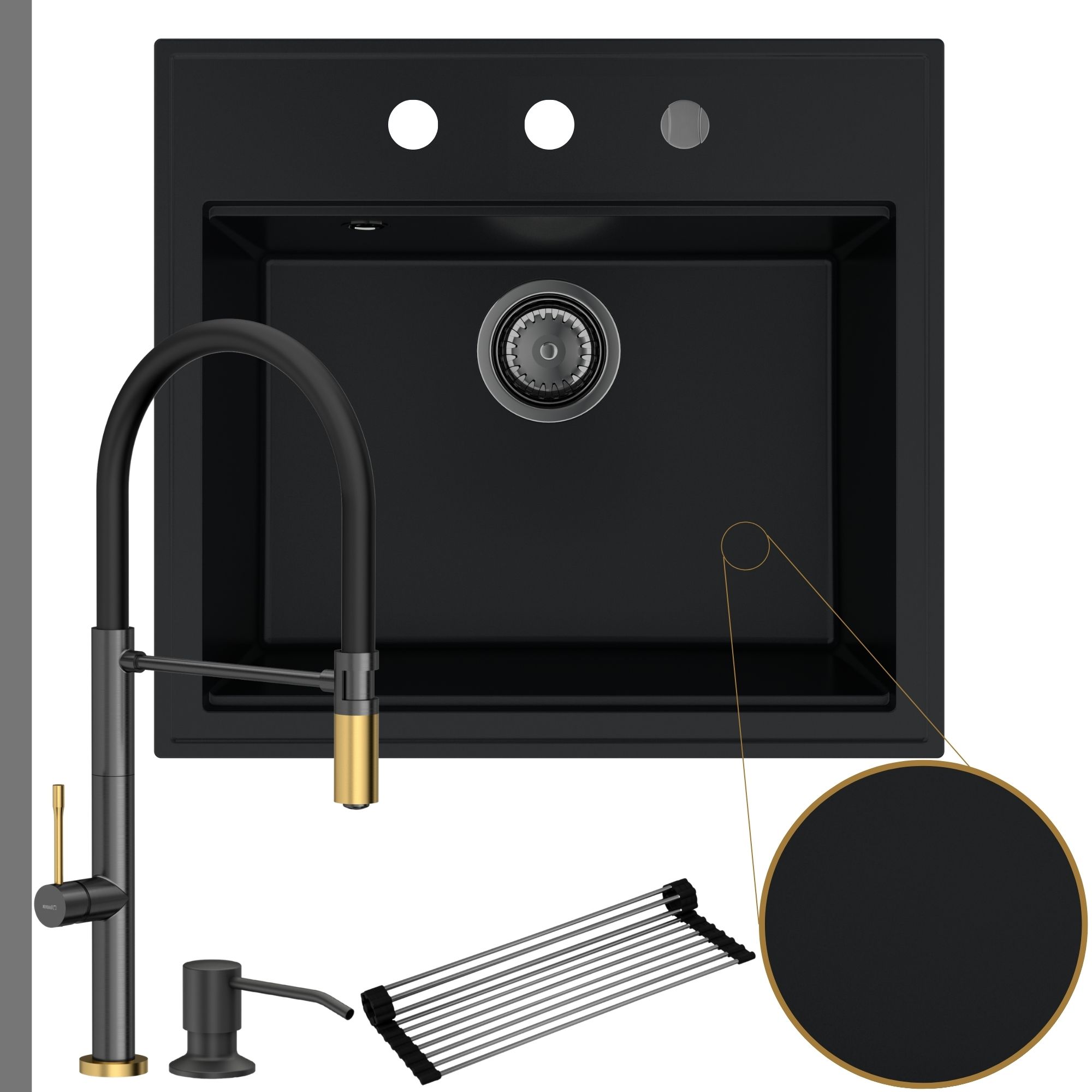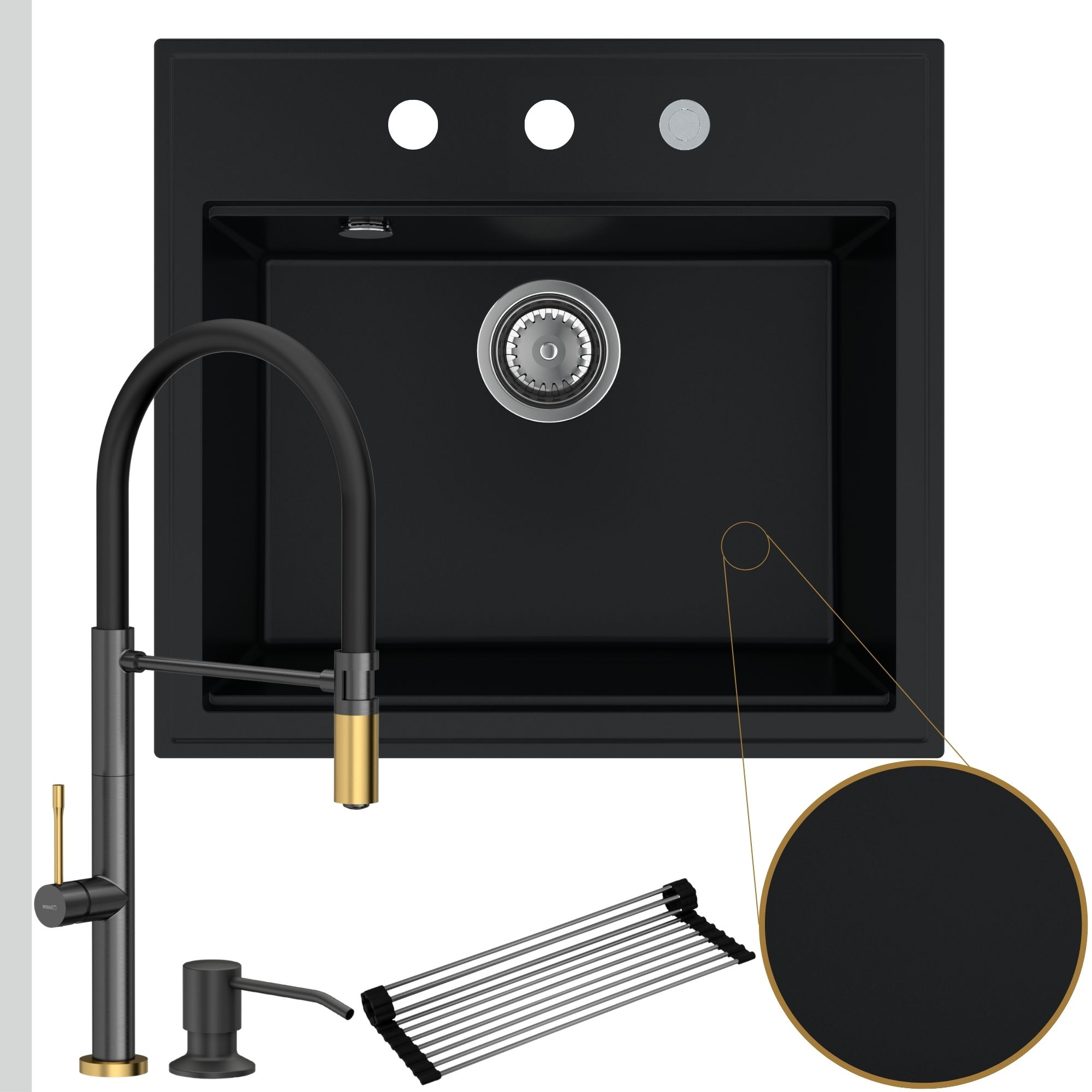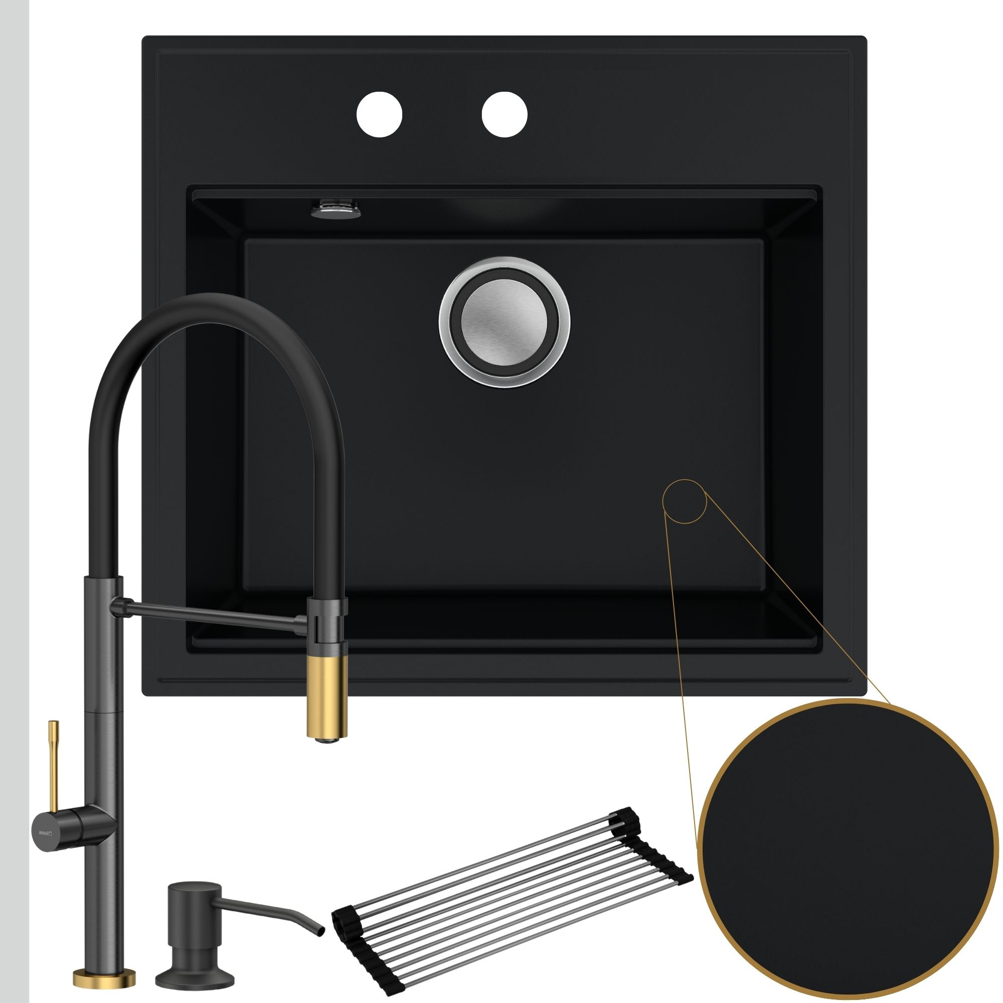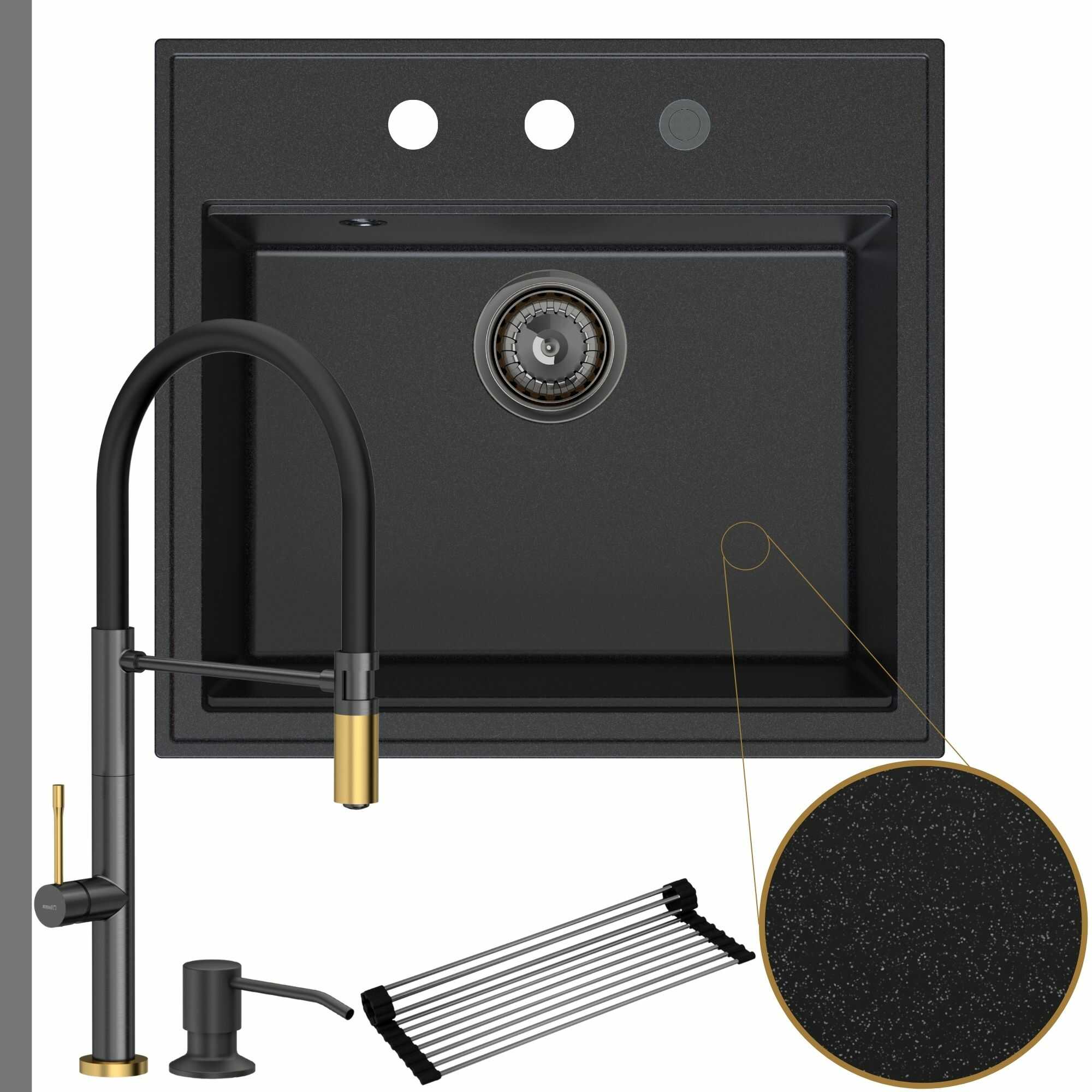 Oryginalna kuchnia: zlew + bateria + dozownik + syfon + mata