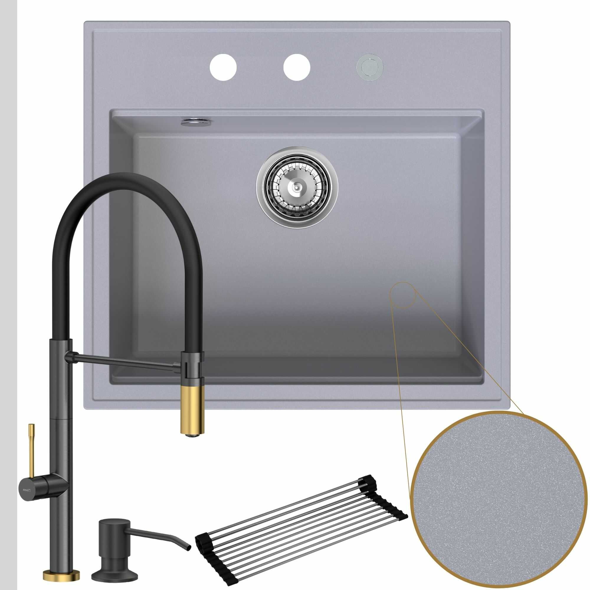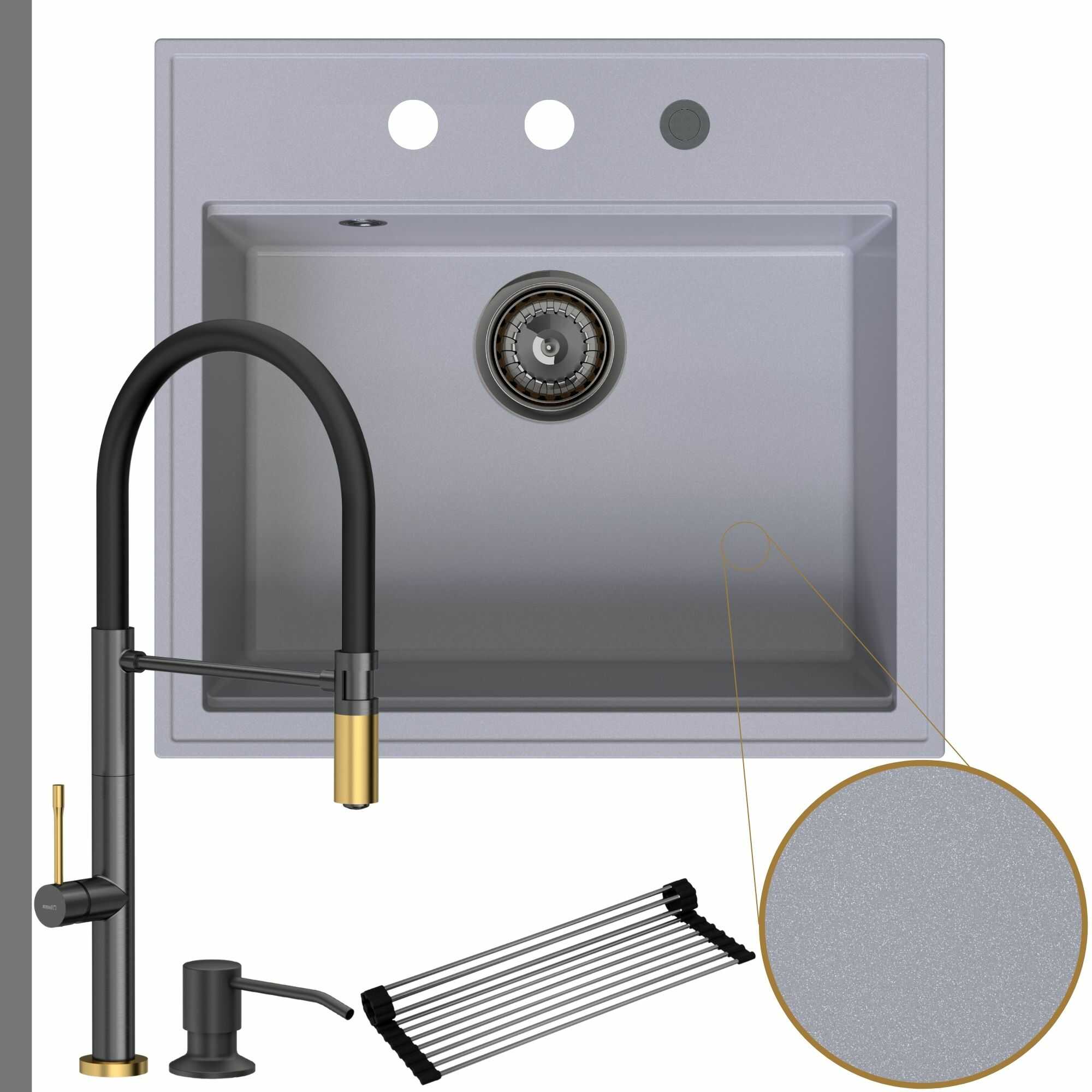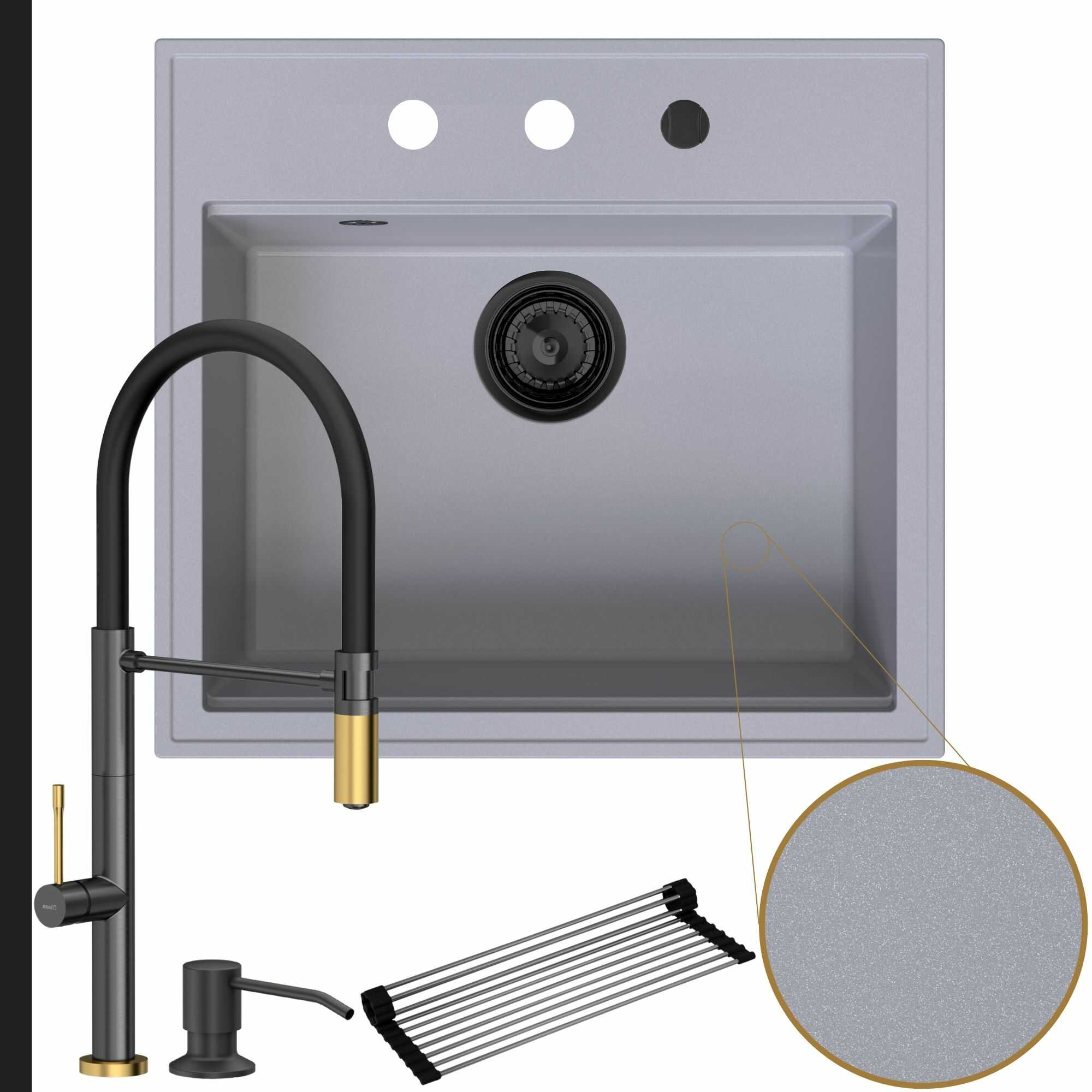 - Otrzymaj gratisy: impregnat do zlewu, który minimalizuje powstawanie zacieków i rolowana ociekarka przedłużająca blat roboczy.