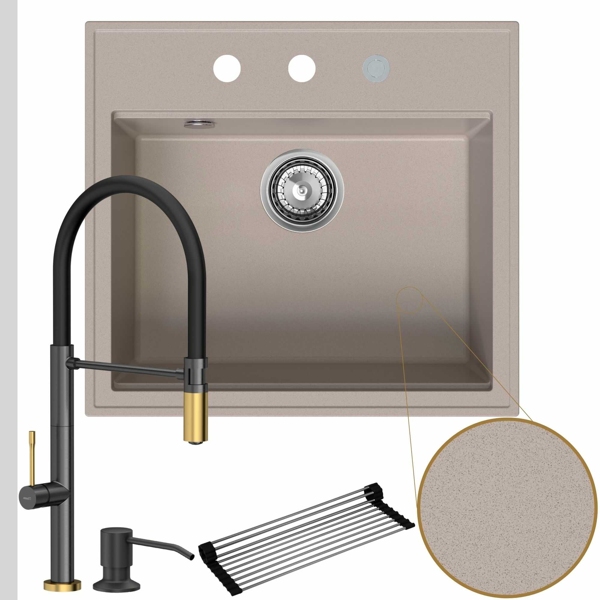 | Materiał zlewu | 80% kruszywo granitowe, 20% żywica |