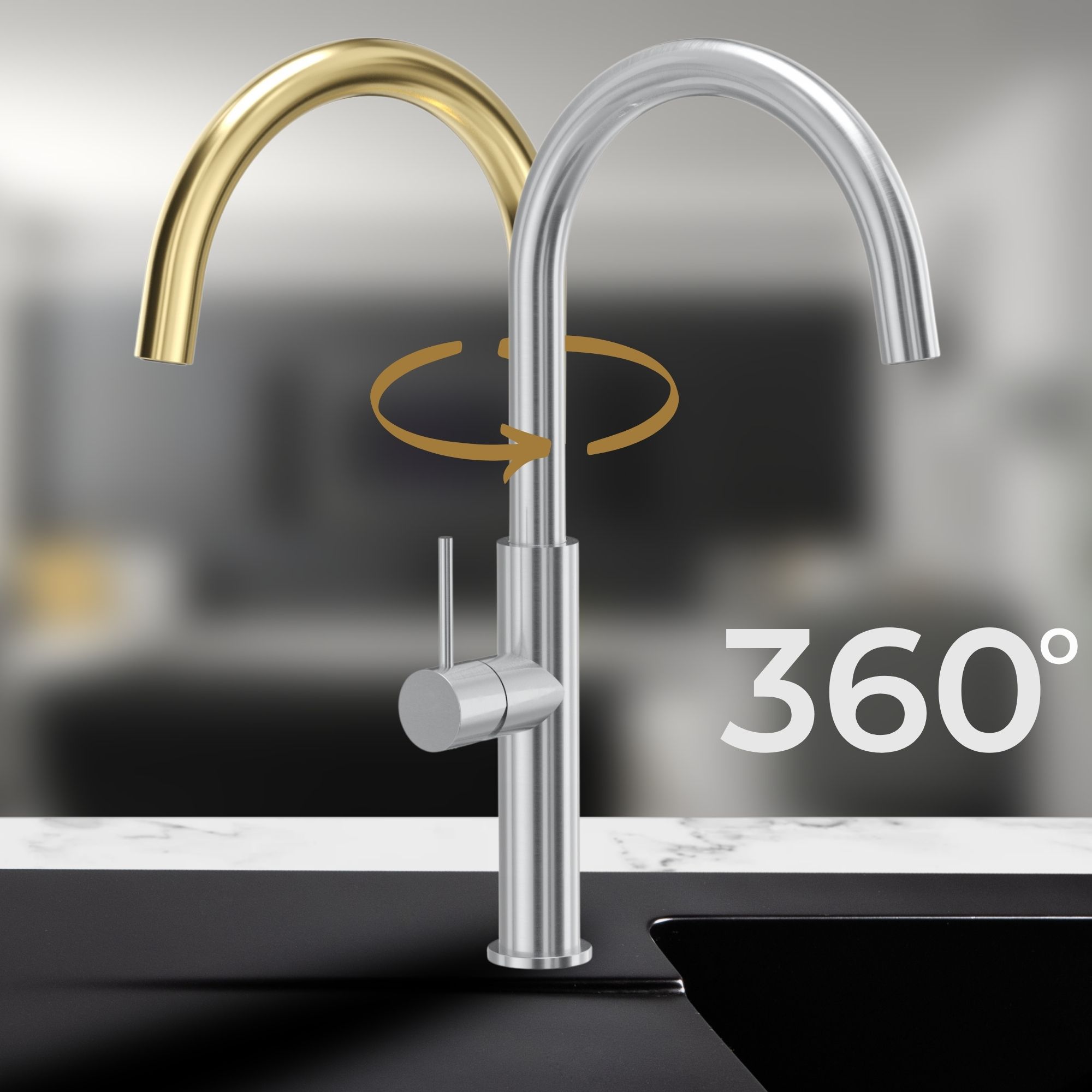 Wylewkę 360° możesz wygodnie i łatwo obrócić w dowolnym kierunku. Ułatwia to mycie dużych naczyń oraz opłukanie całej powierzchni zlewu, bez względu na głębokość jego komory.