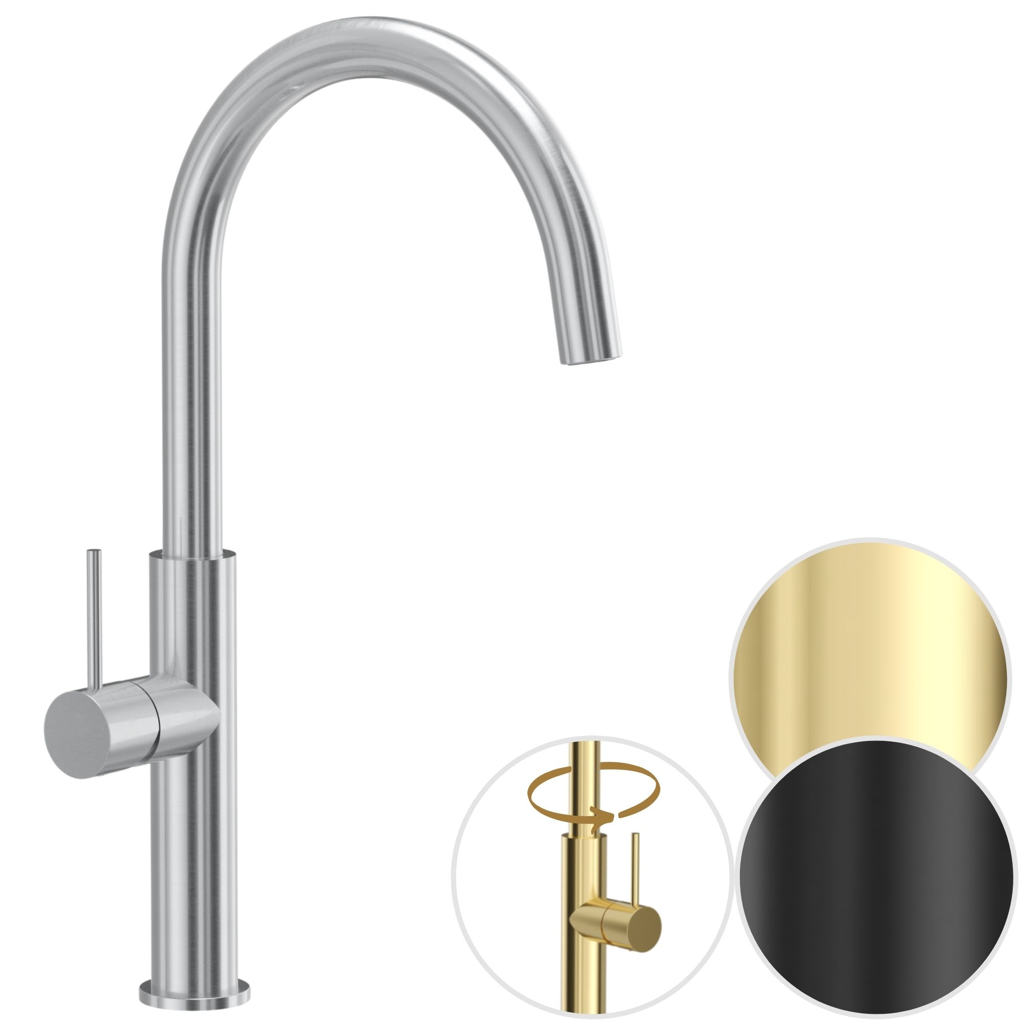 Model VALERIE to elegancka bateria wykonana z wysokiej jakości stali szlachetnej SteelQ, która zapewnia wyjątkową trwałość, odporność na korozję oraz higieniczną czystość. Jej minimalistyczny design sprawia, że idealnie komponuje się zarówno z tradycyjnymi, jak i nowoczesnymi aranżacjami kuchni.