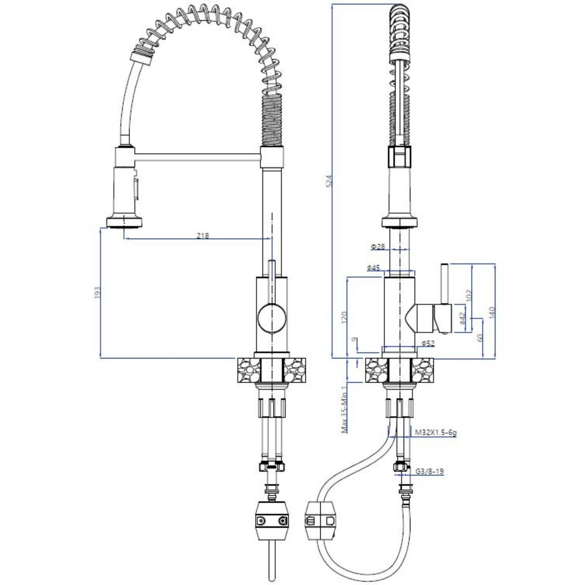 Baterię ruchomą możesz zamontować zarówno na zlewie, jak i na blacie. Posiada standardowe przyłącze 35 mm, idealnie pasujące do większości zlewozmywaków na rynku.