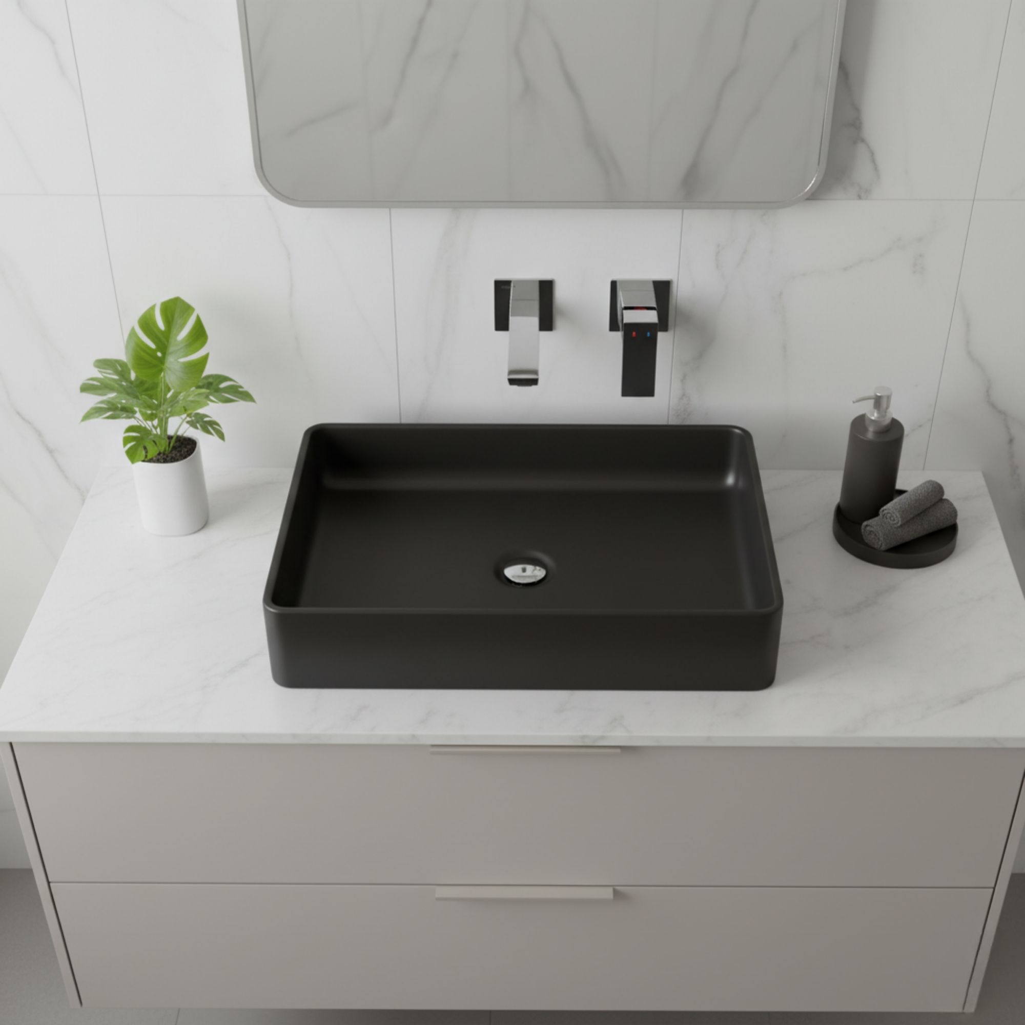 - Idealna do umywalek nablatowych: zapewnia wygodę i porządek na blacie