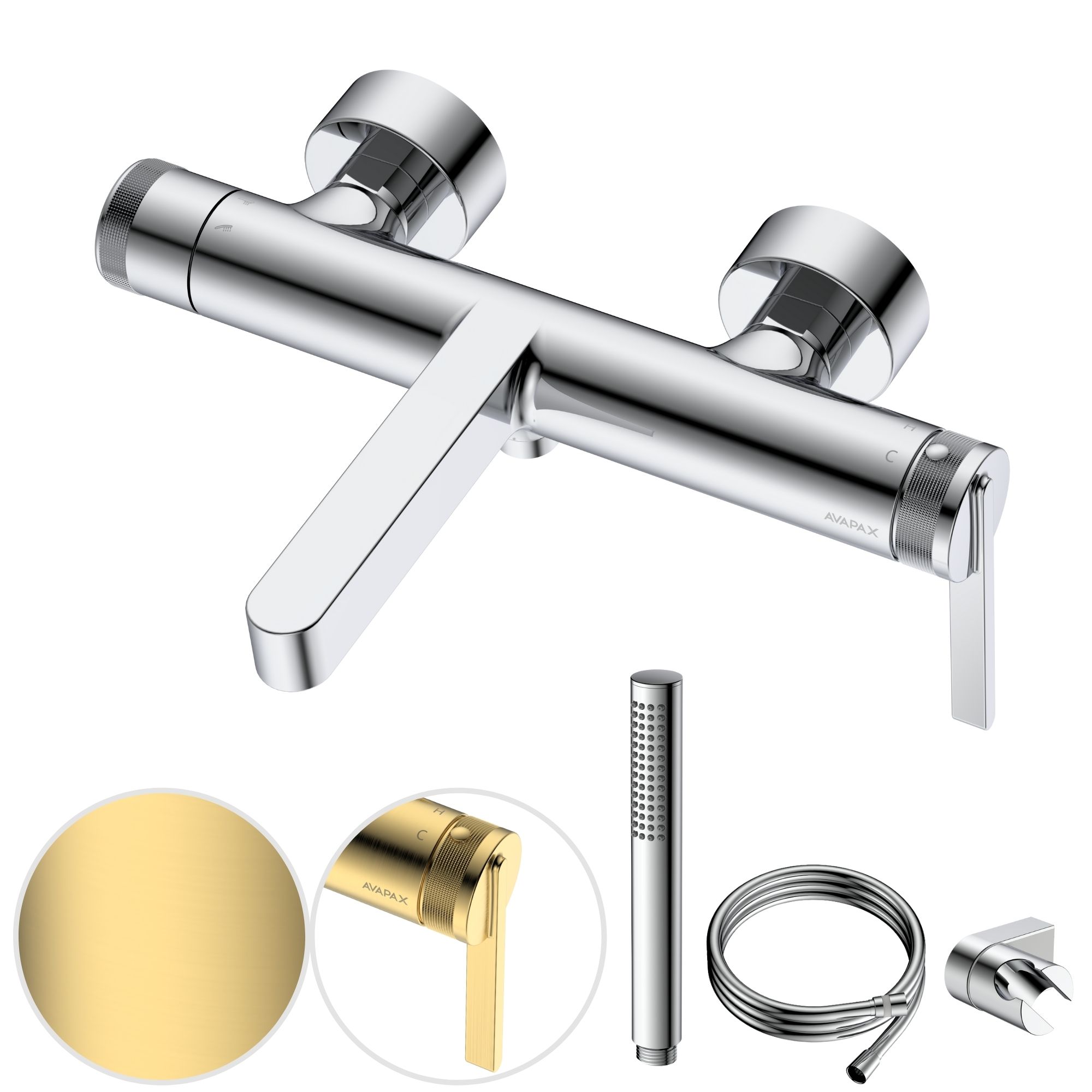 - Dwa warianty do wyboru: luksusowe szczotkowane złoto lub uniwersalny, błyszczący chrom