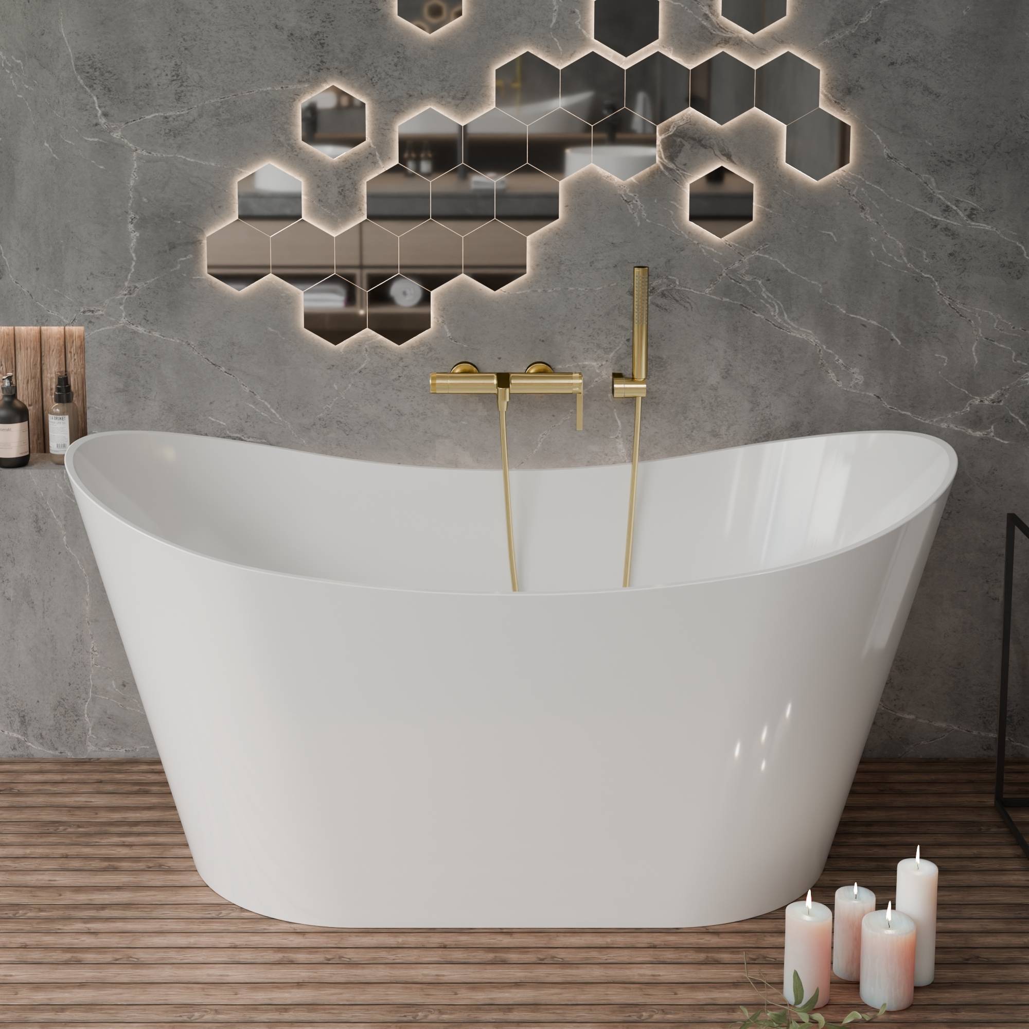 Wersja Brushed Gold to idealny wybór do wnętrz premium, minimalistycznych oraz glamour. Jej szlachetne, satynowe wykończenie pięknie komponuje się z kamieniem, szkłem i matową czernią, tworząc luksusowy, hotelowy klimat w Twojej łazience..