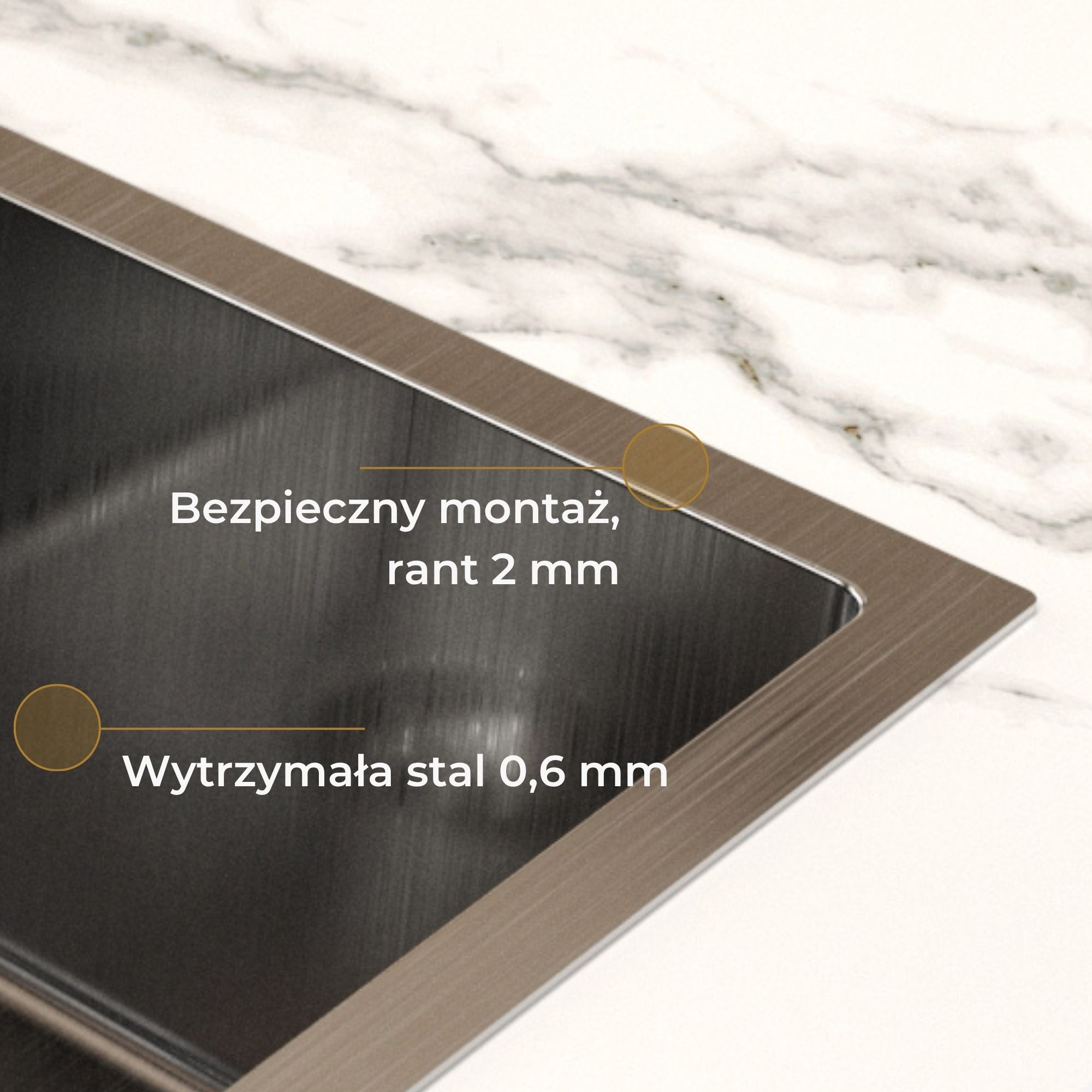 - Estetyka i odprność na plamy, dzięki powłoce PVD z satyny szczotkowanej