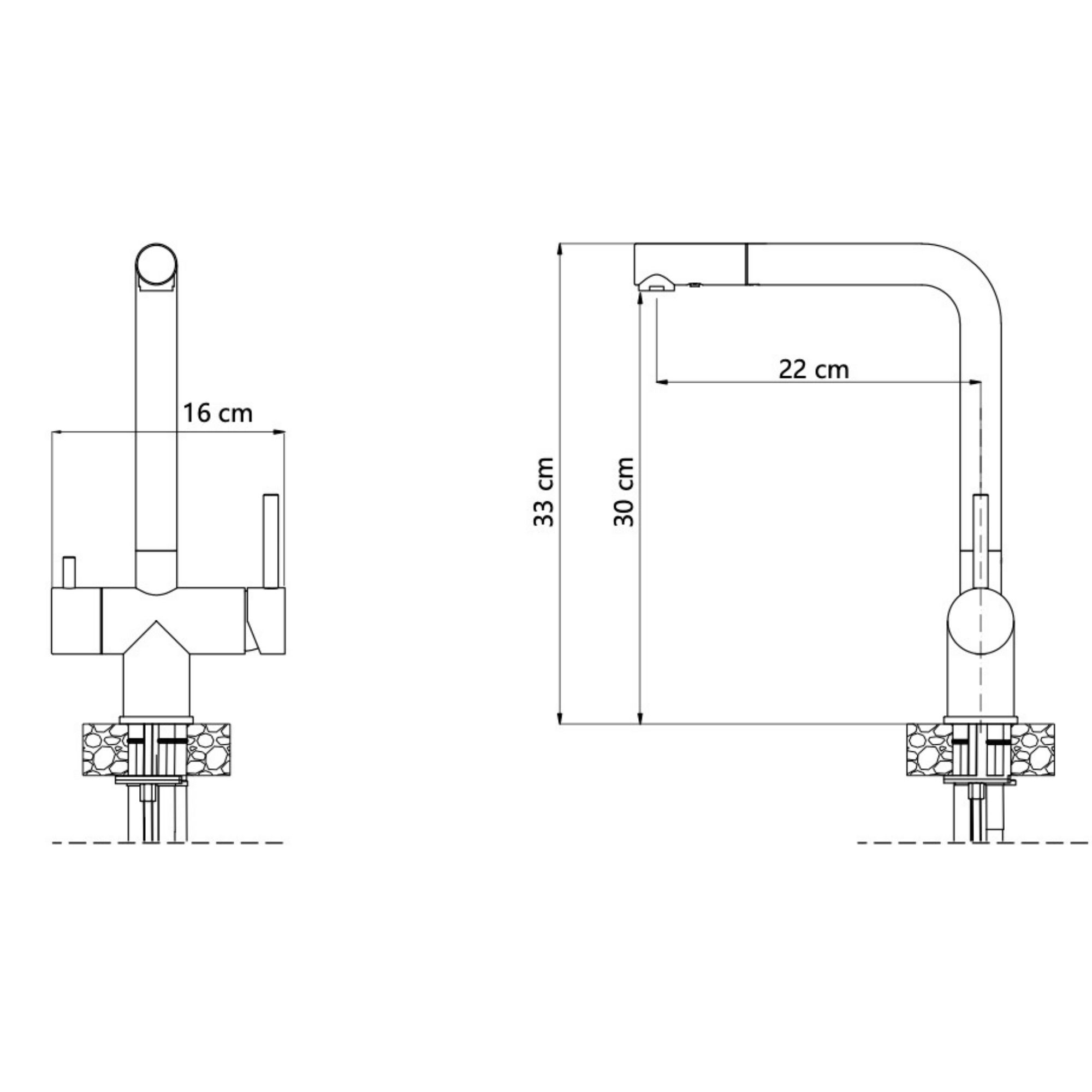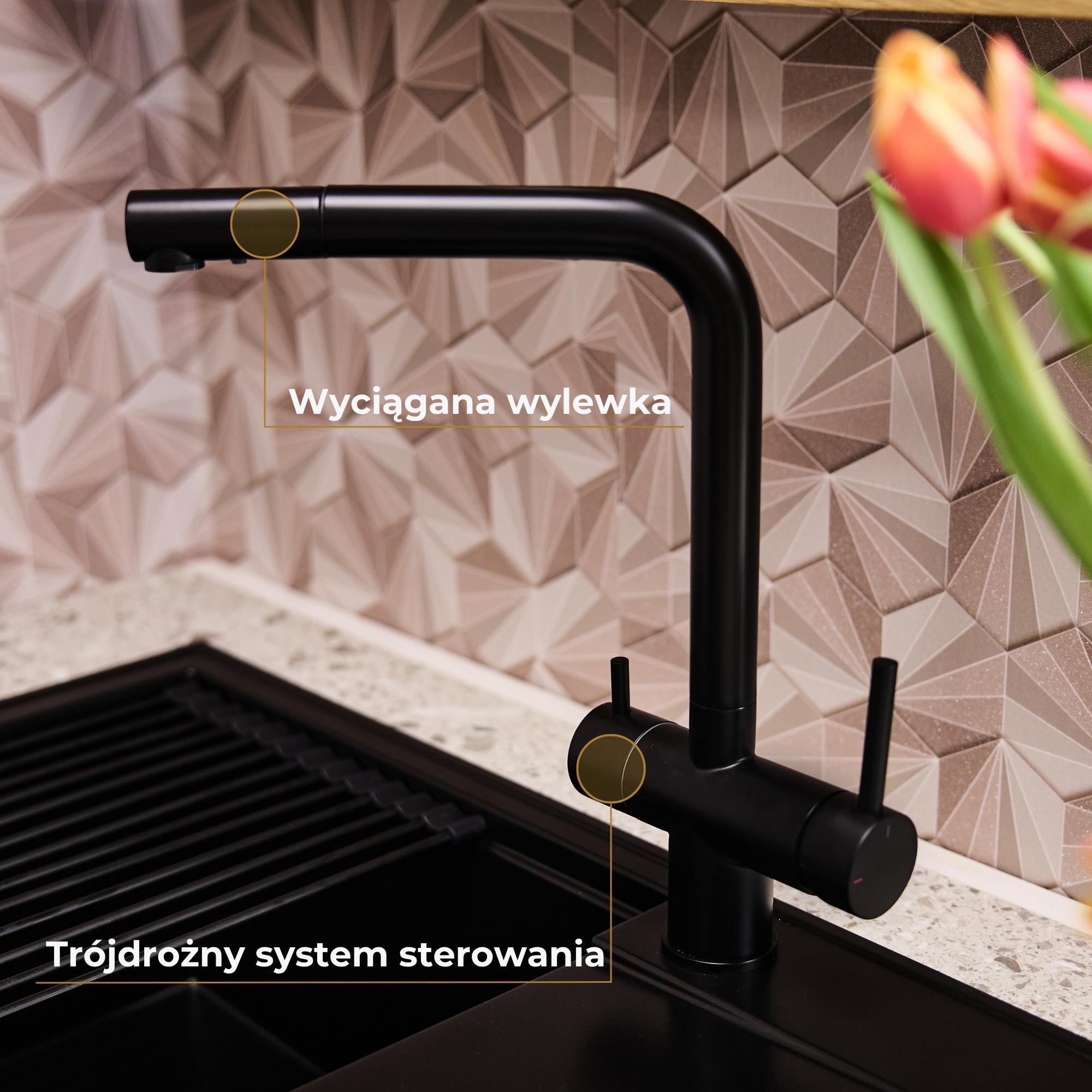 - Wygoda użytkowania, dzięki trójdrożnej baterii, która umożliwia przepływ 3 trybów wody - ciepły, zimny i filtrowany