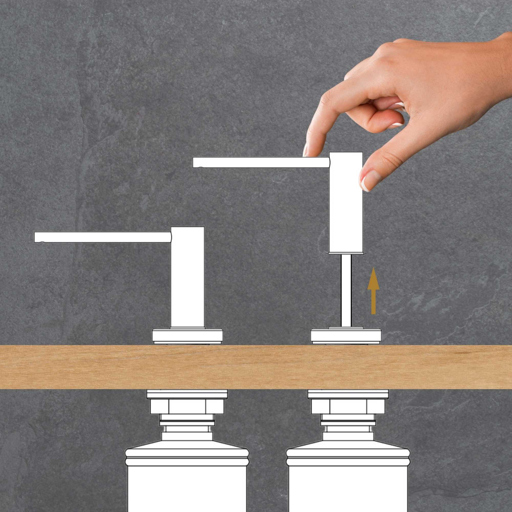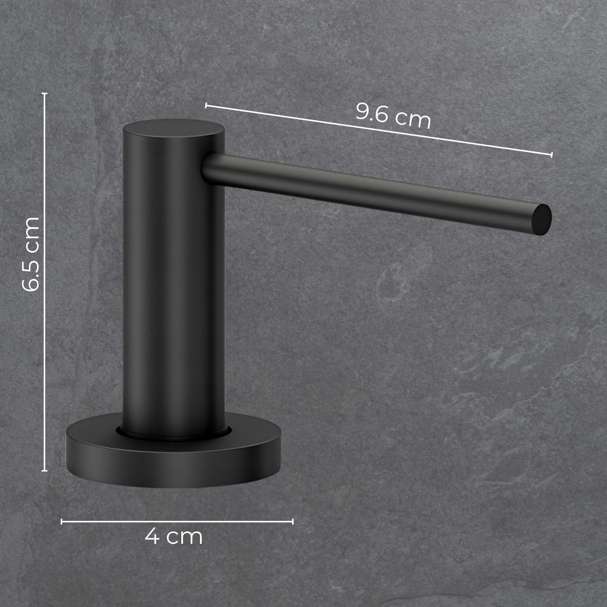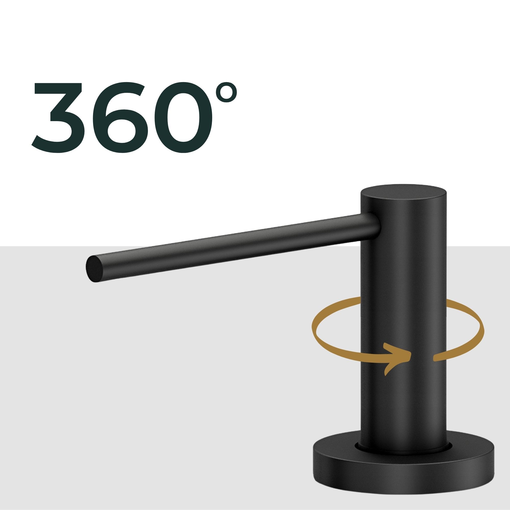 Praktyczny metalowy dozownik posiada obracaną o 360° końcówkę, która ułatwia ustawienie wygodnego kąta podczas zmywania. Długi podajnik pobiera odpowiednią ilość płynu, ograniczając jego zużycie, a napełnianie od góry sprawia, że jego uzupełnianie jest szybkie i wygodne.