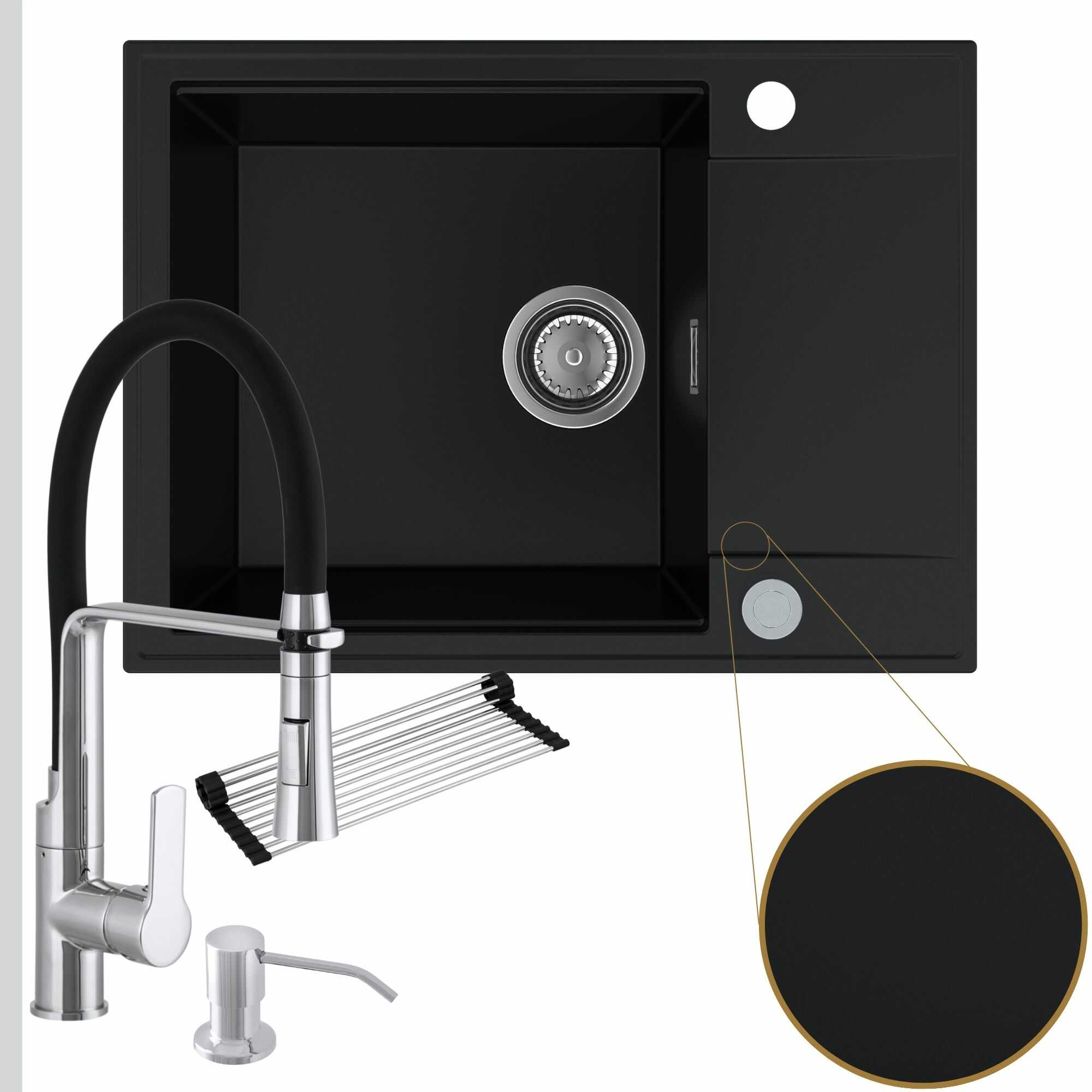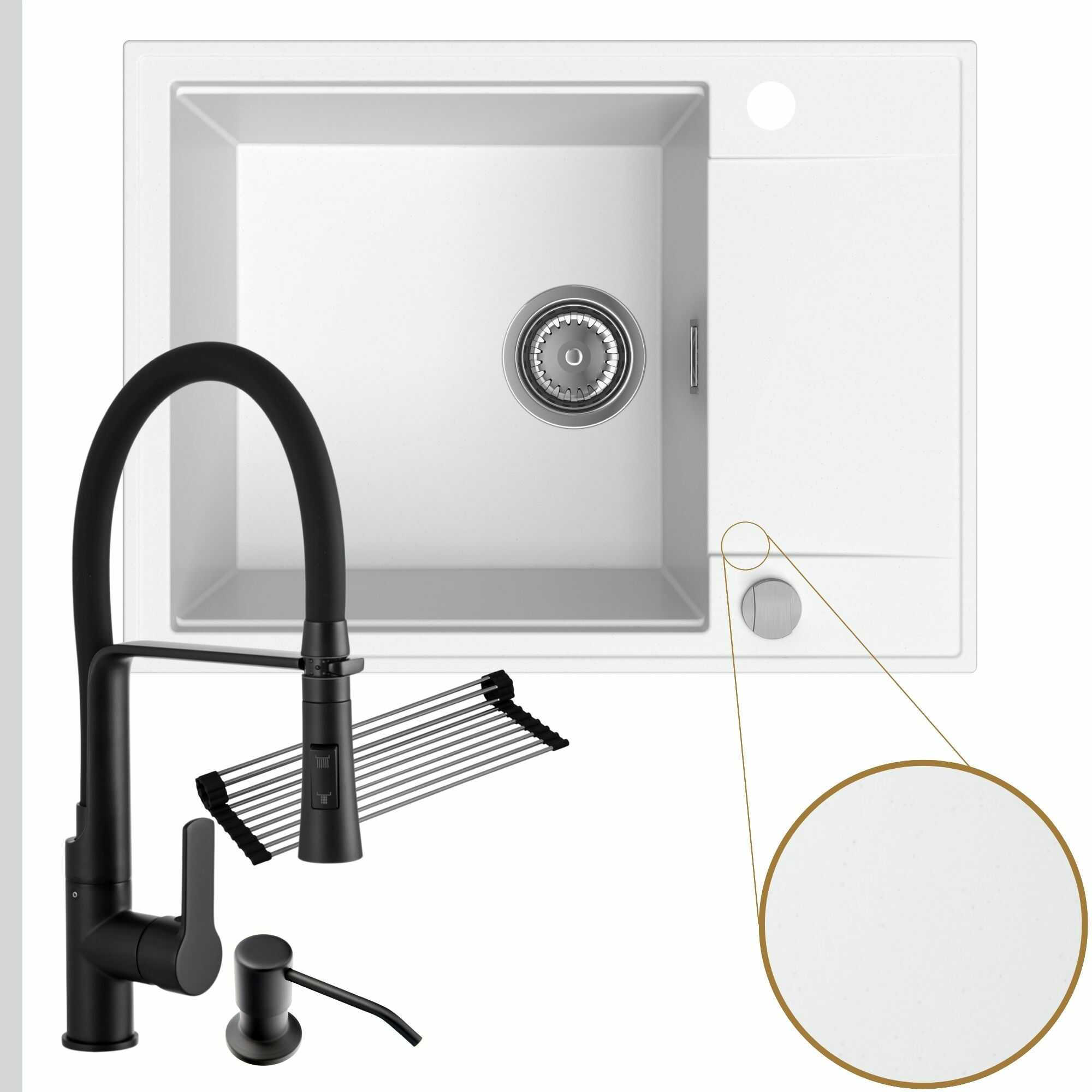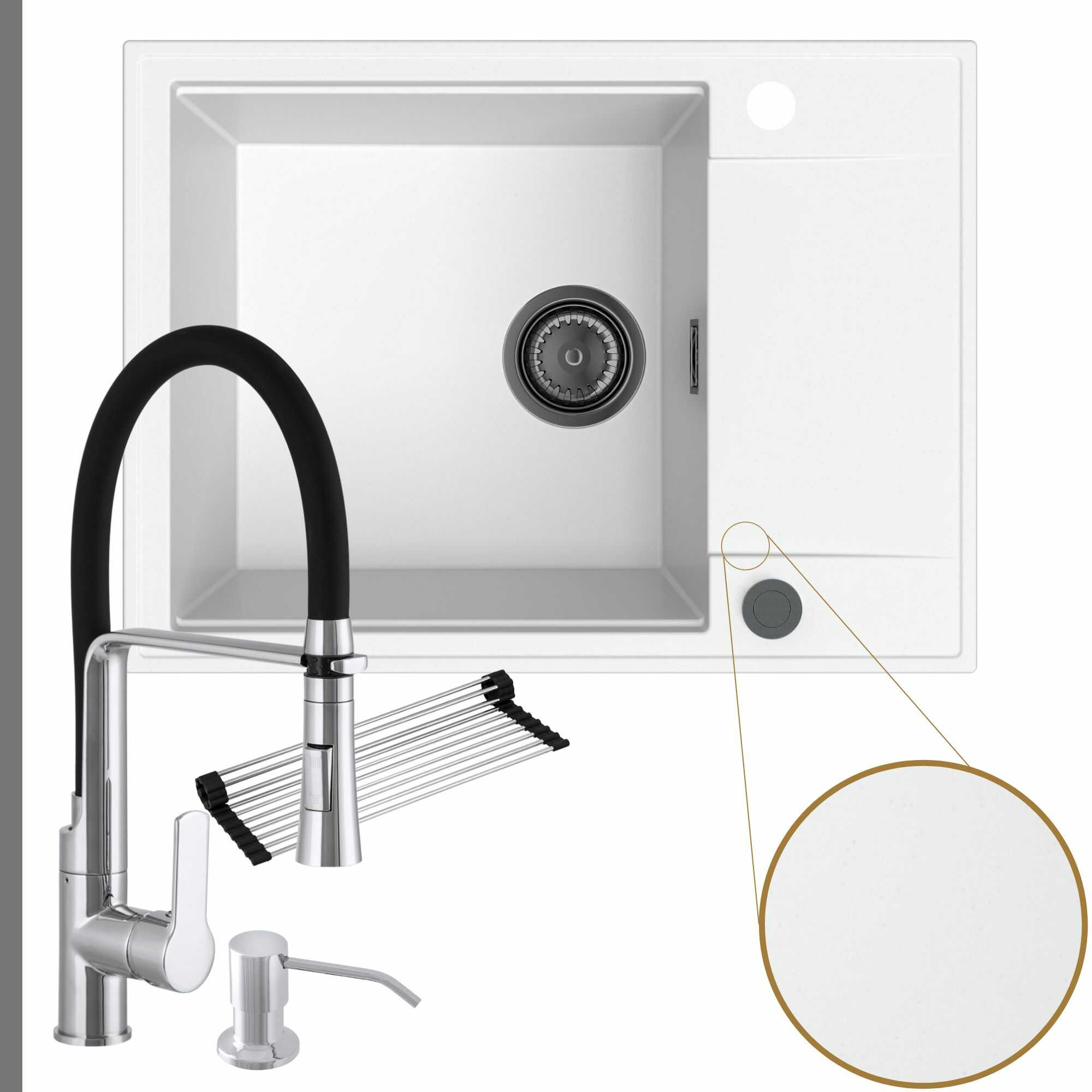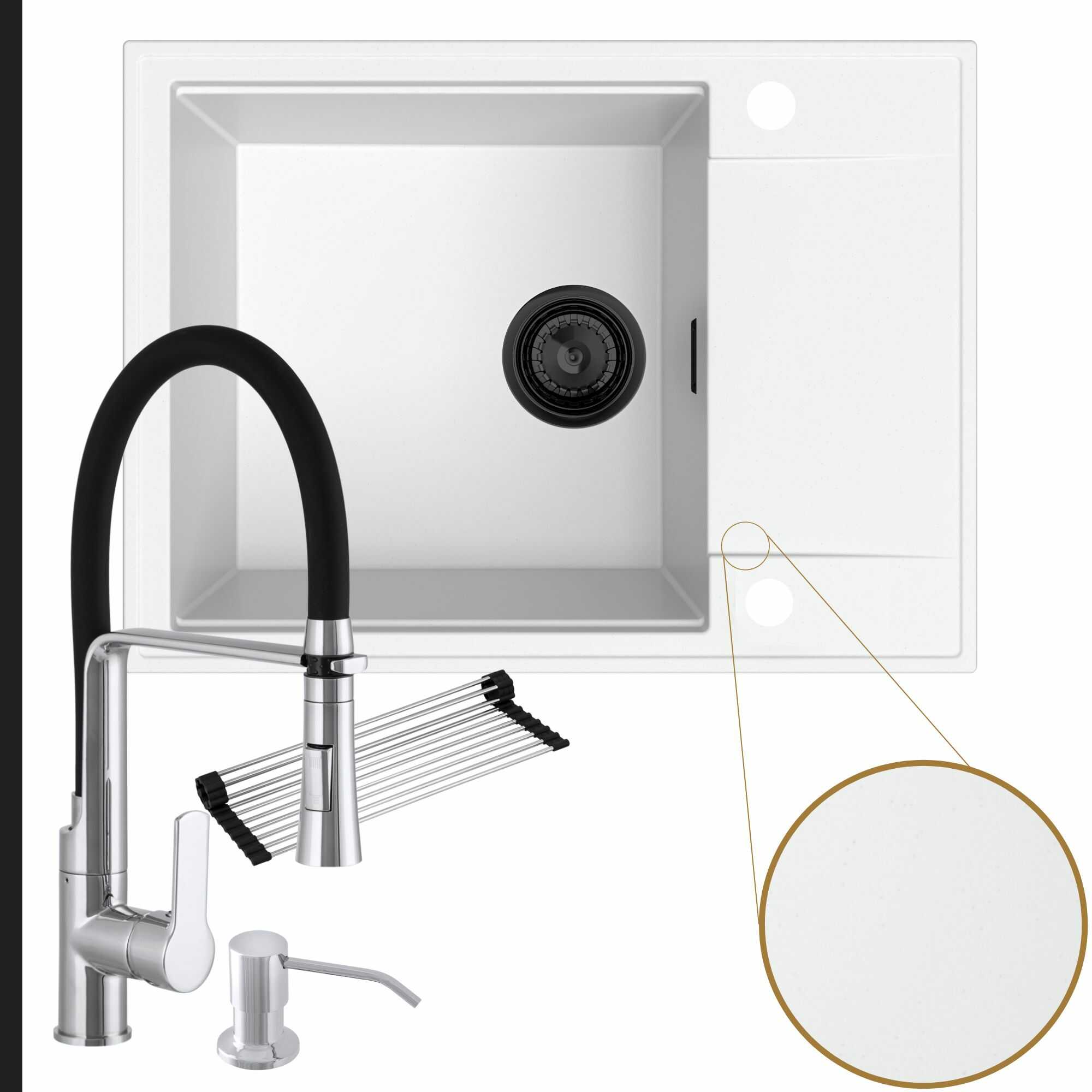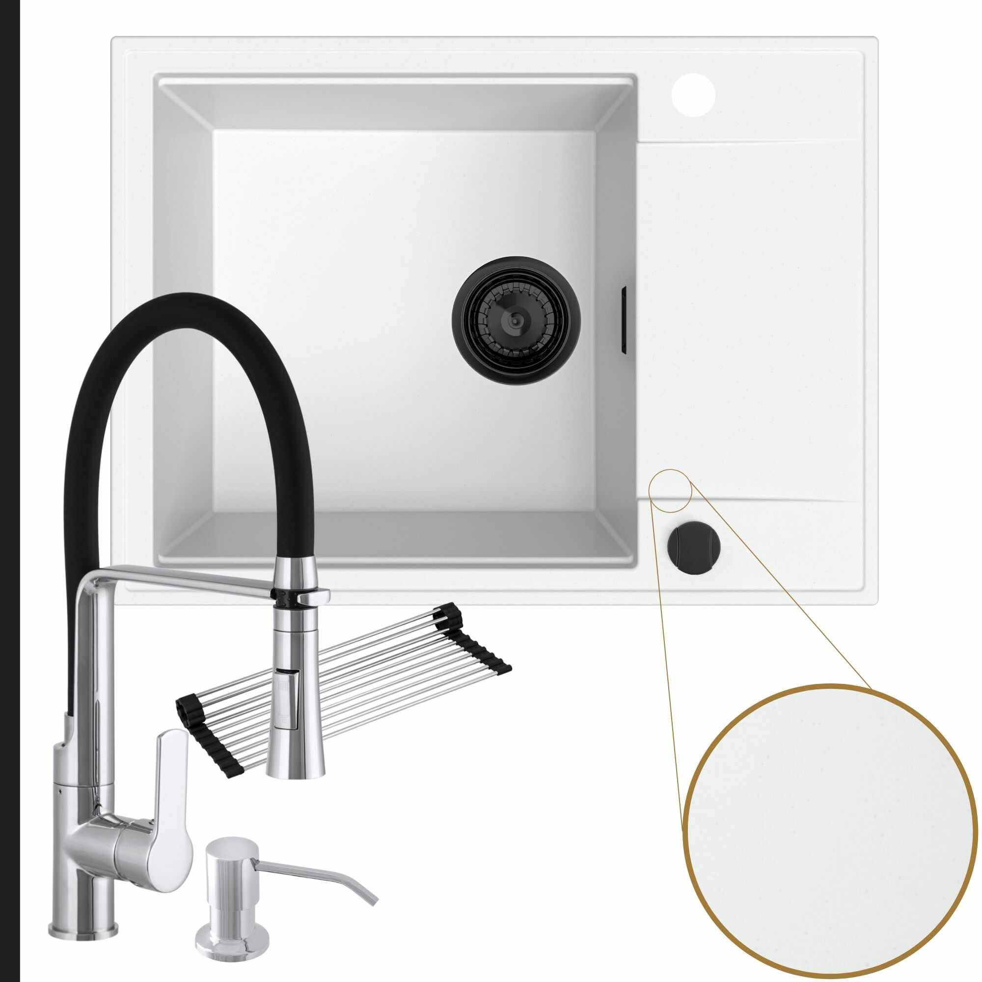 Komfortowa kuchnia: zlew + bateria + dozownik + syfon + mata