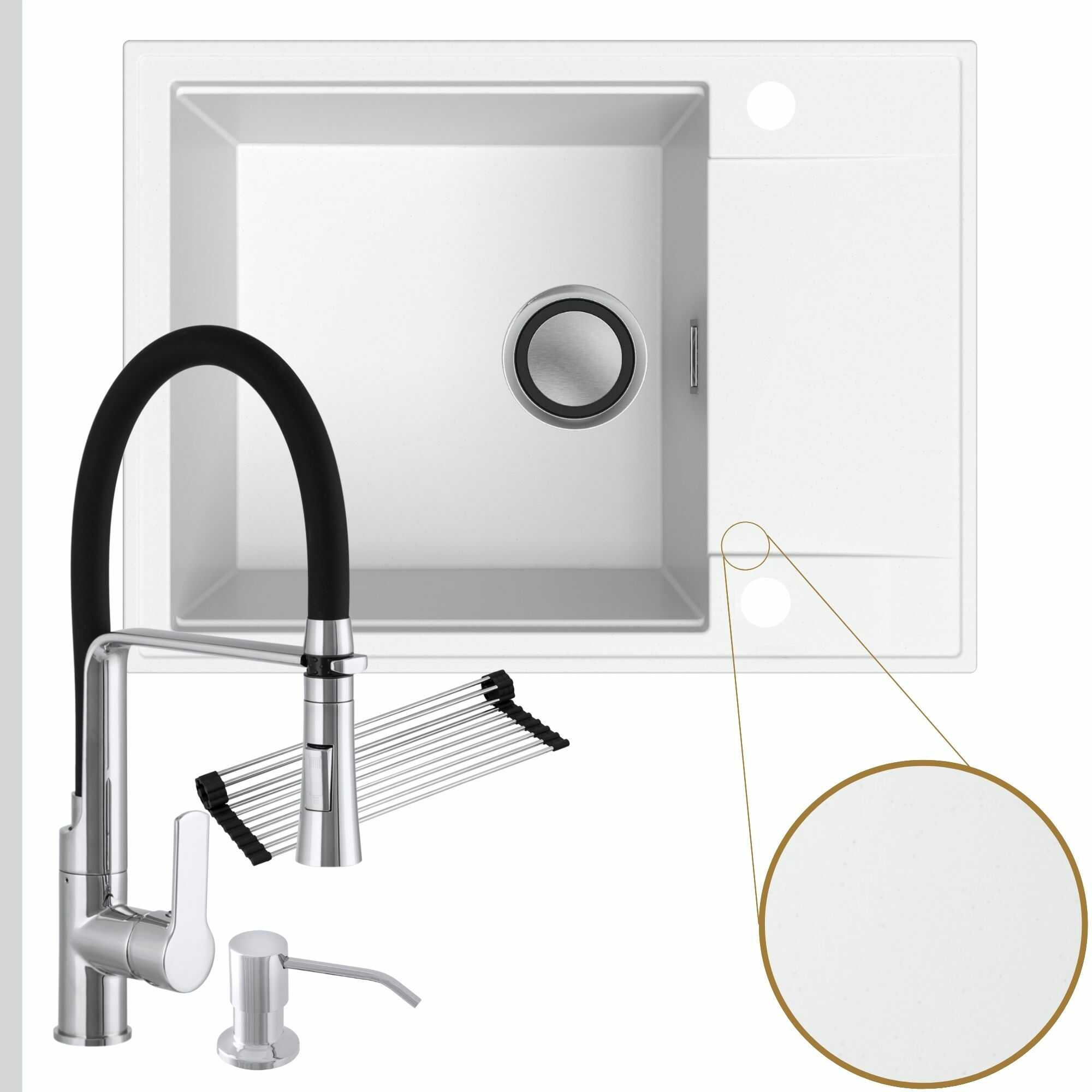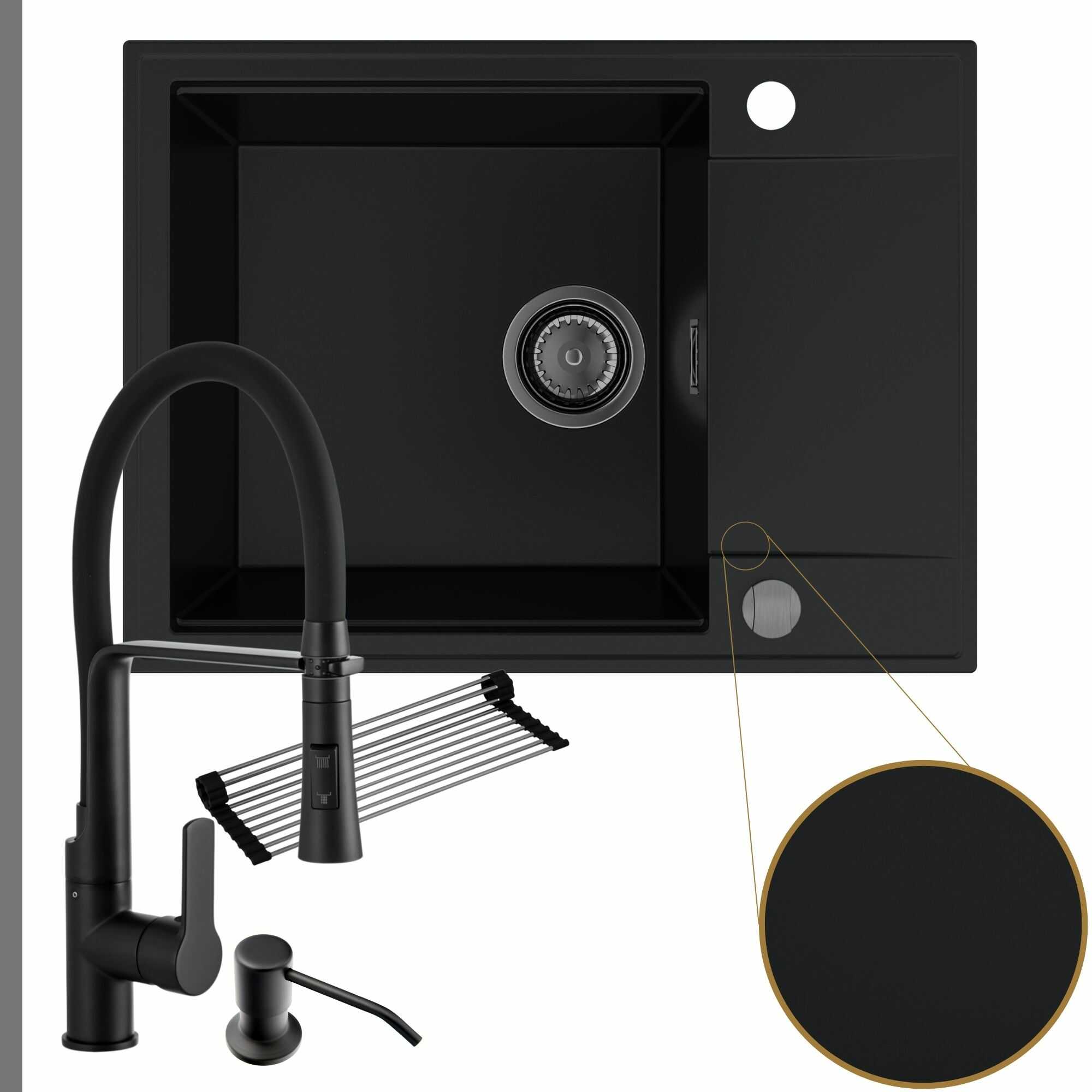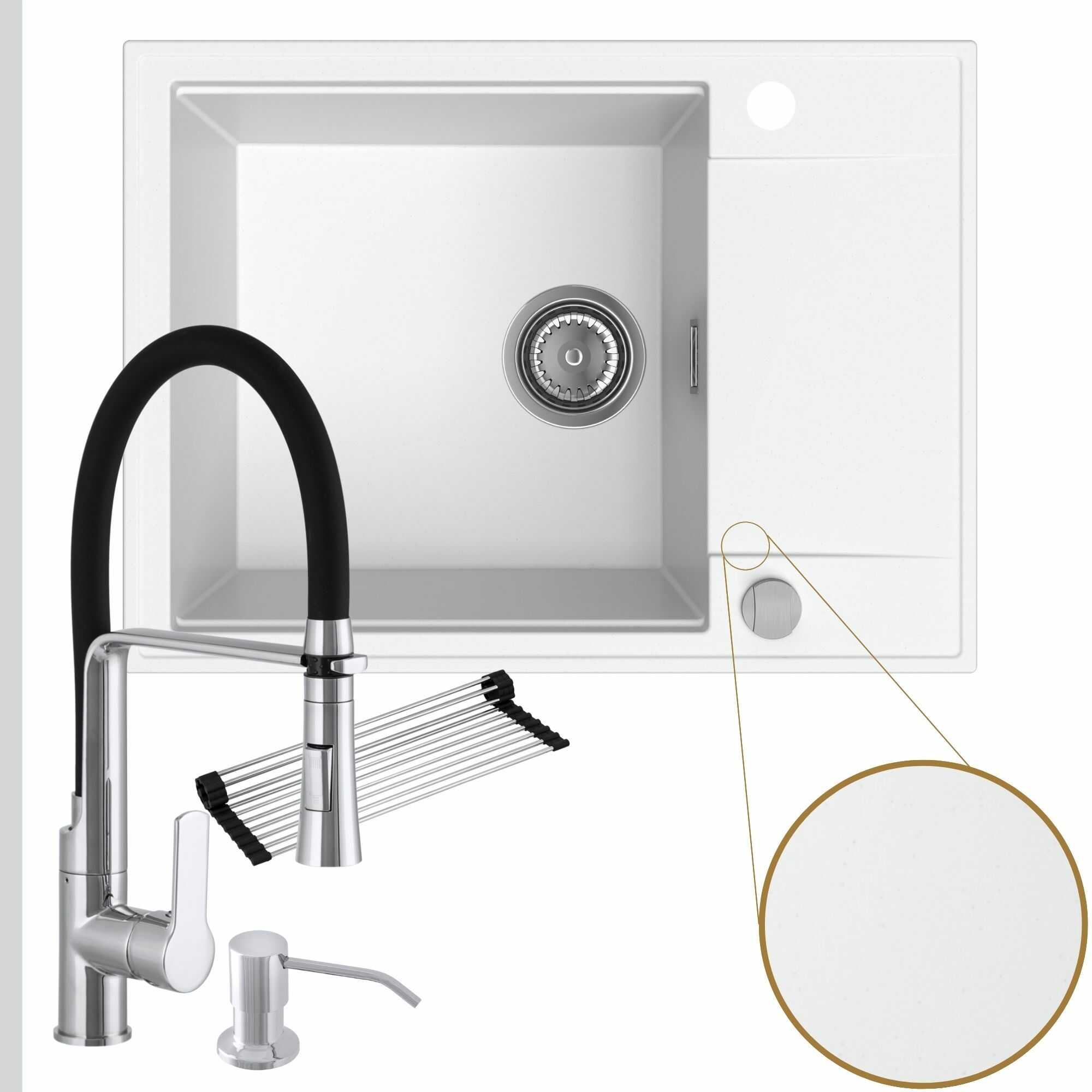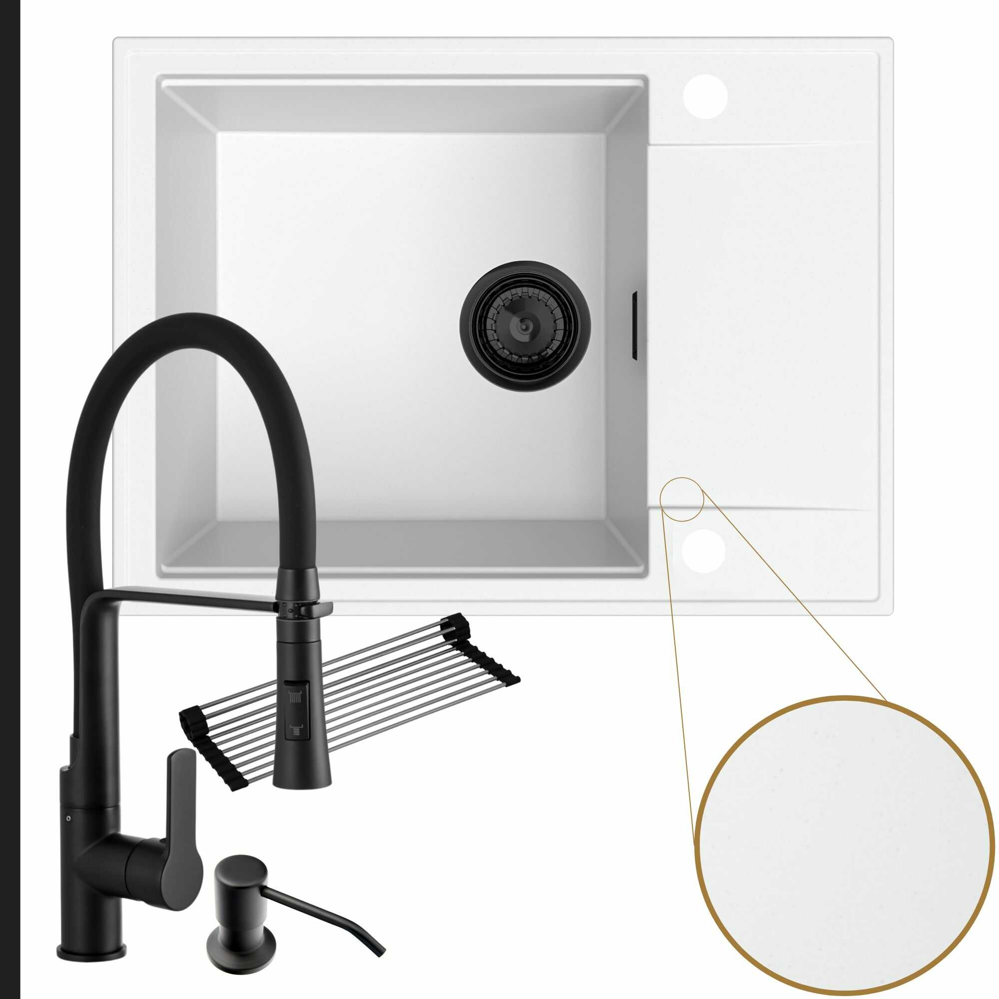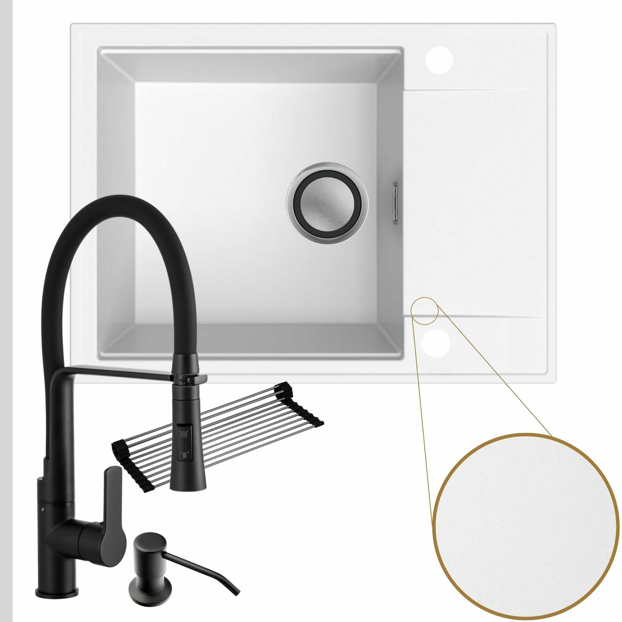 Komfortowa kuchnia: zlew + bateria + dozownik + syfon + mata