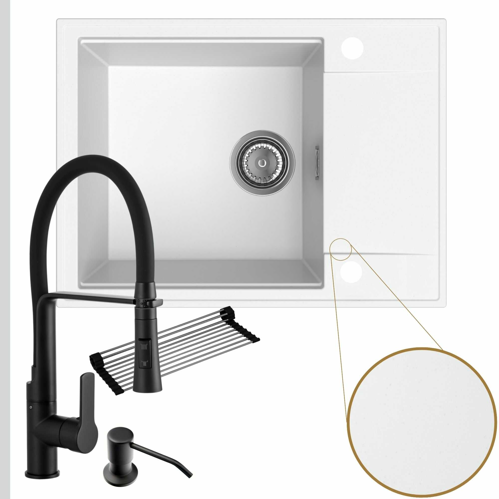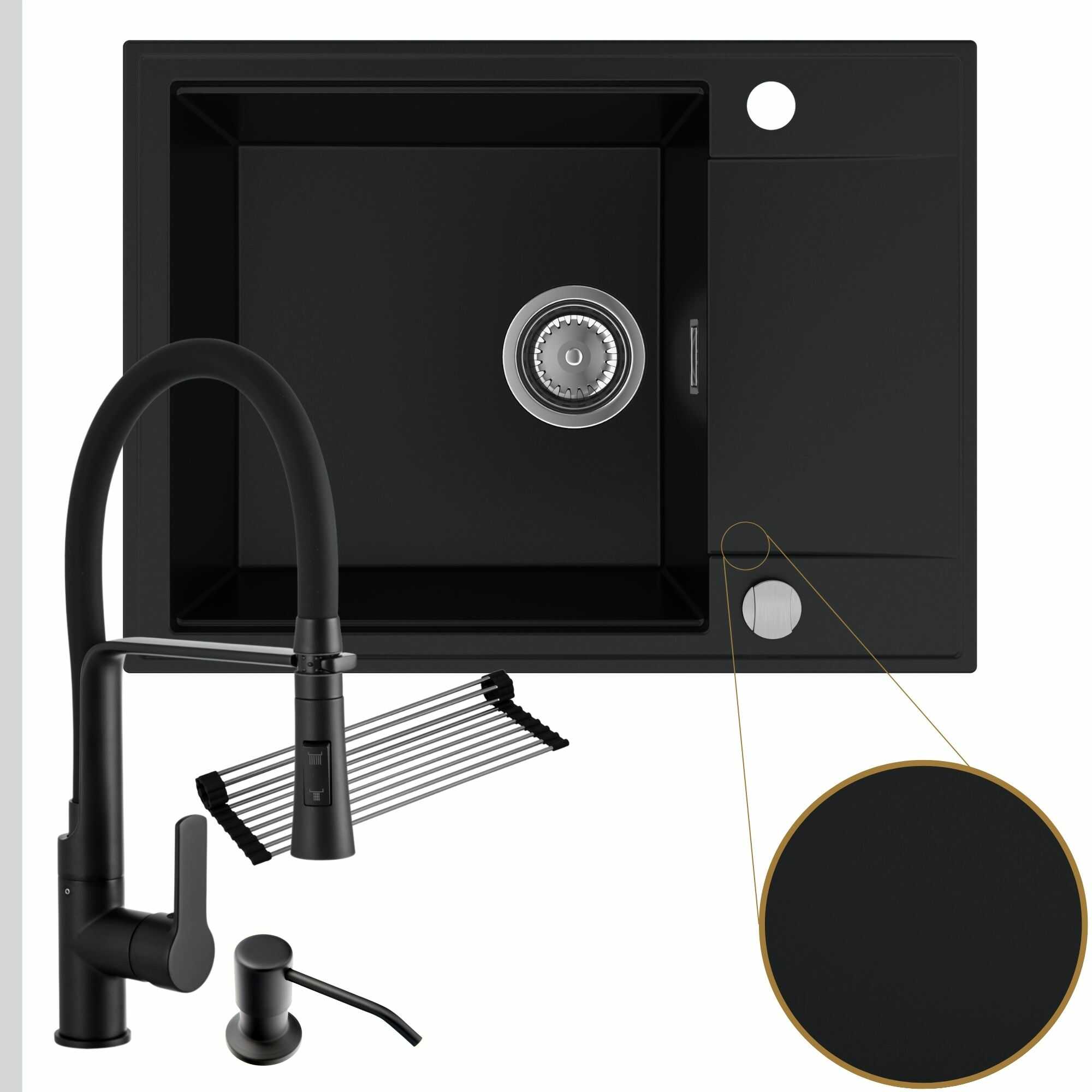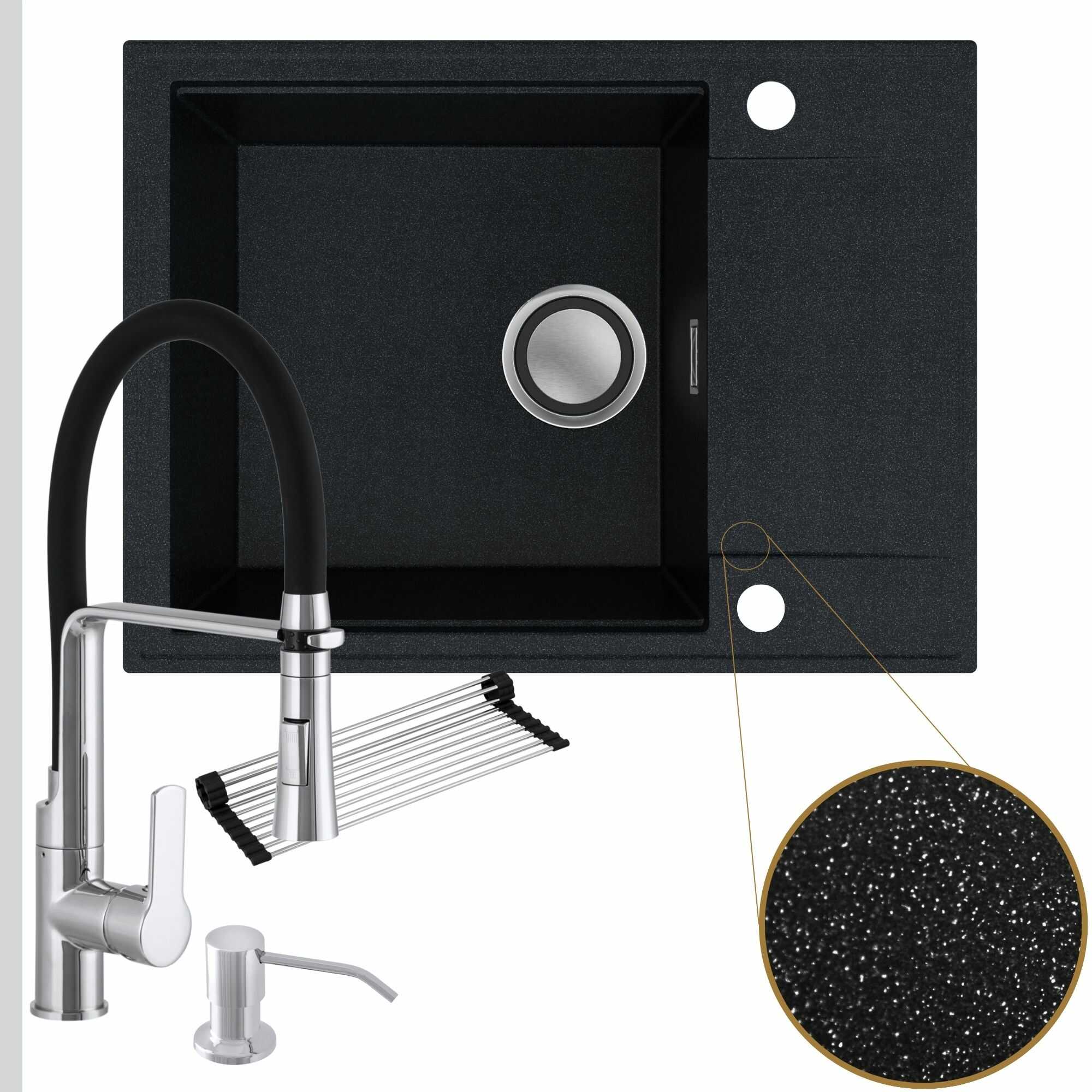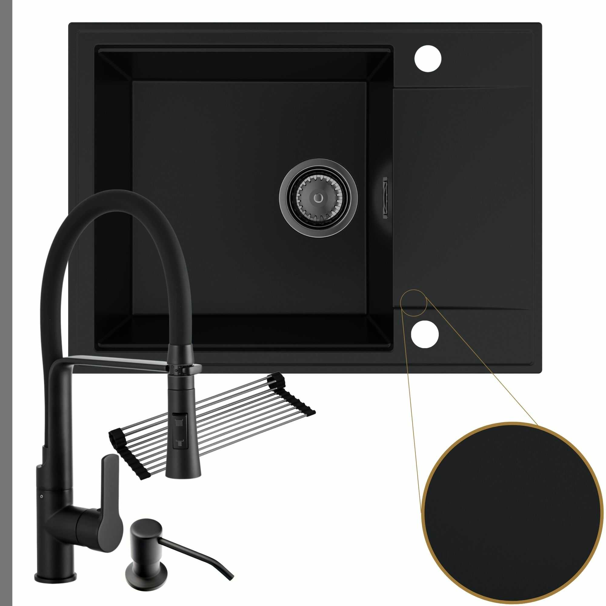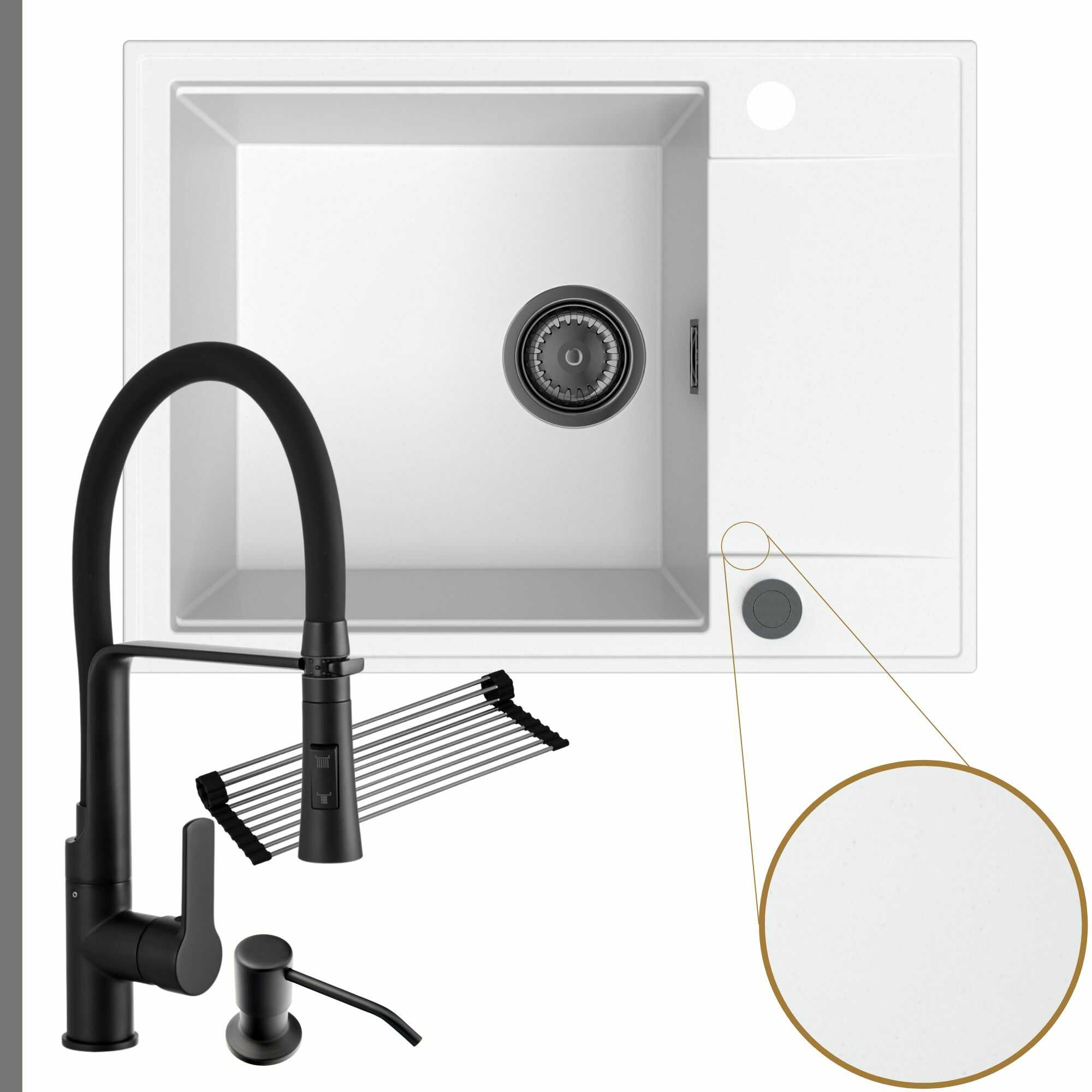 Komfortowa kuchnia: zlew + bateria + dozownik + syfon + mata