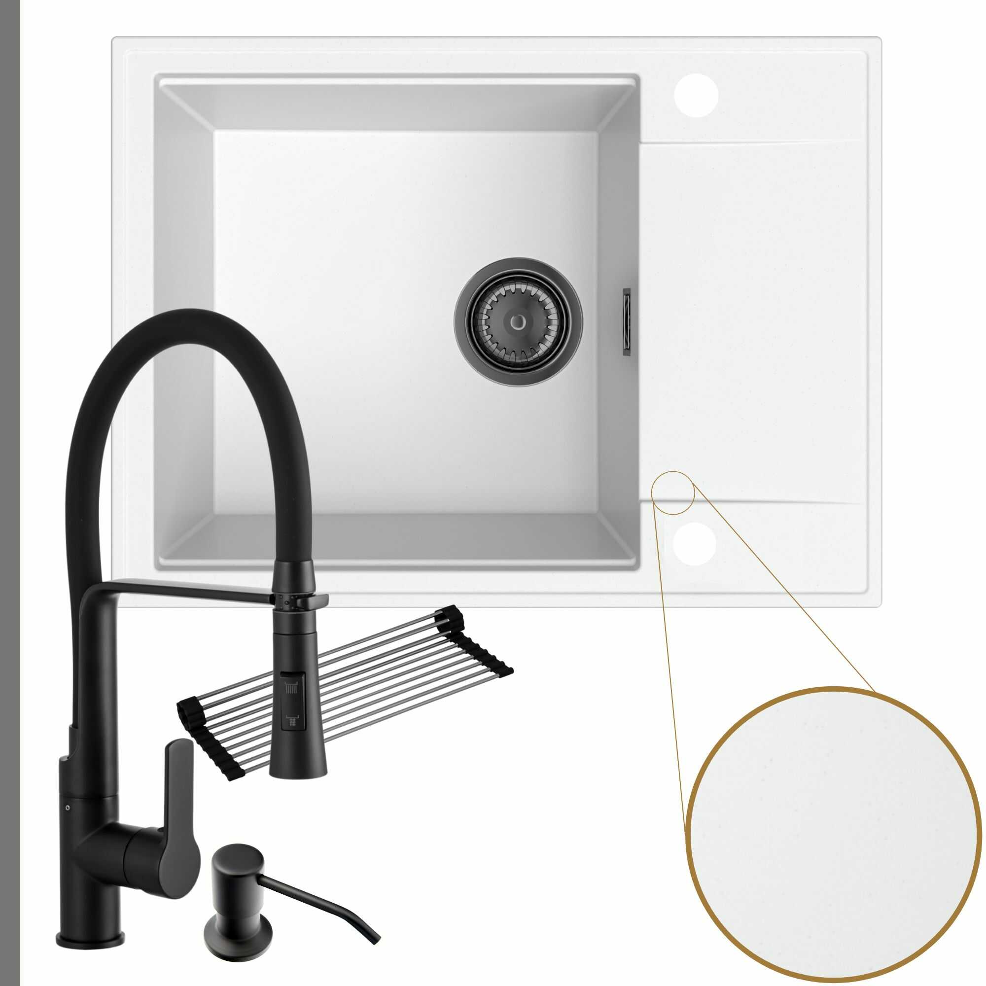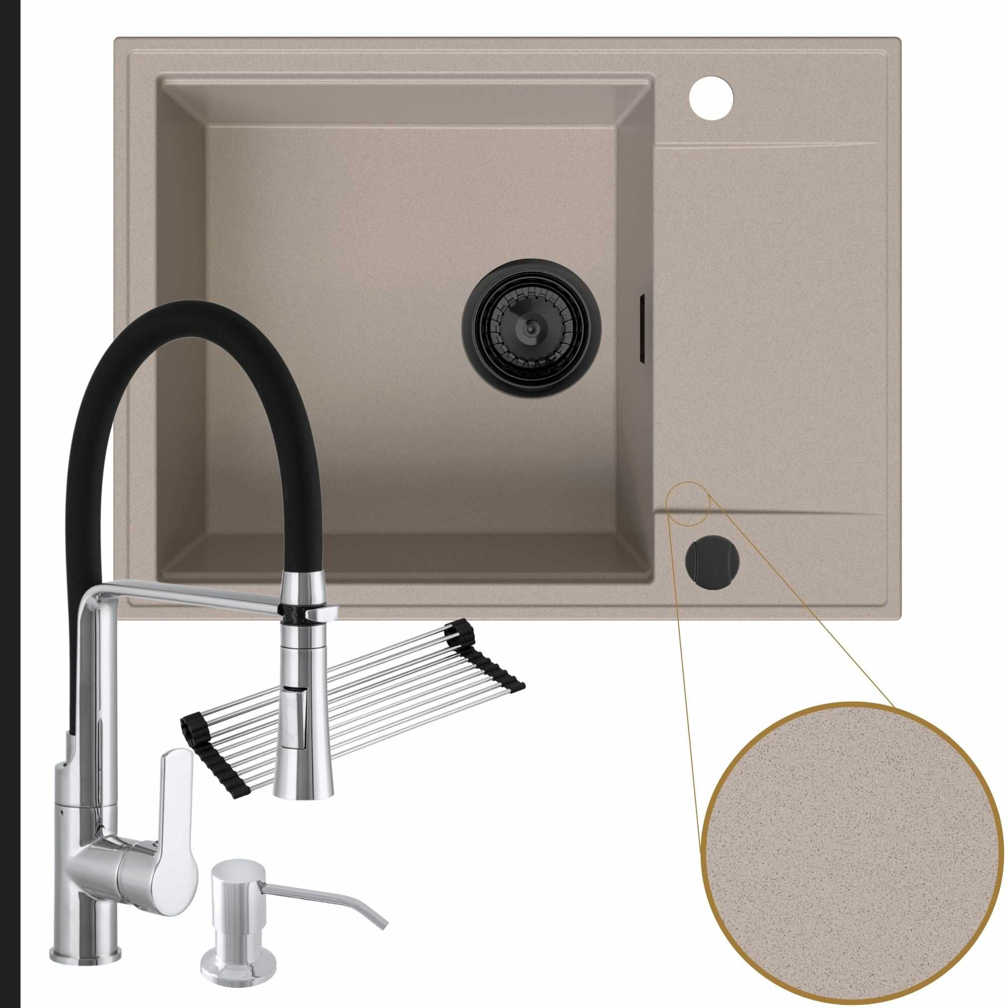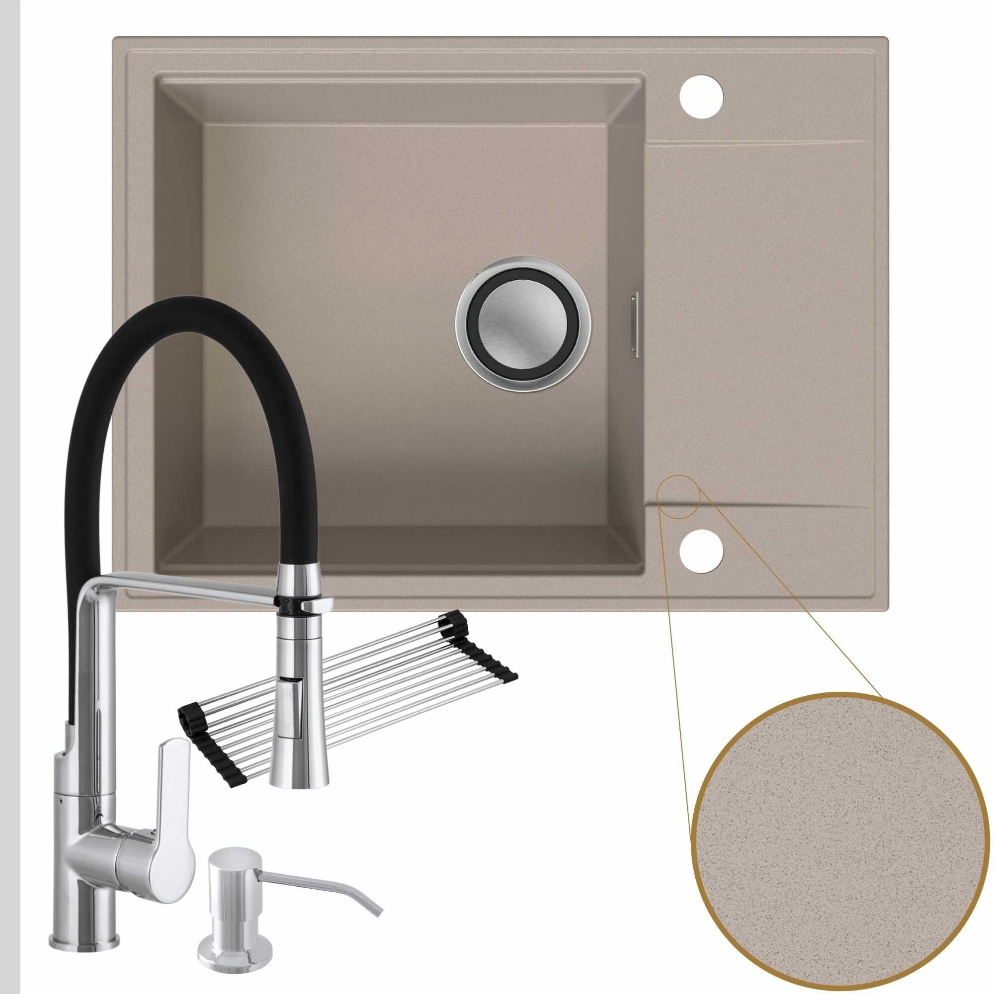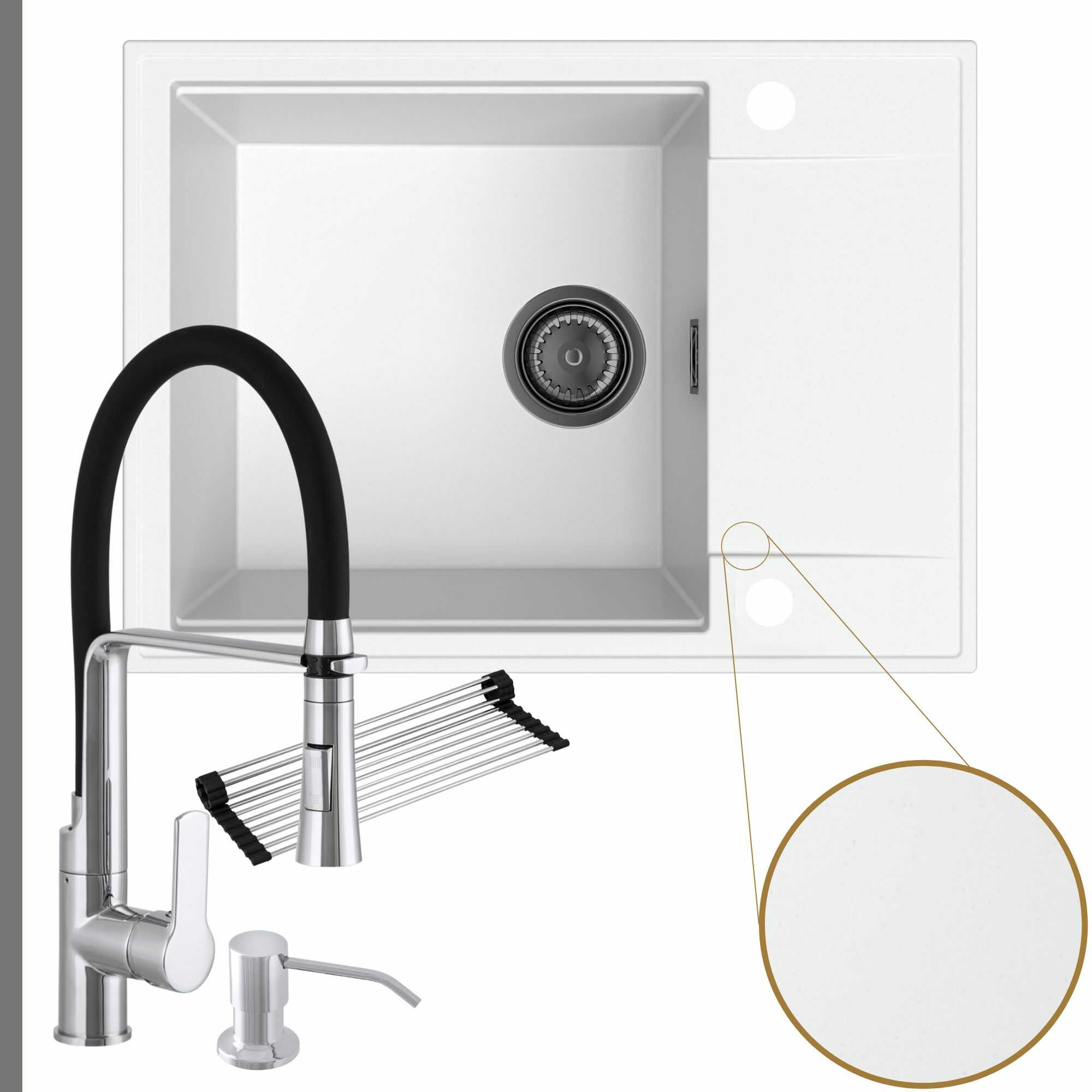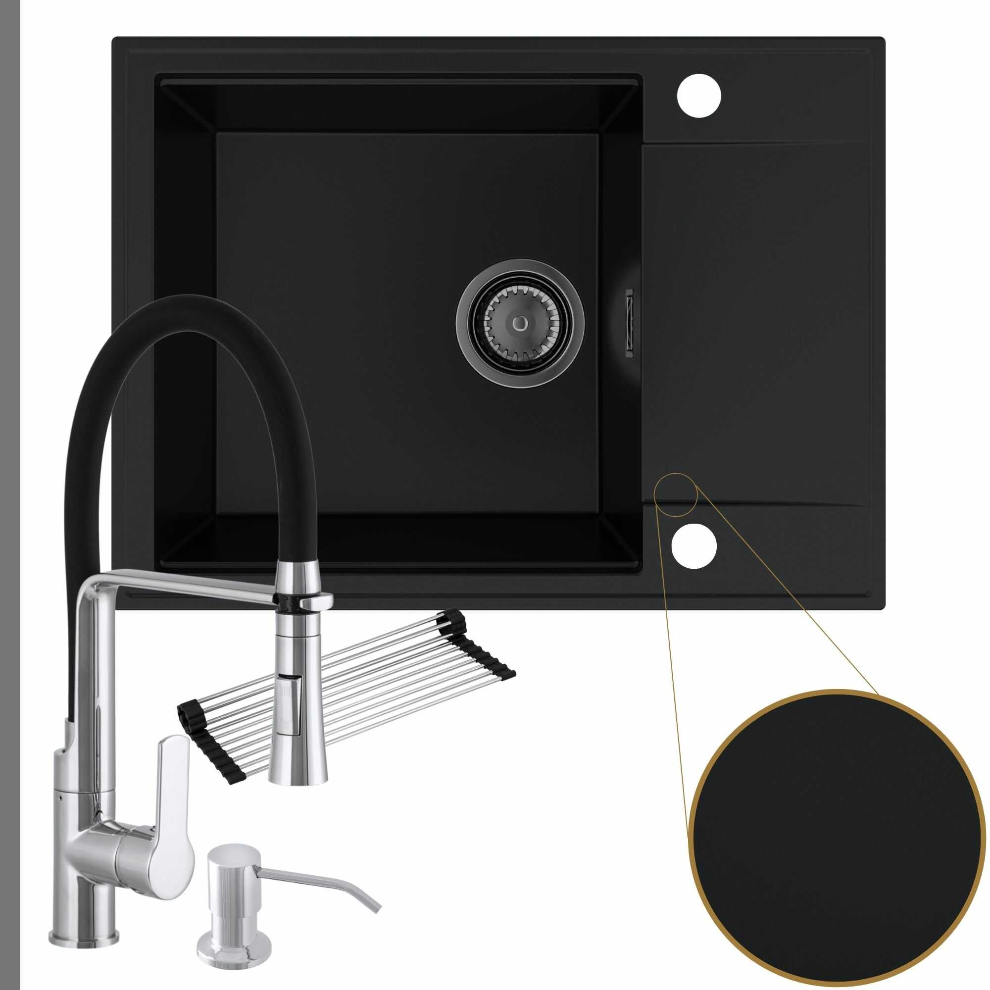 Komfortowa kuchnia: zlew + bateria + dozownik + syfon + mata