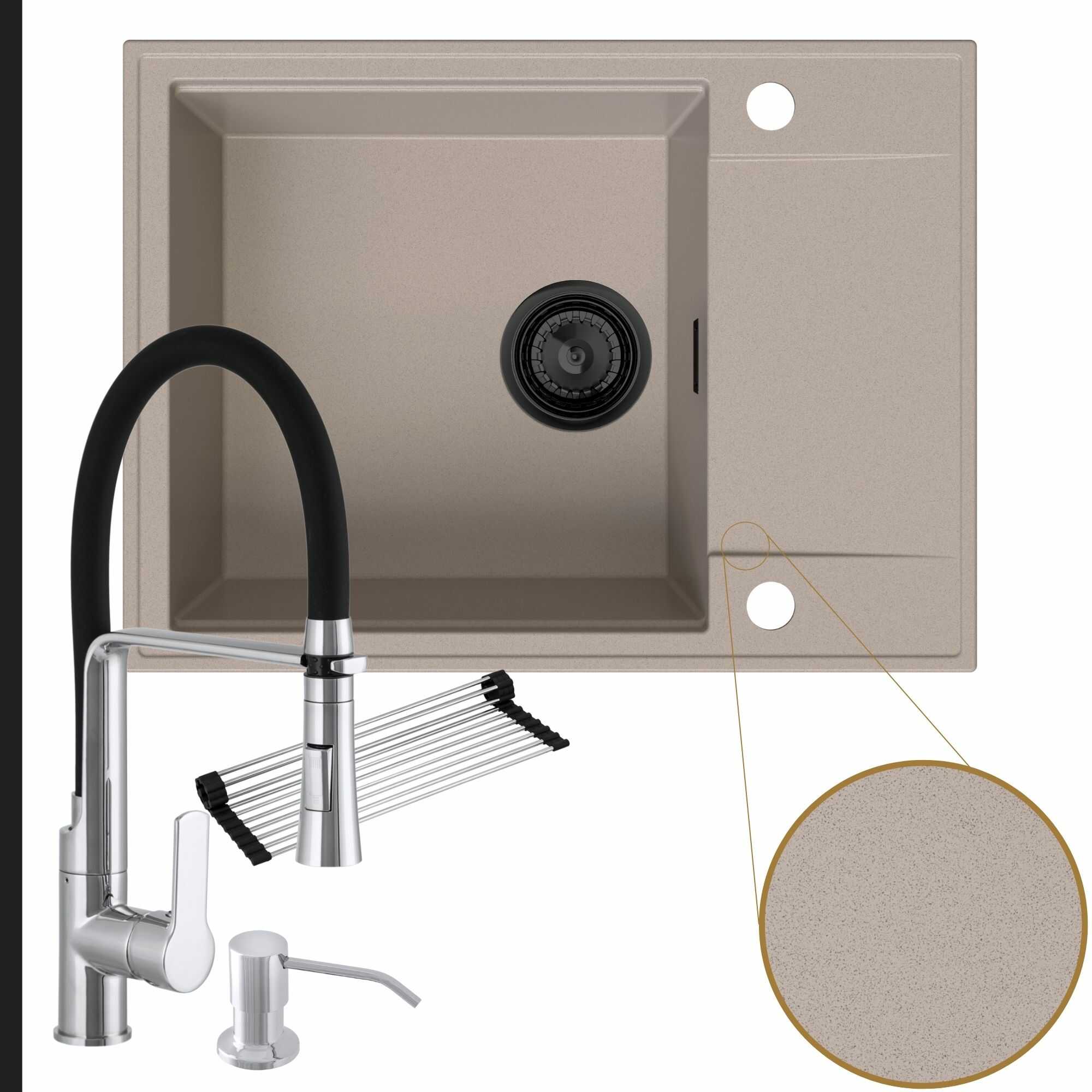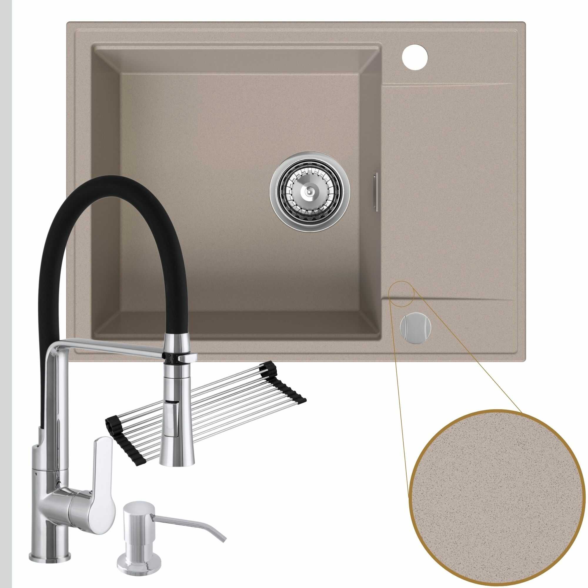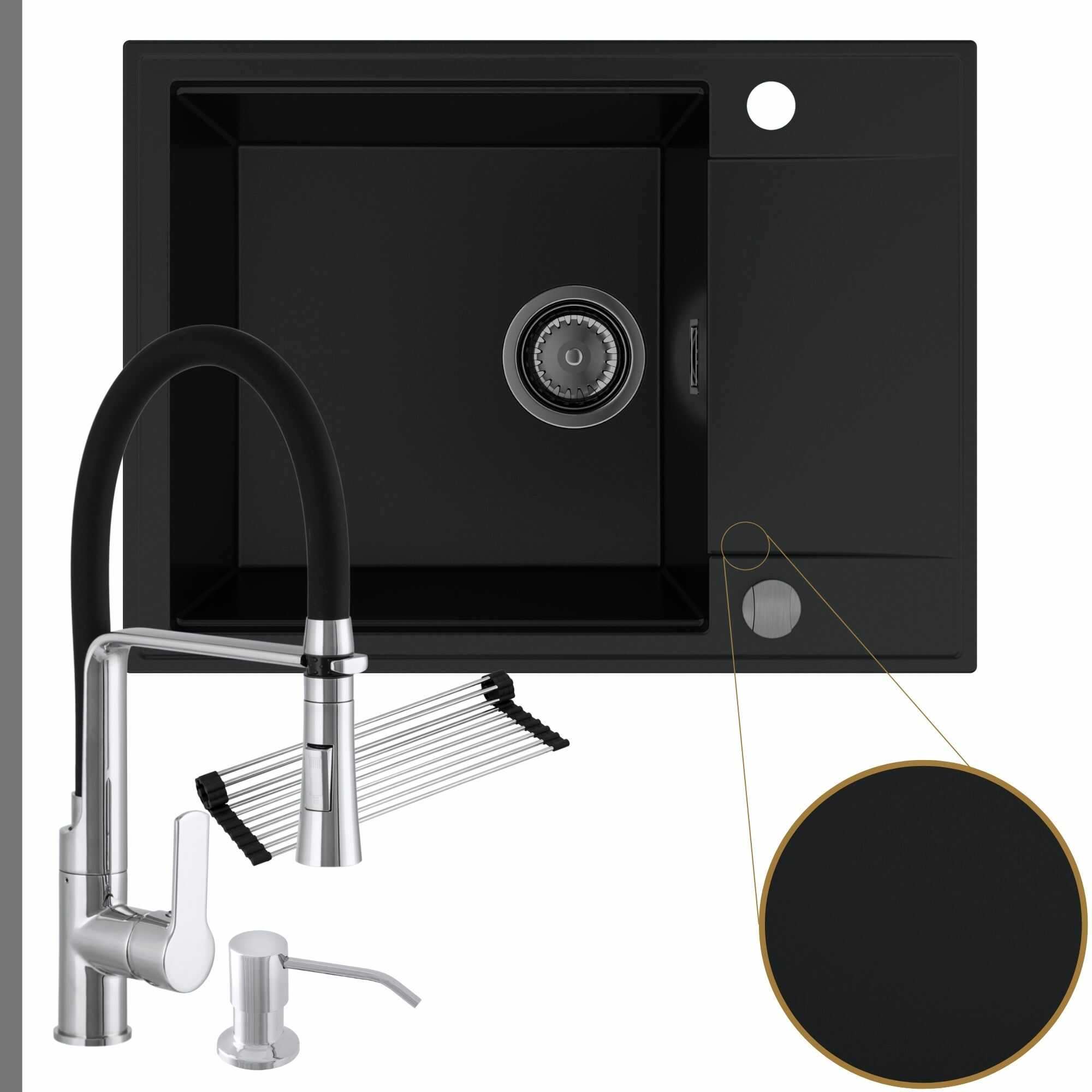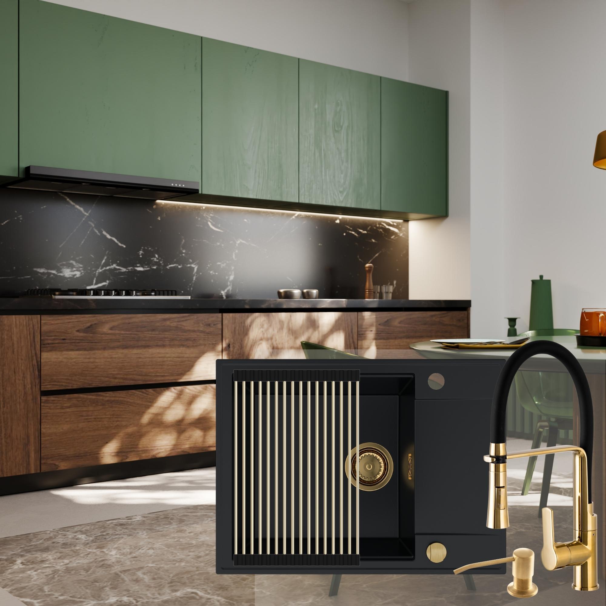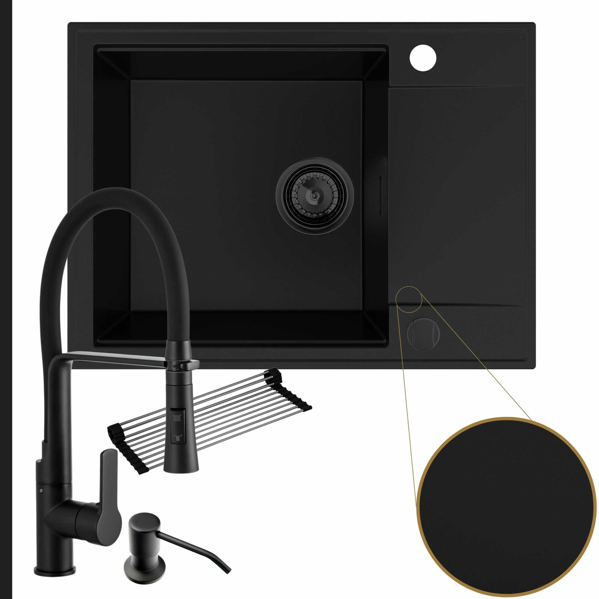 Komfortowa kuchnia: zlew + bateria + dozownik + syfon + mata