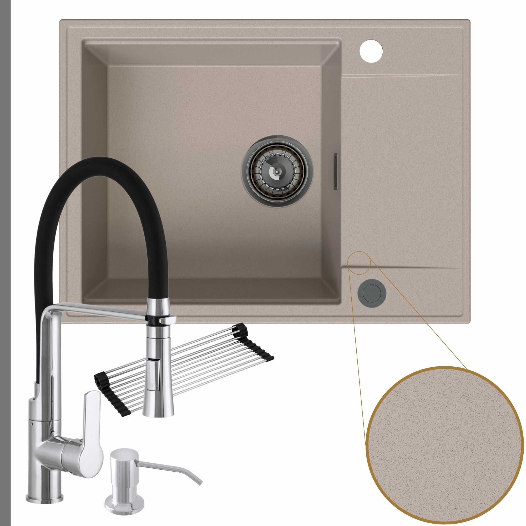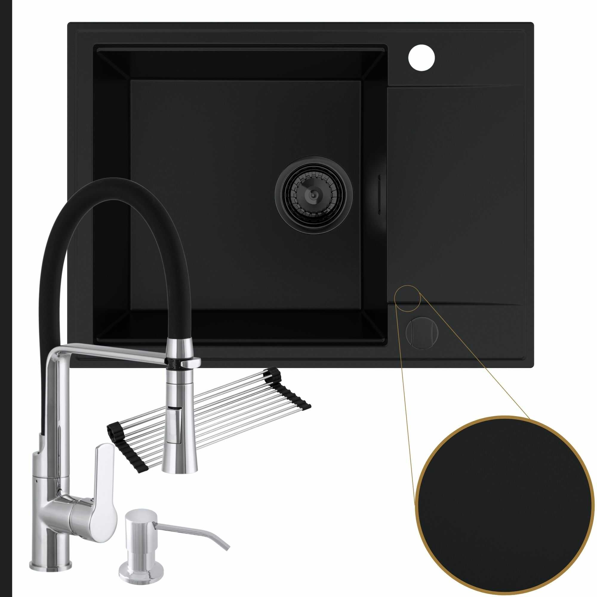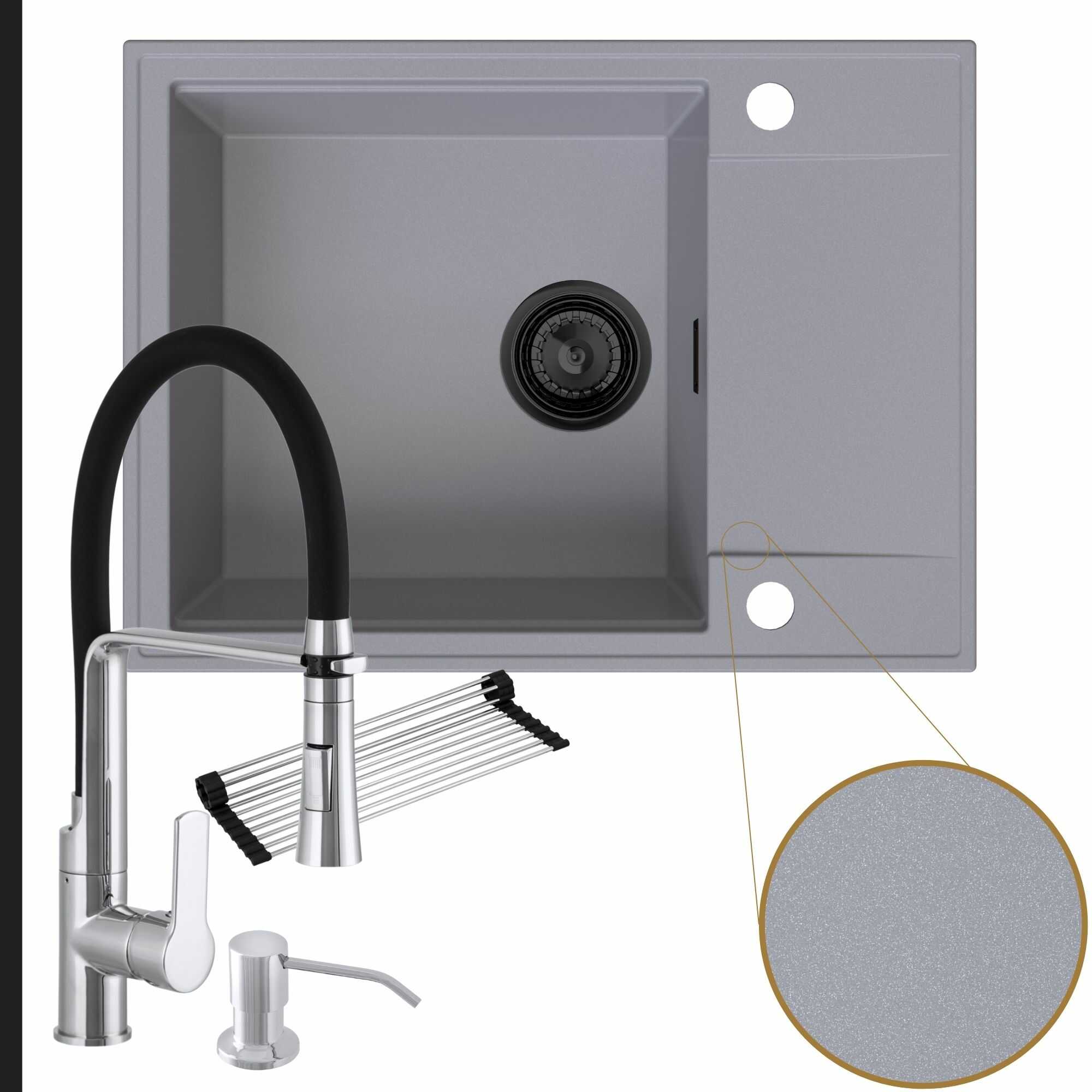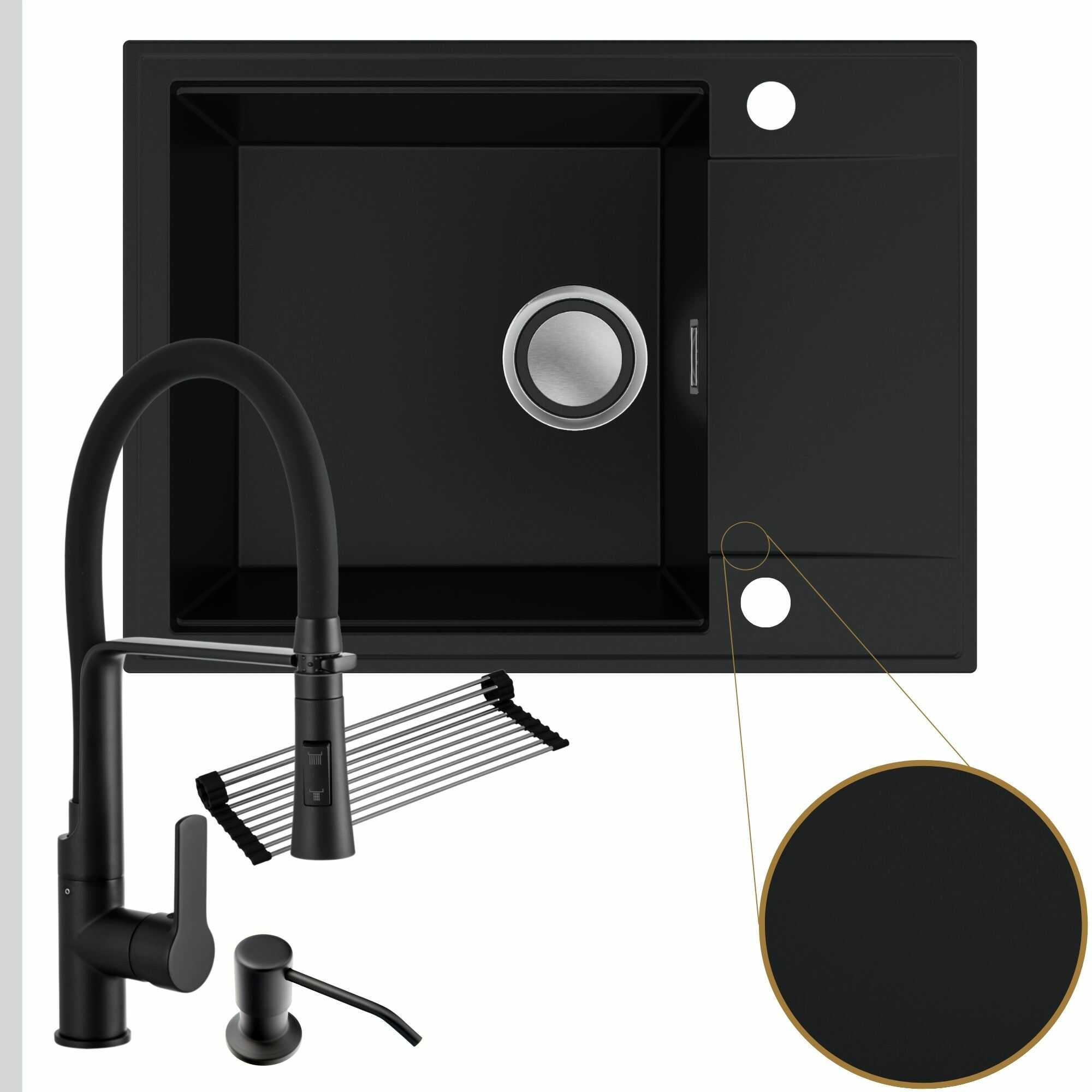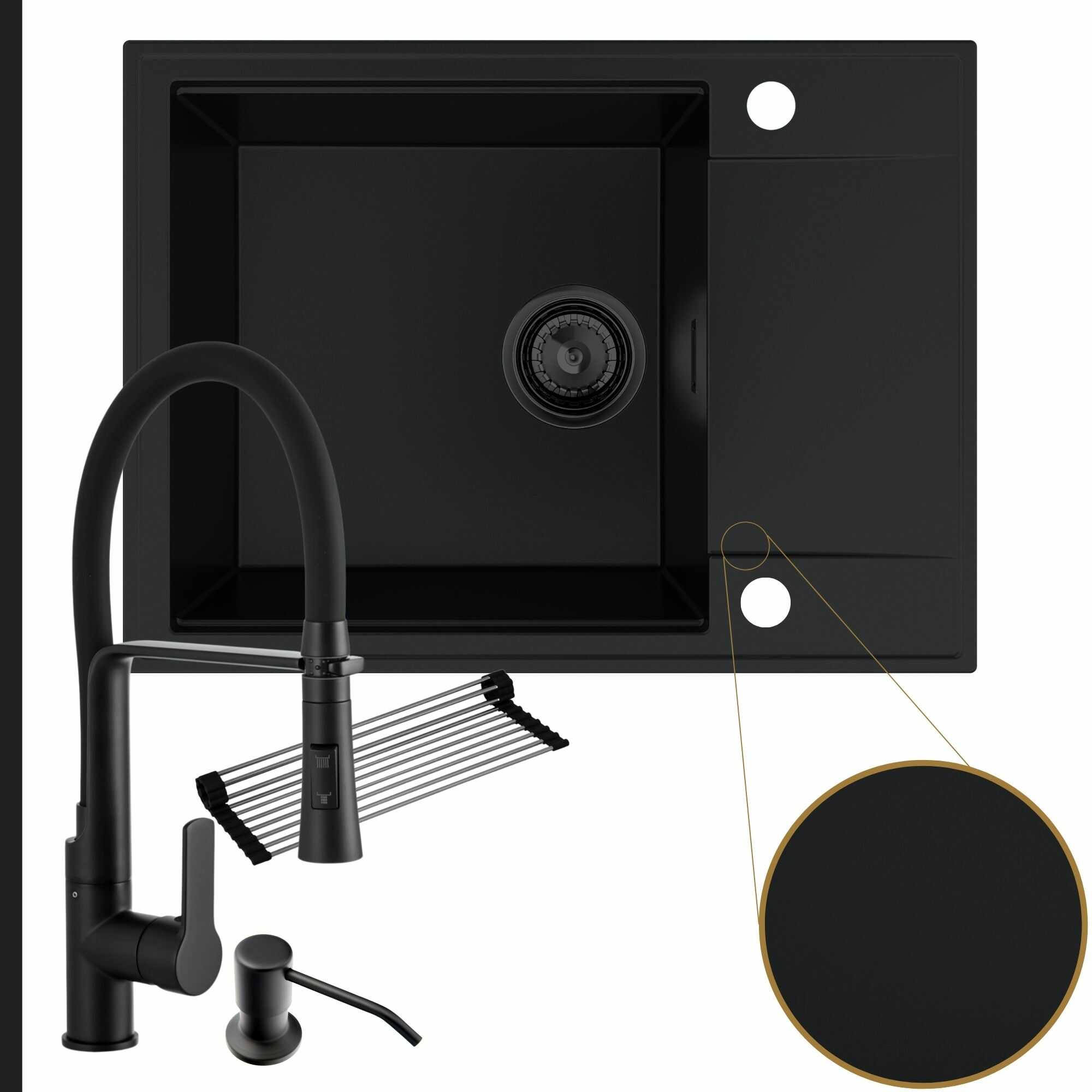 Komfortowa kuchnia: zlew + bateria + dozownik + syfon + mata
