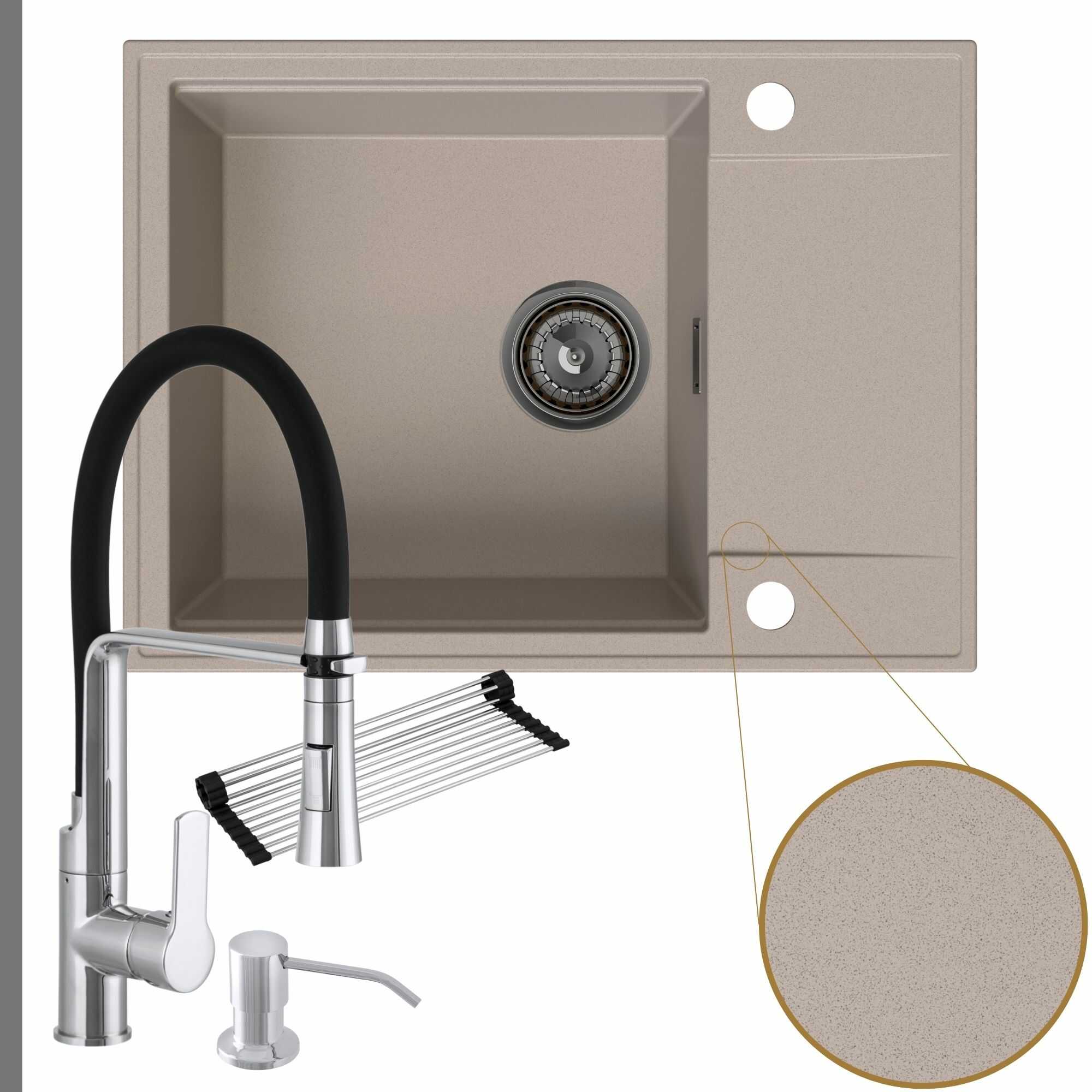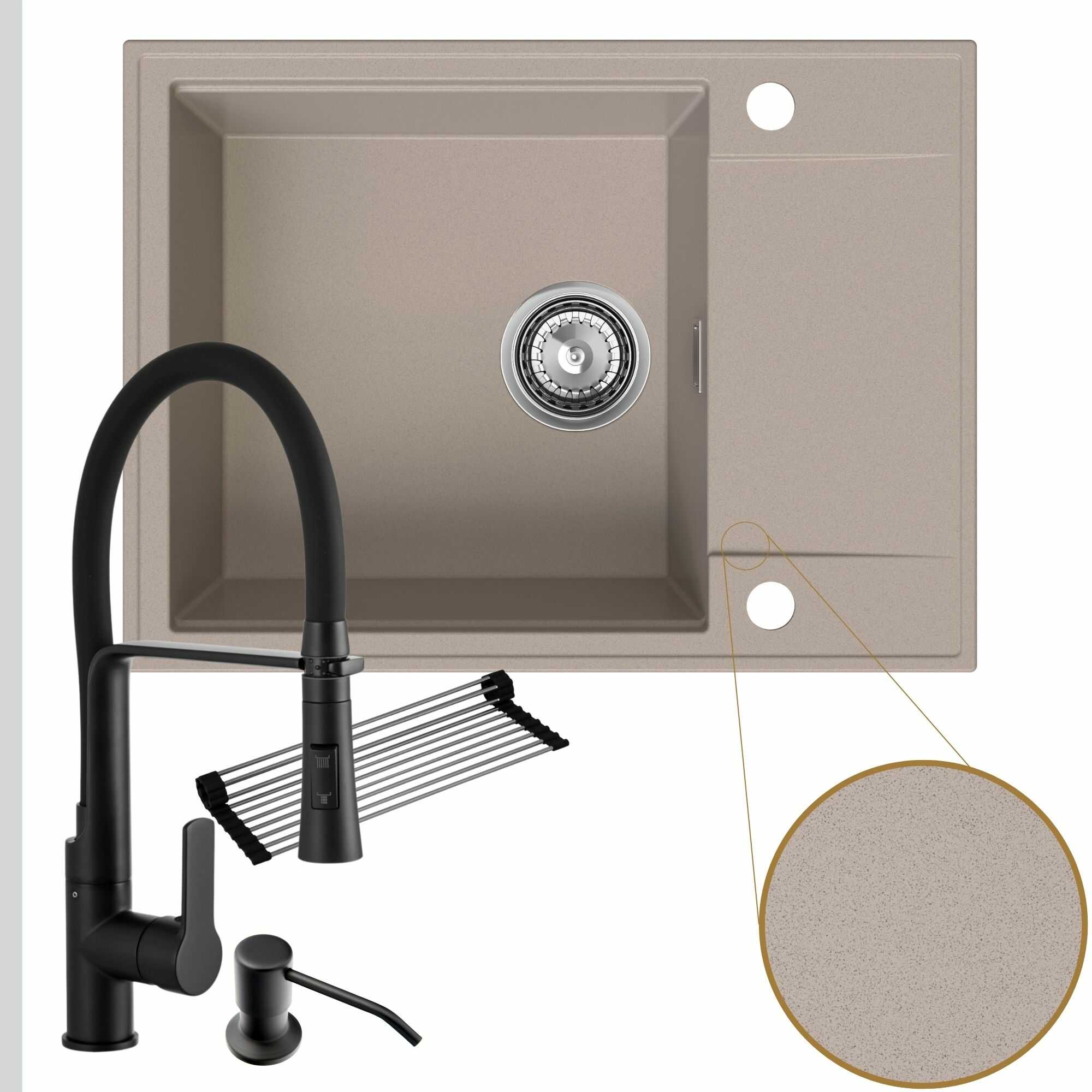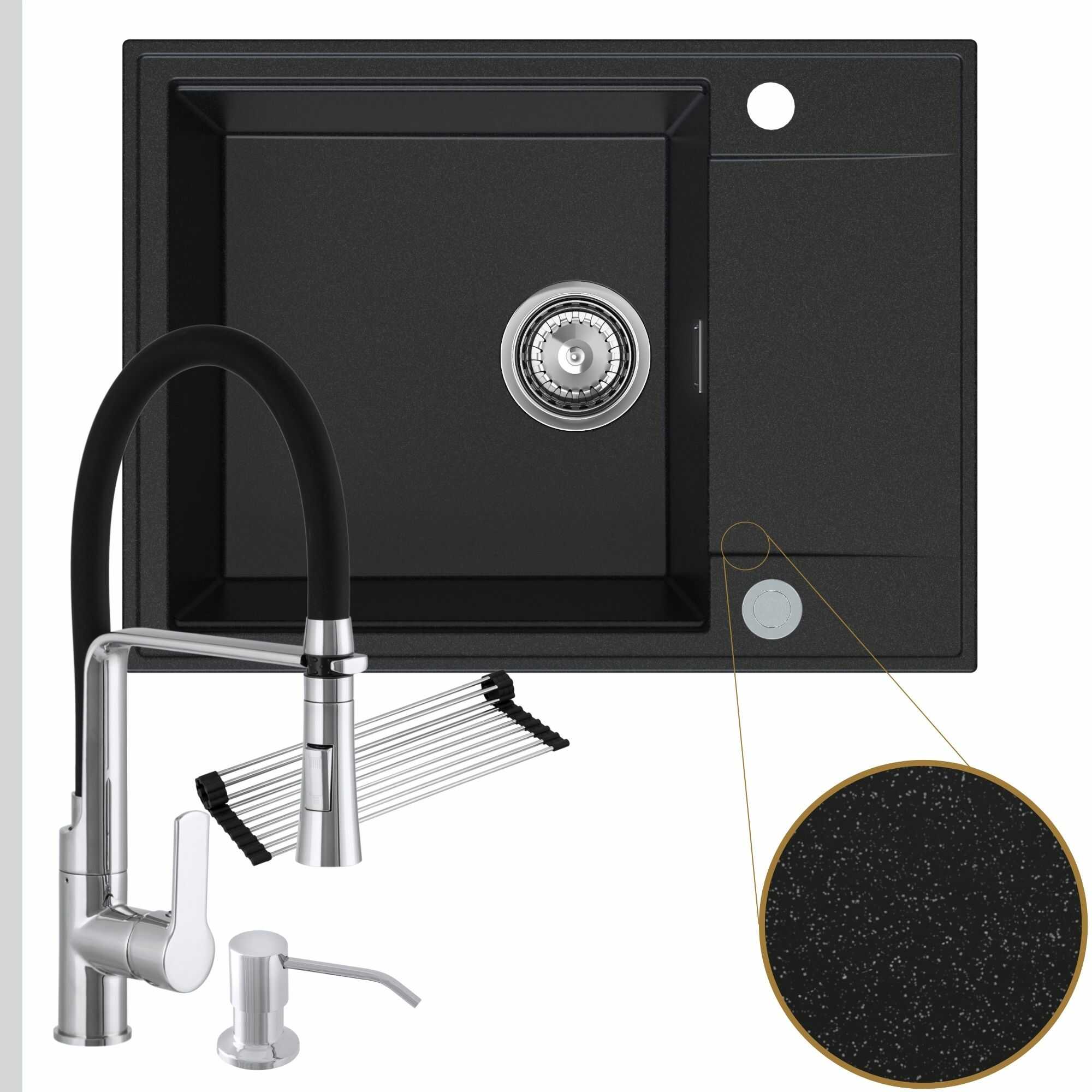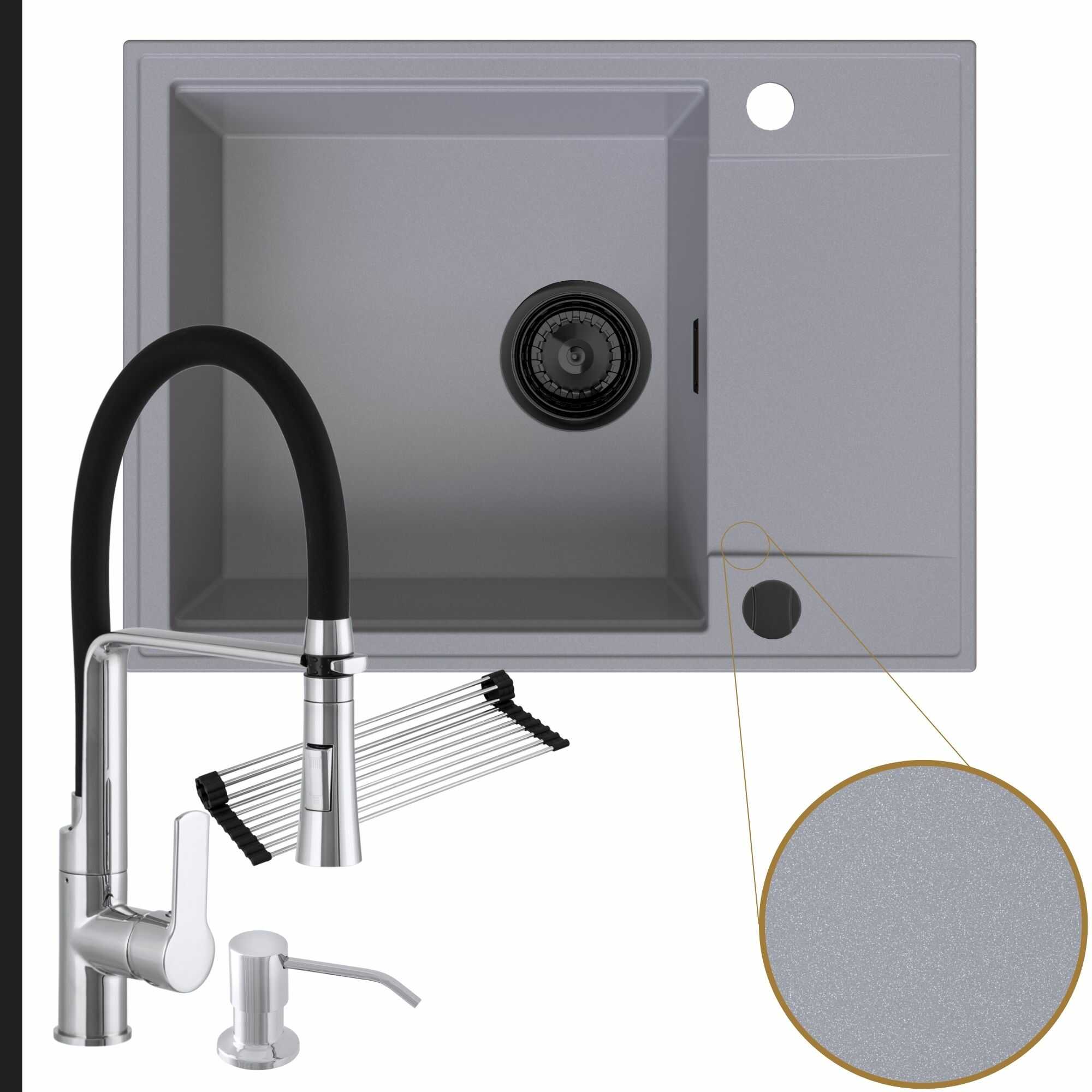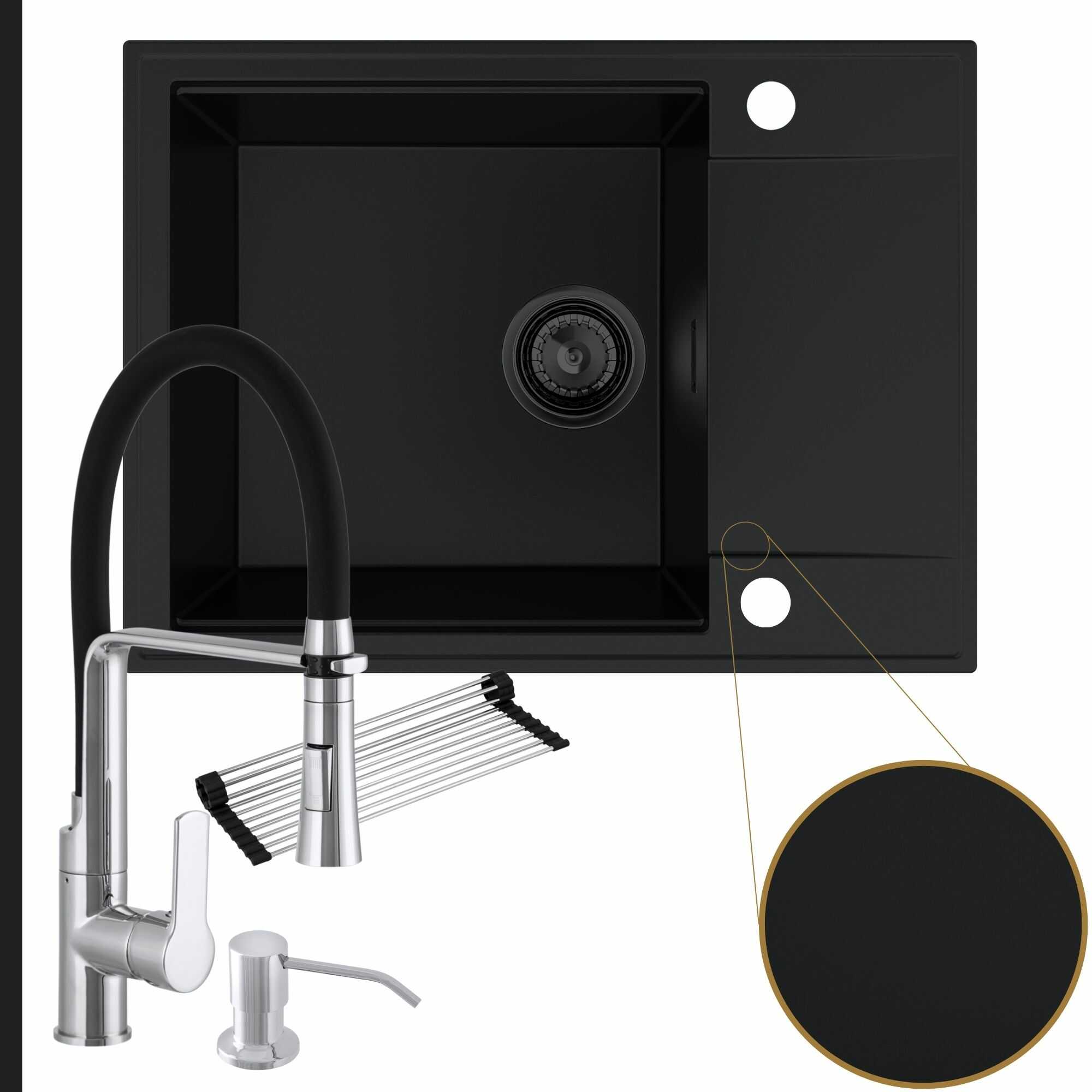 Komfortowa kuchnia: zlew + bateria + dozownik + syfon + mata