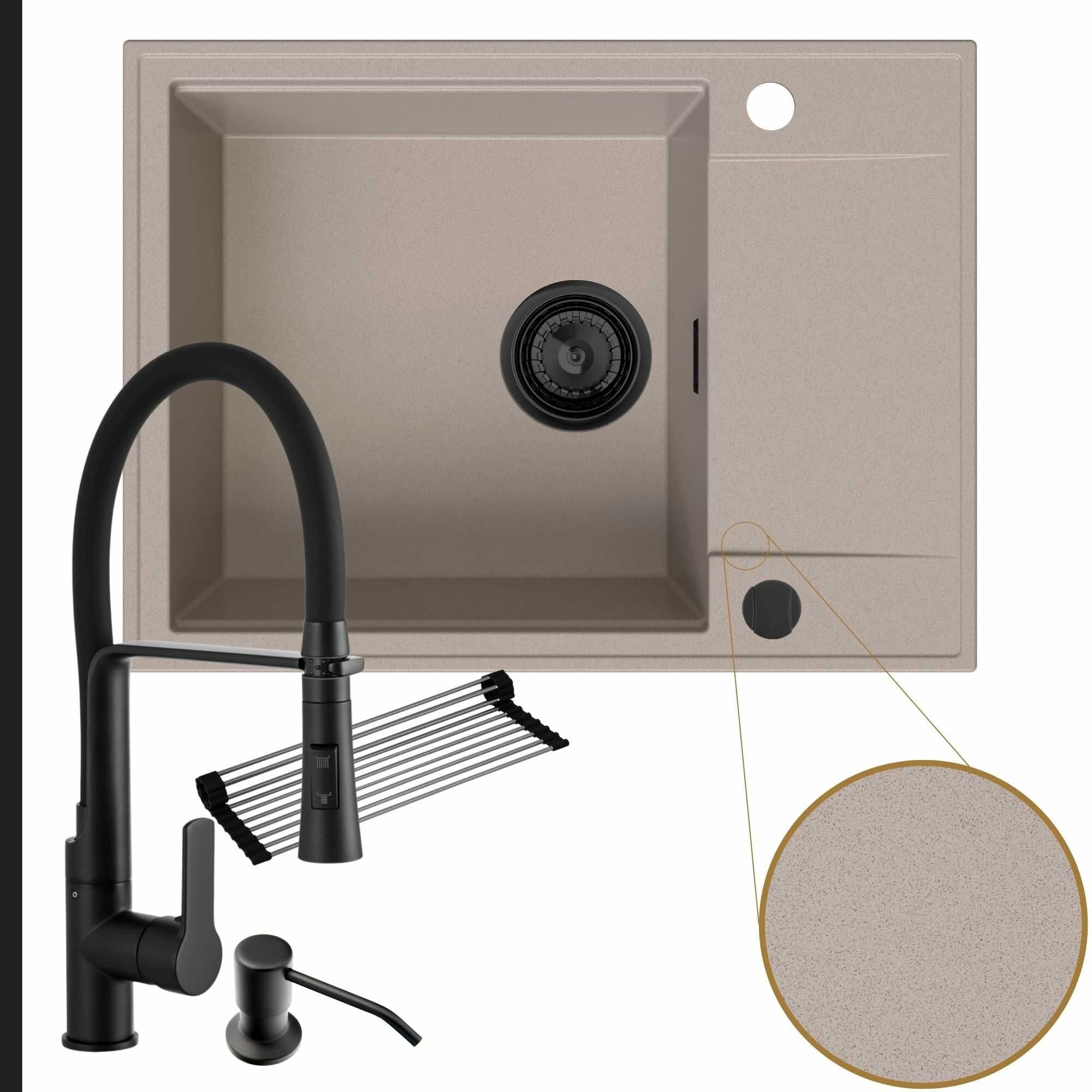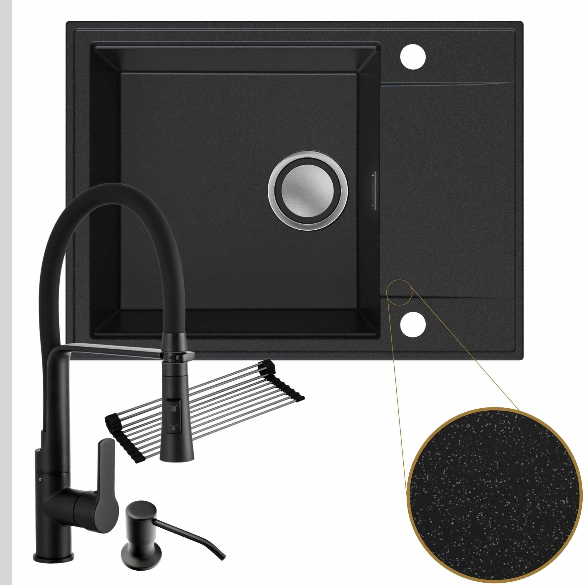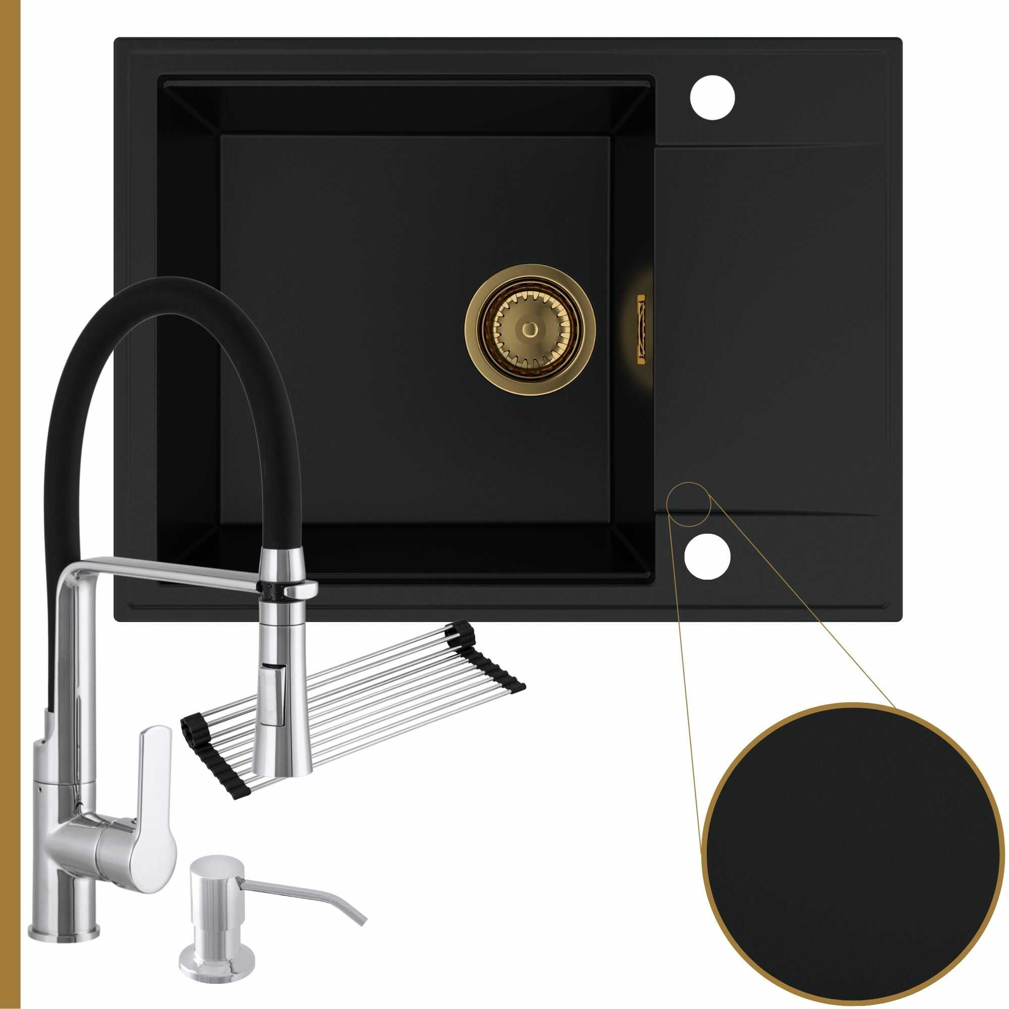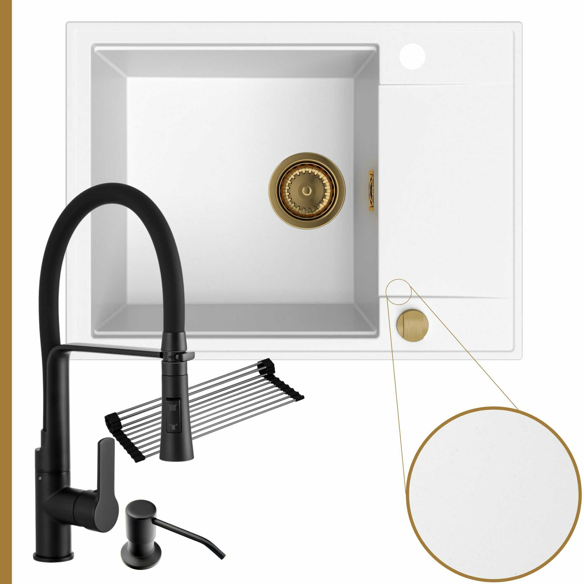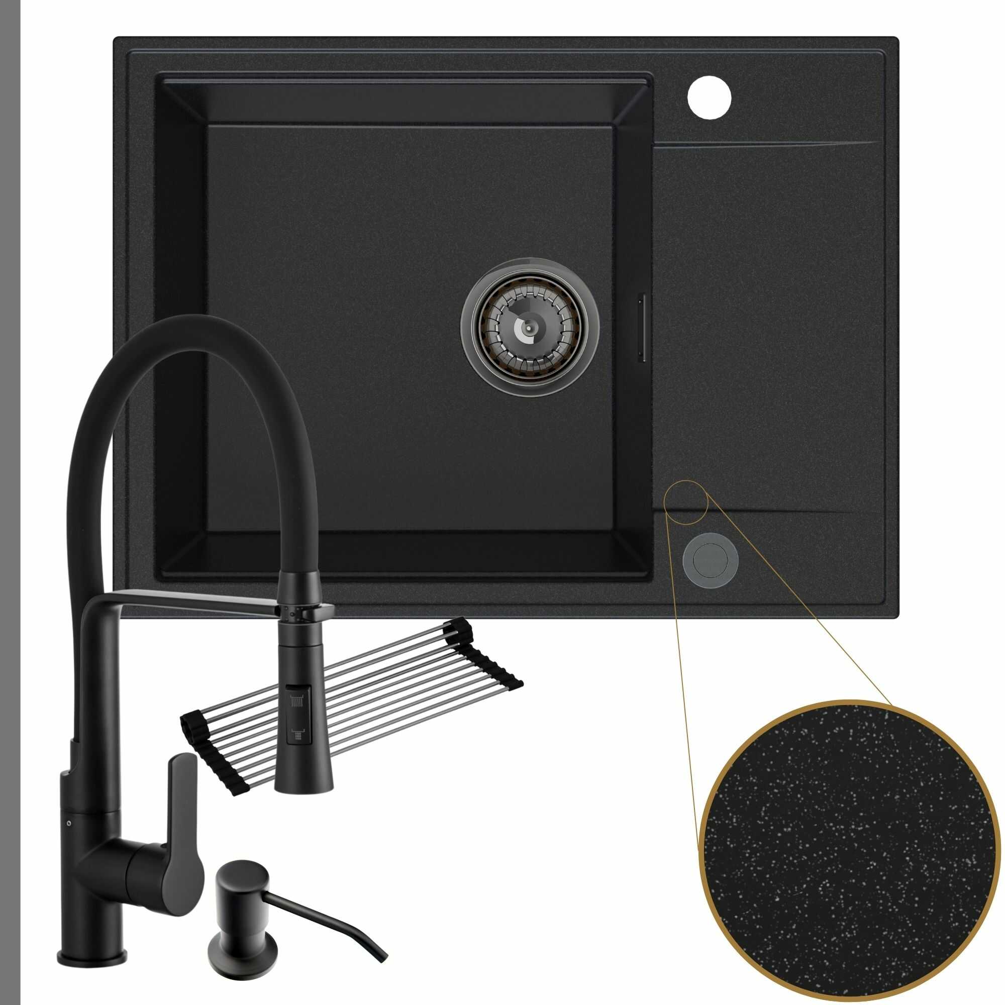 Komfortowa kuchnia: zlew + bateria + dozownik + syfon + mata