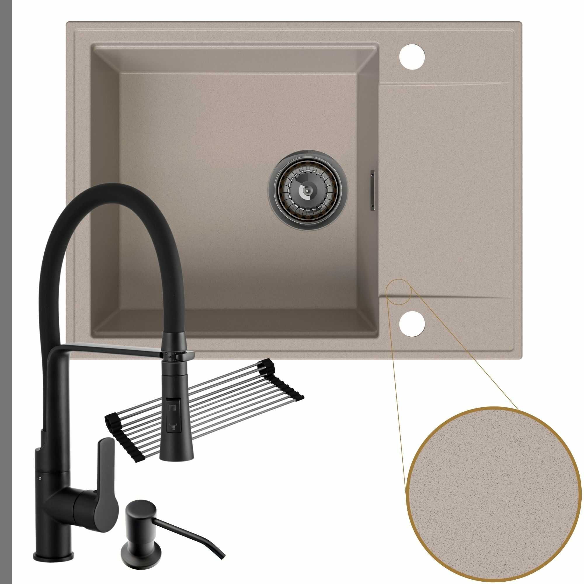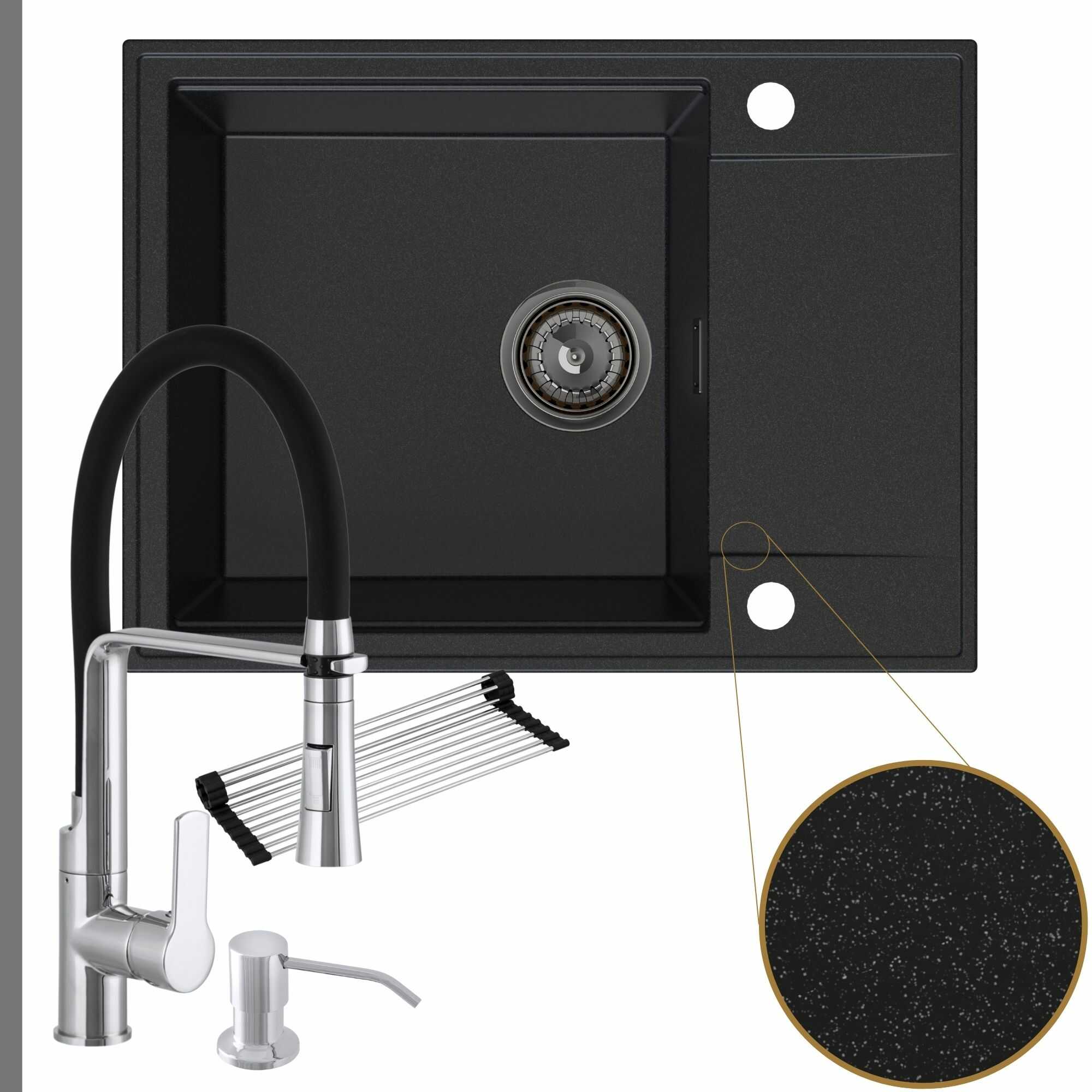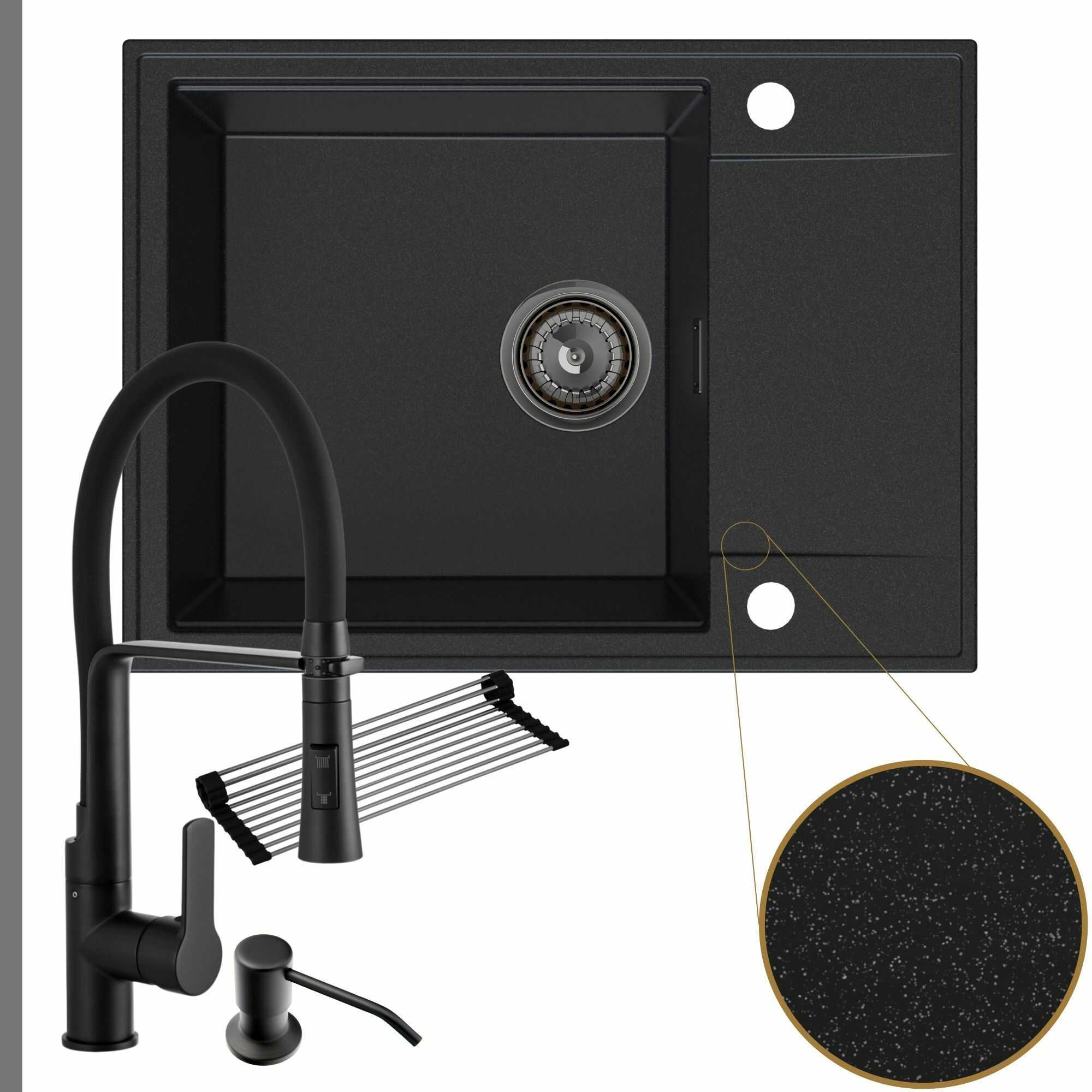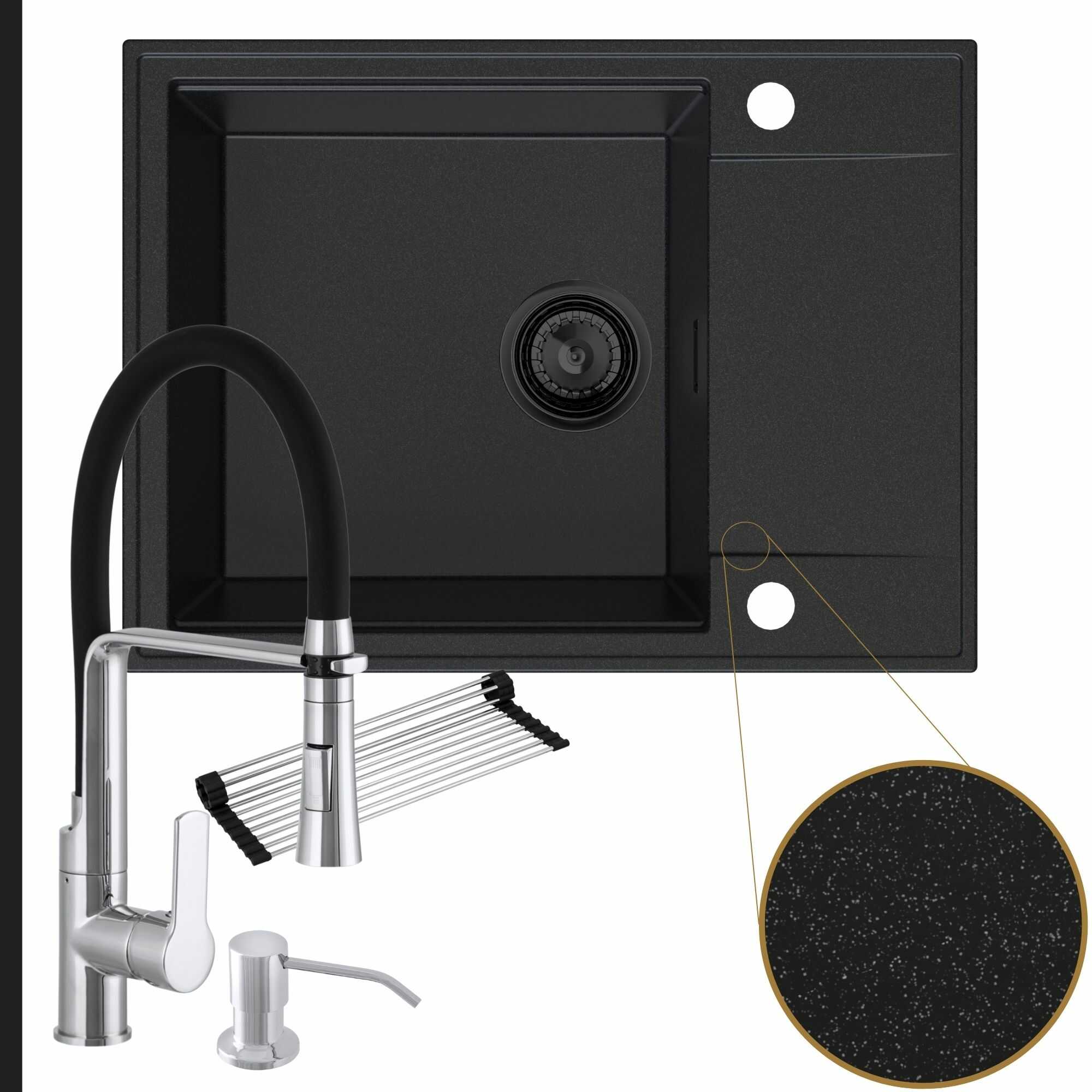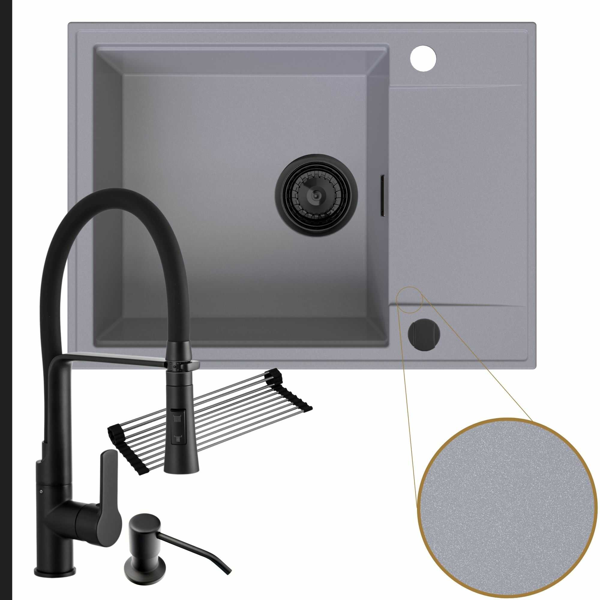 Komfortowa kuchnia: zlew + bateria + dozownik + syfon + mata