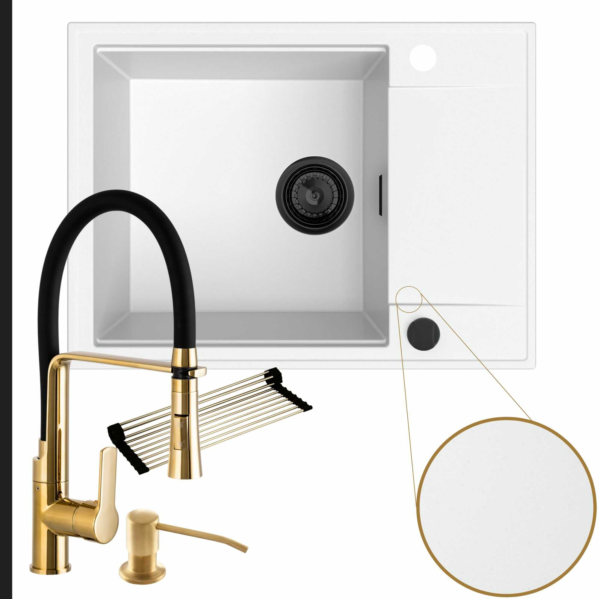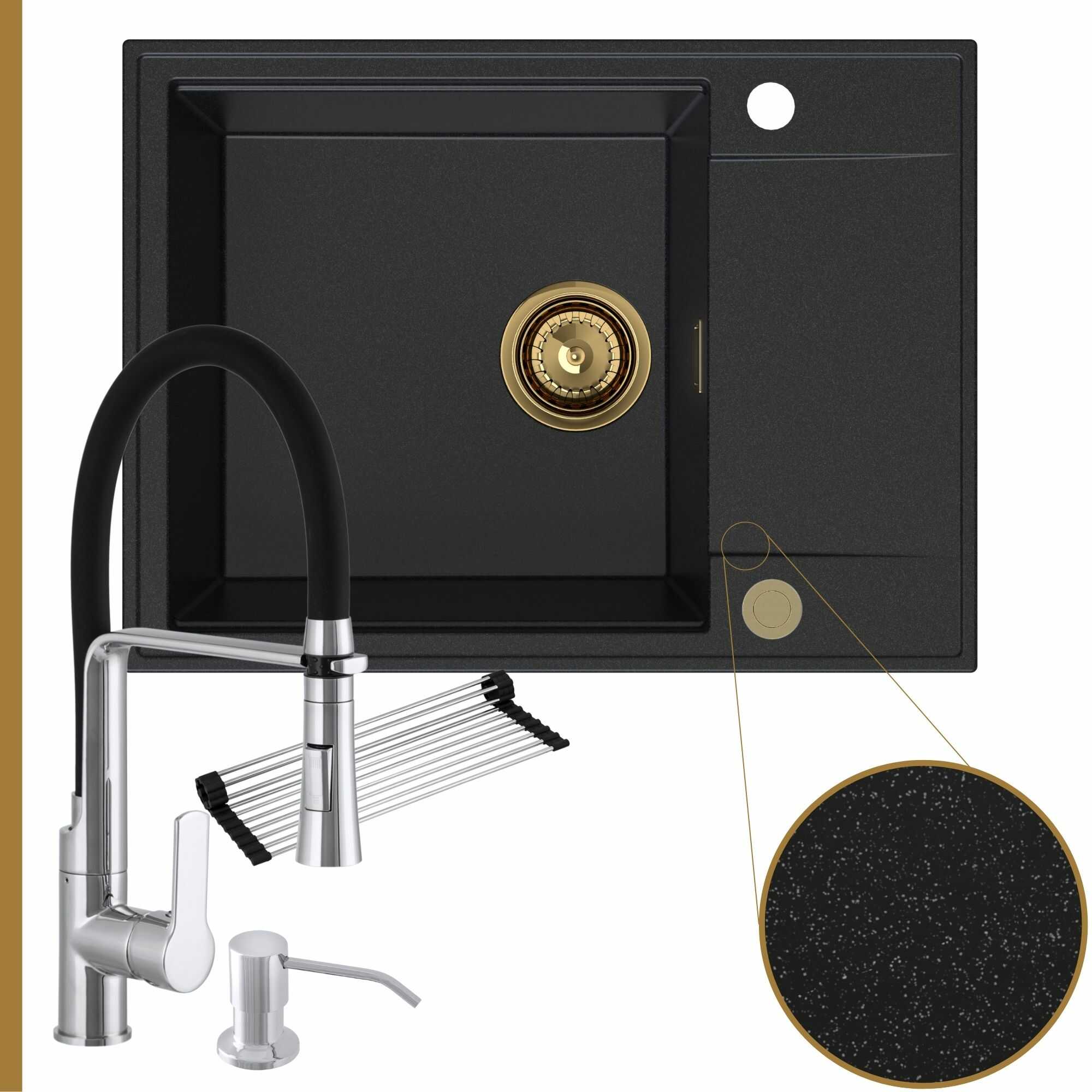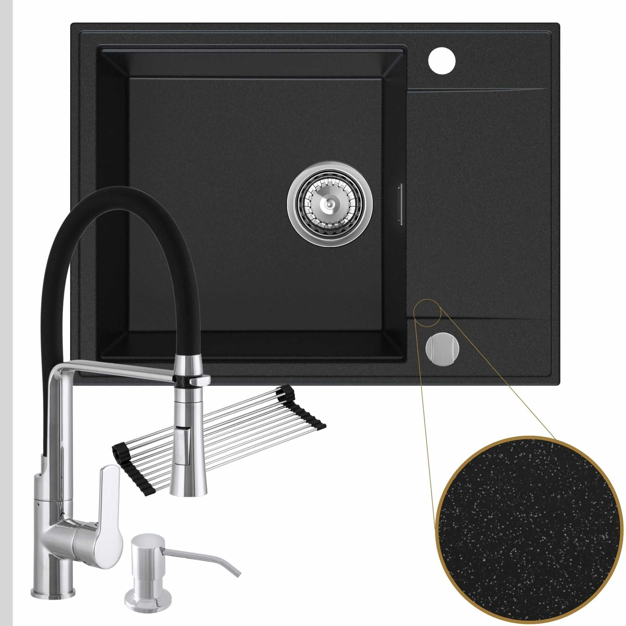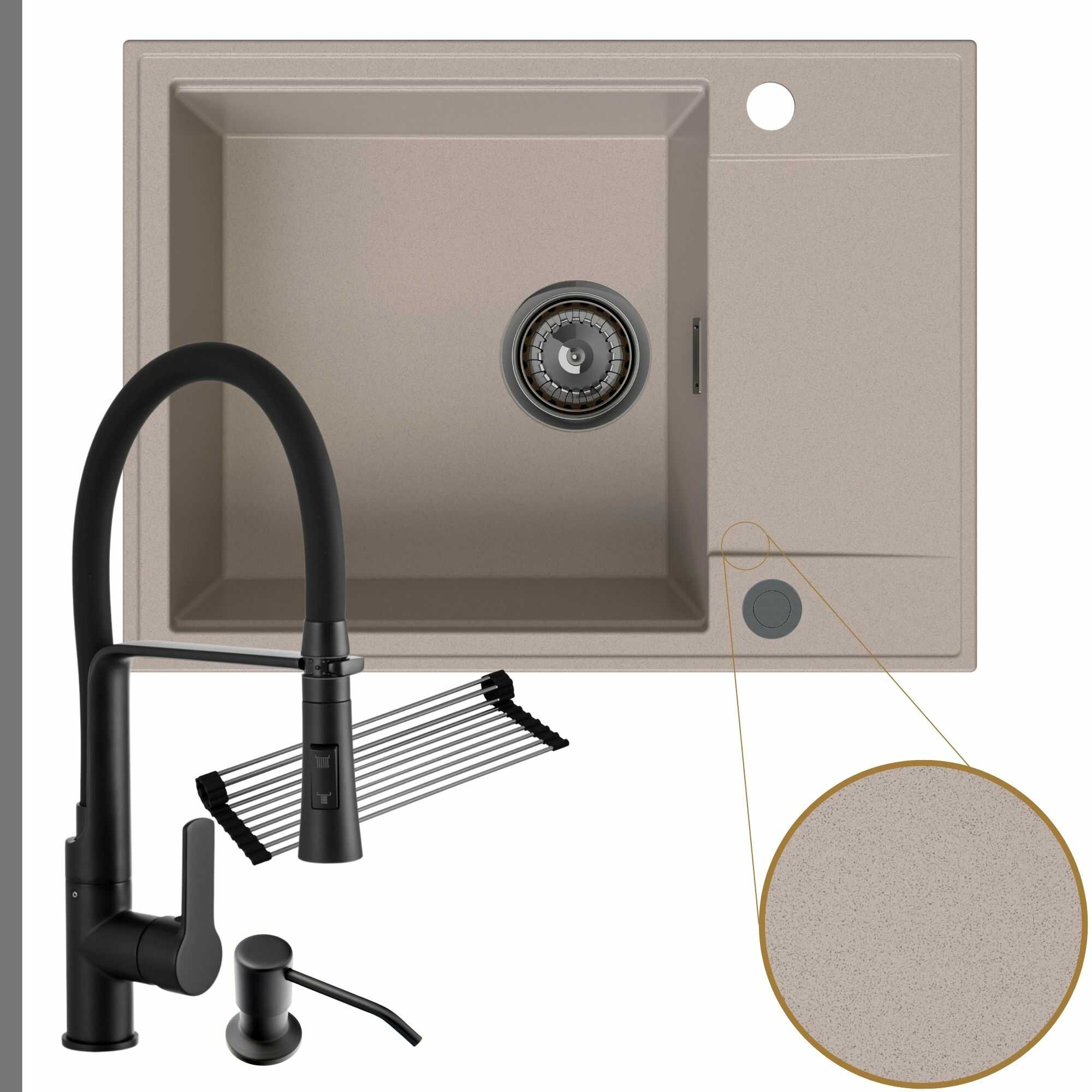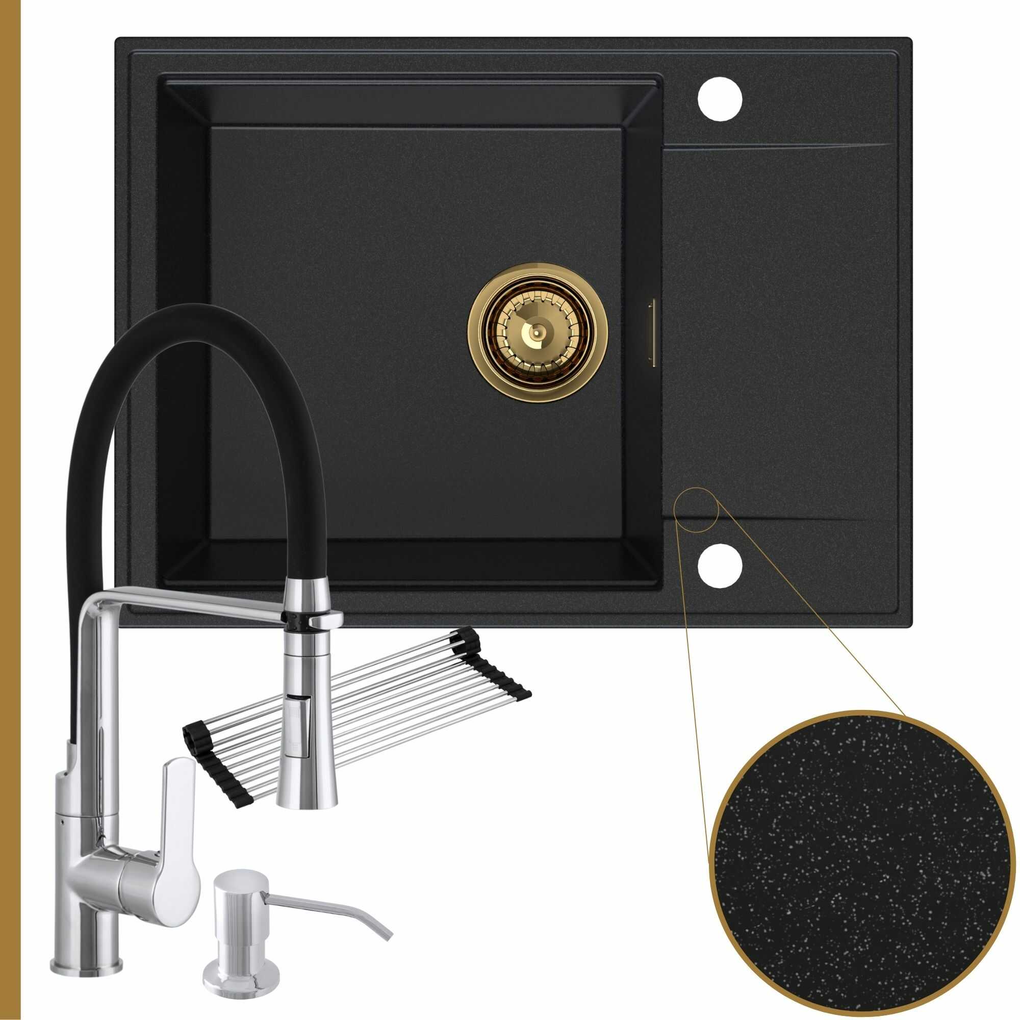 Komfortowa kuchnia: zlew + bateria + dozownik + syfon + mata