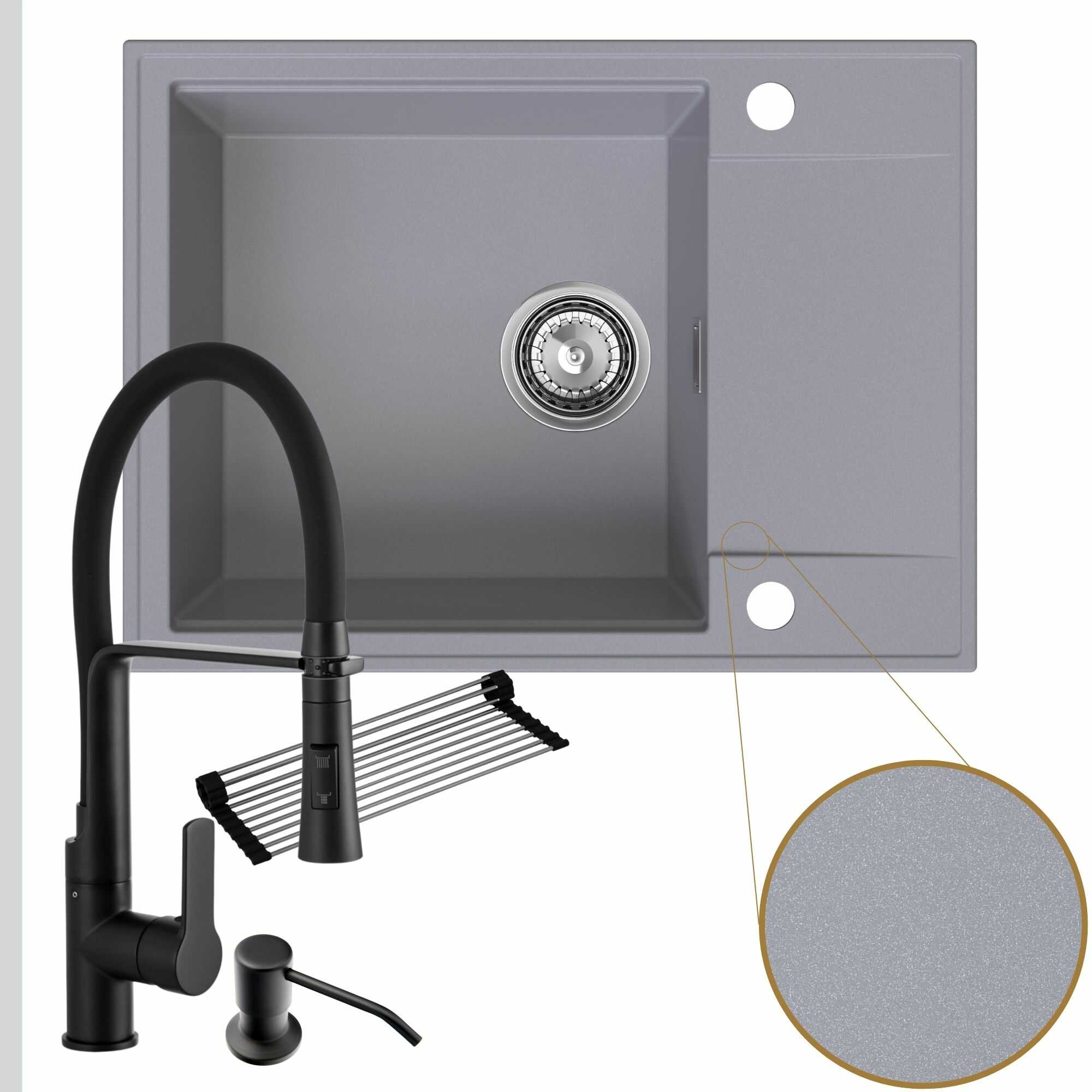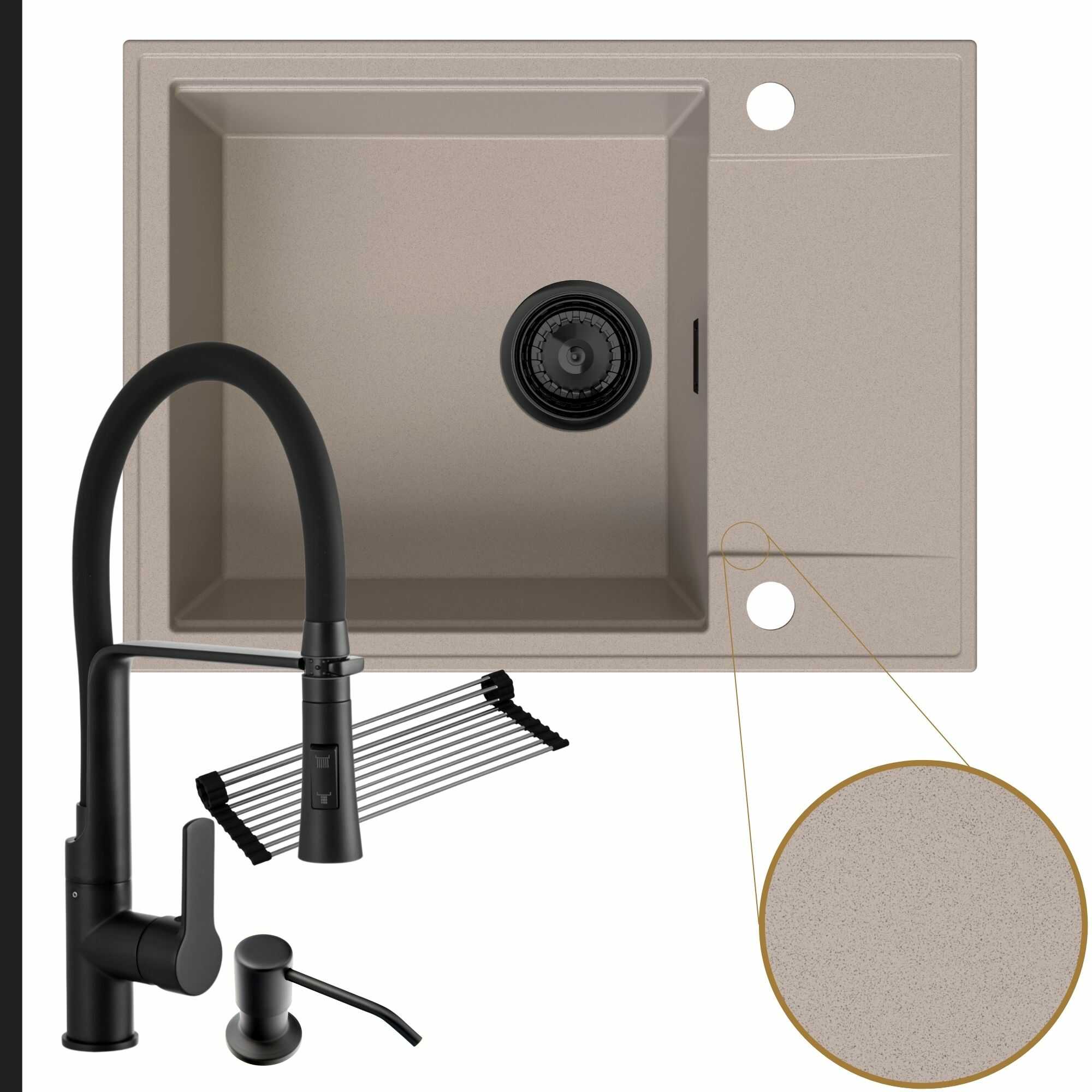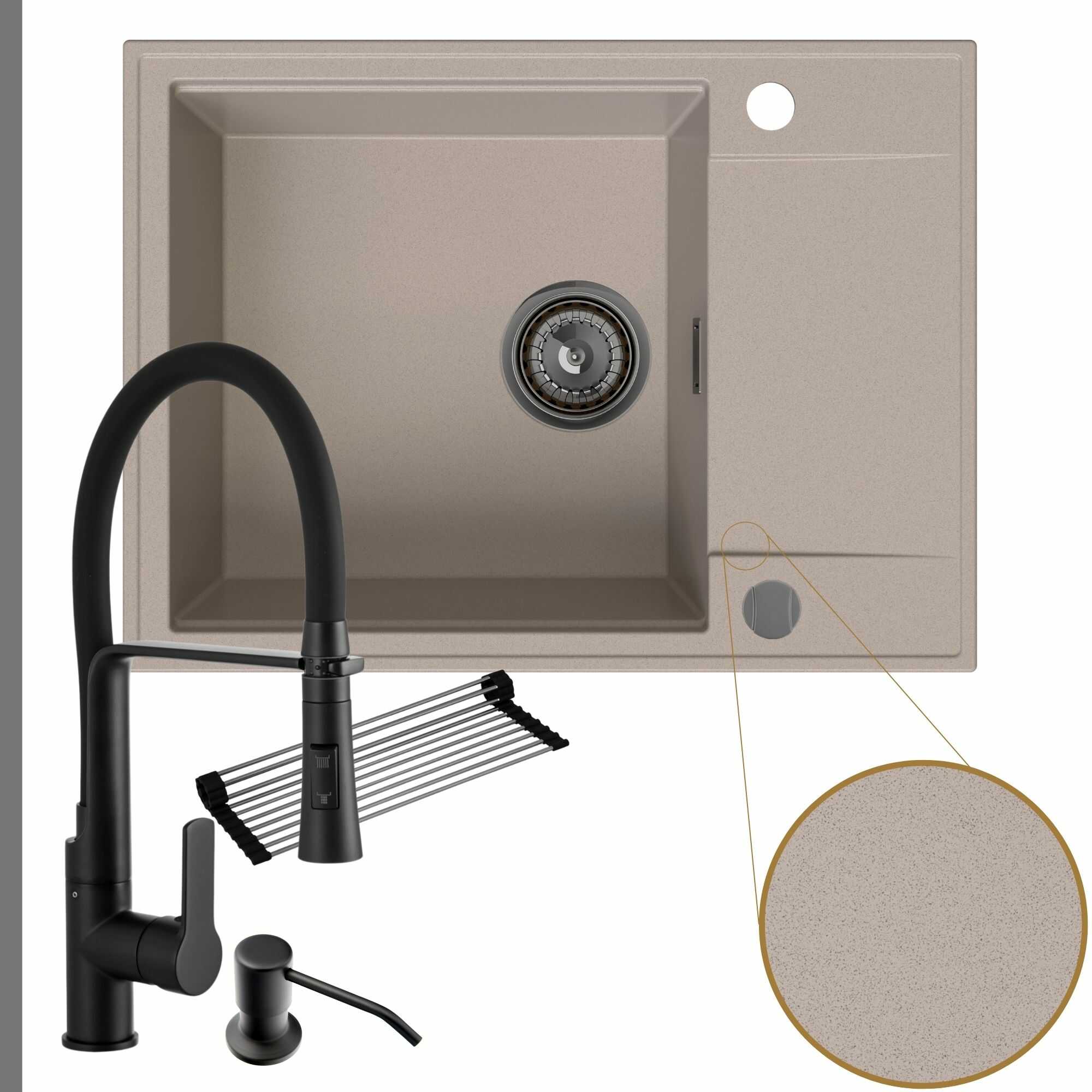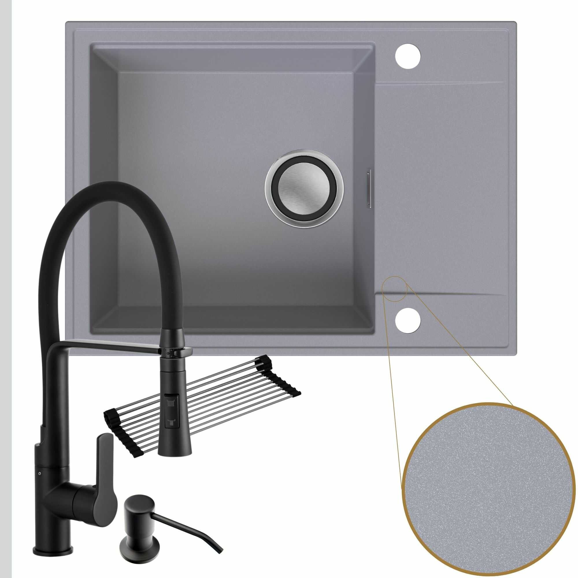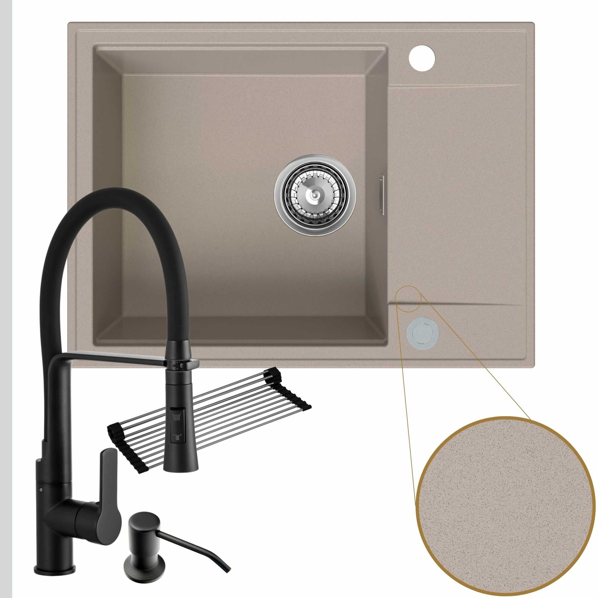 Komfortowa kuchnia: zlew + bateria + dozownik + syfon + mata