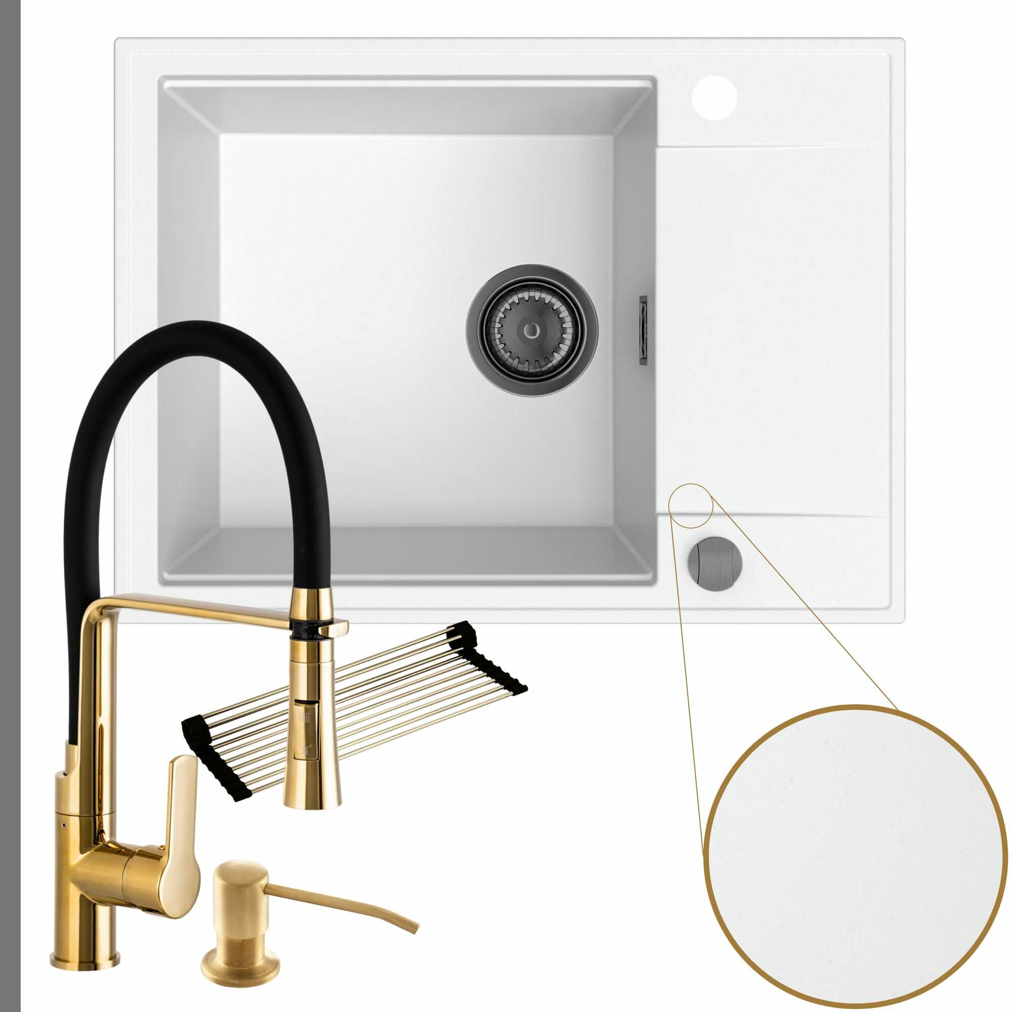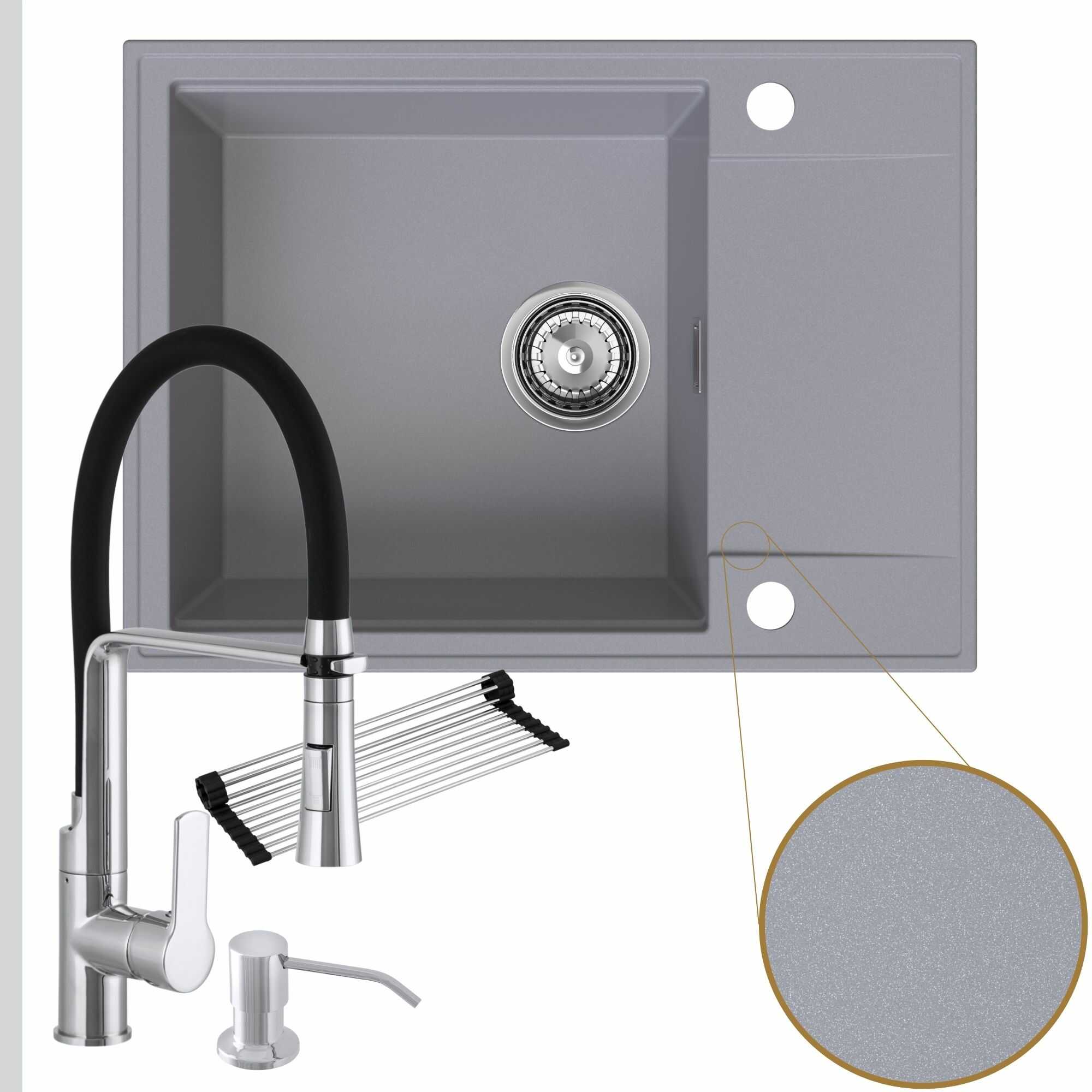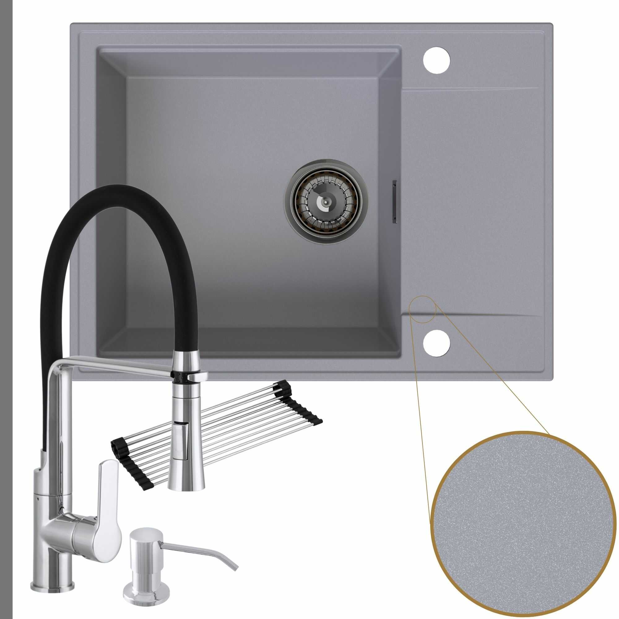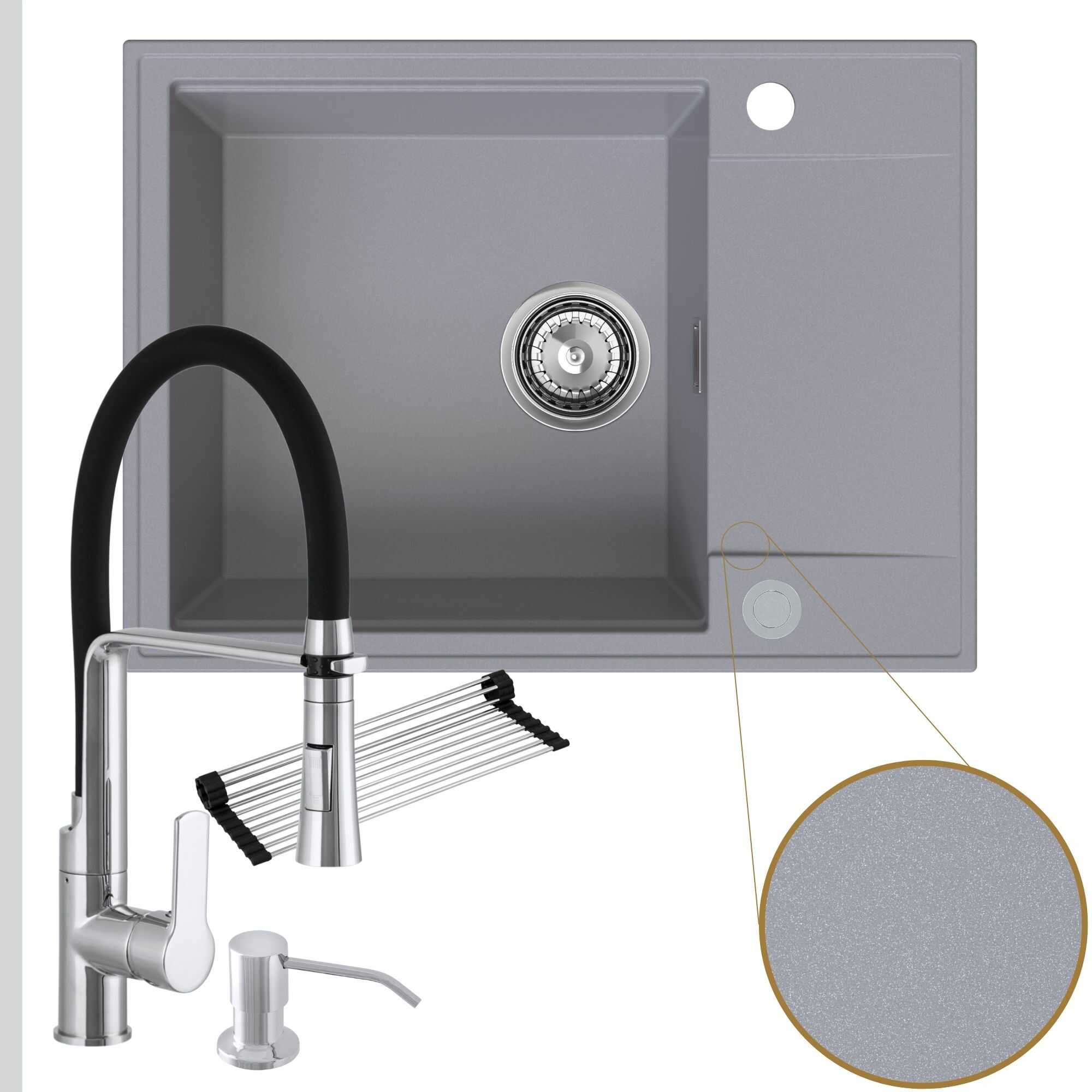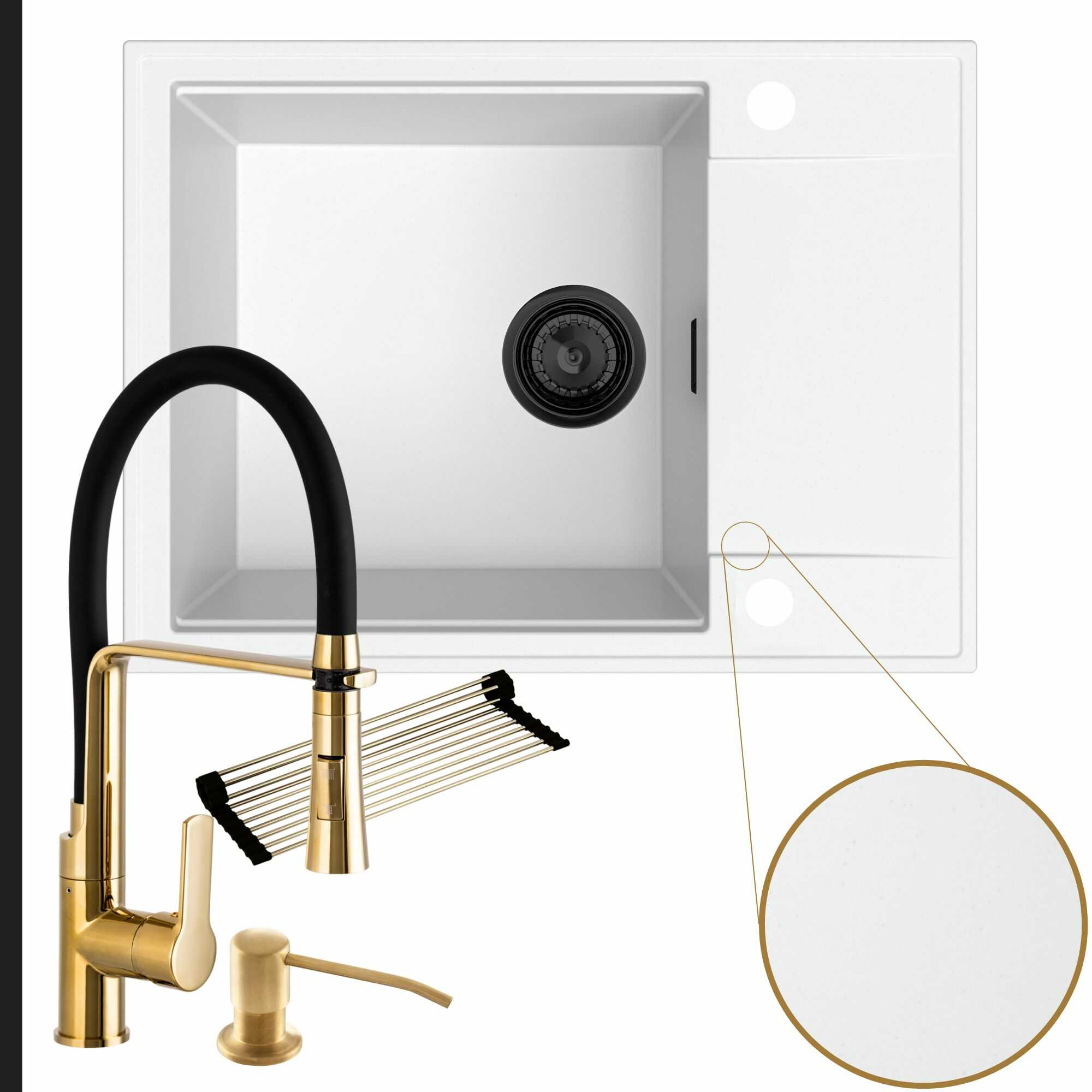 Komfortowa kuchnia: zlew + bateria + dozownik + syfon + mata