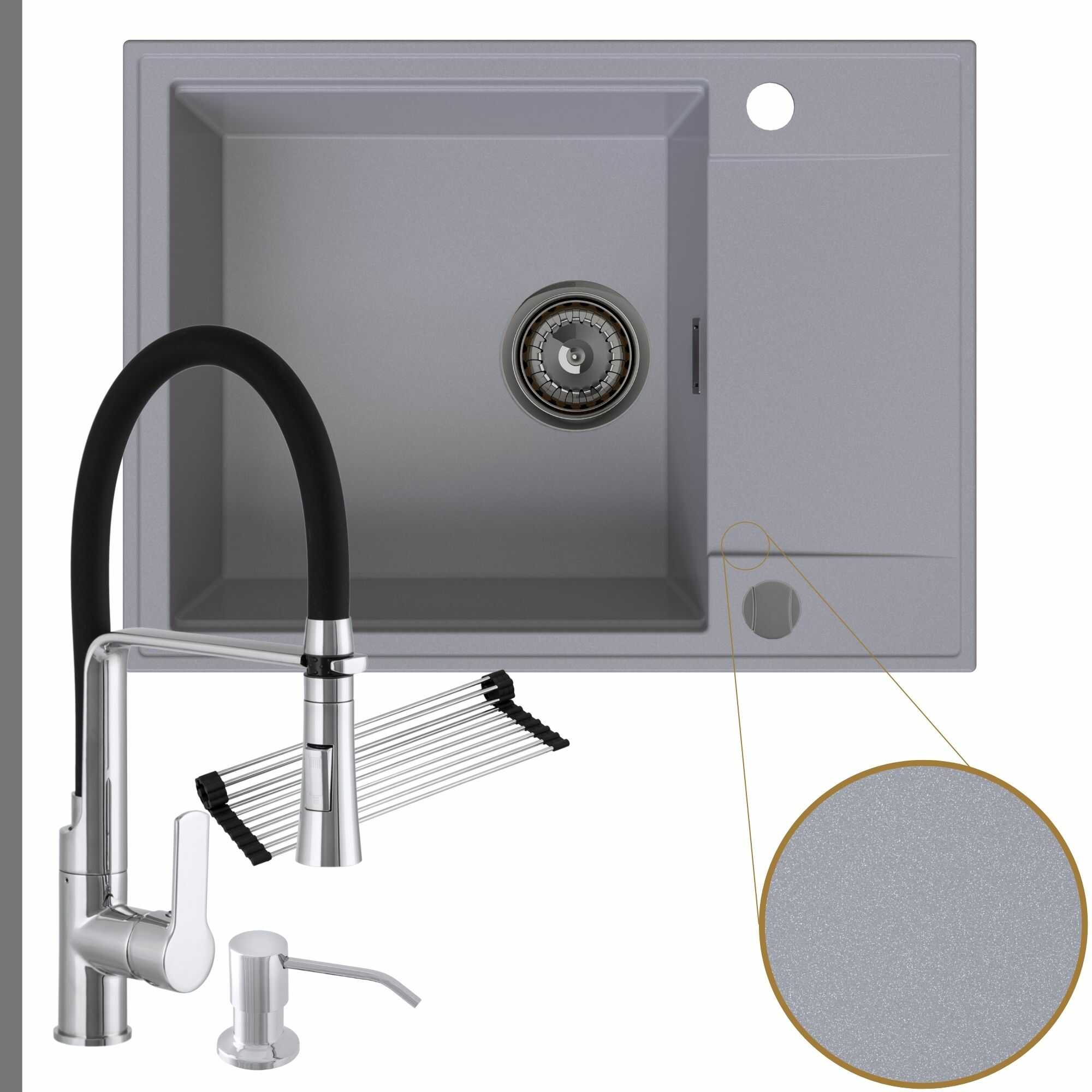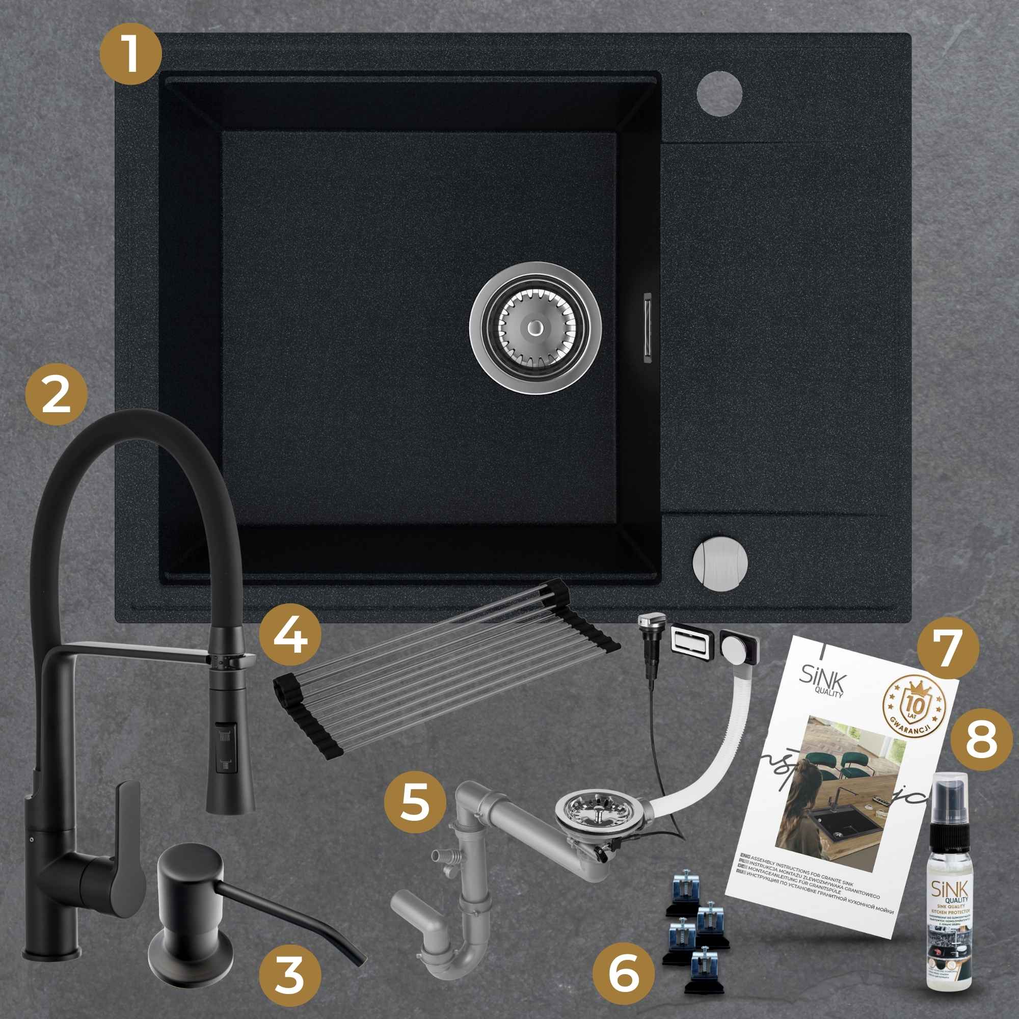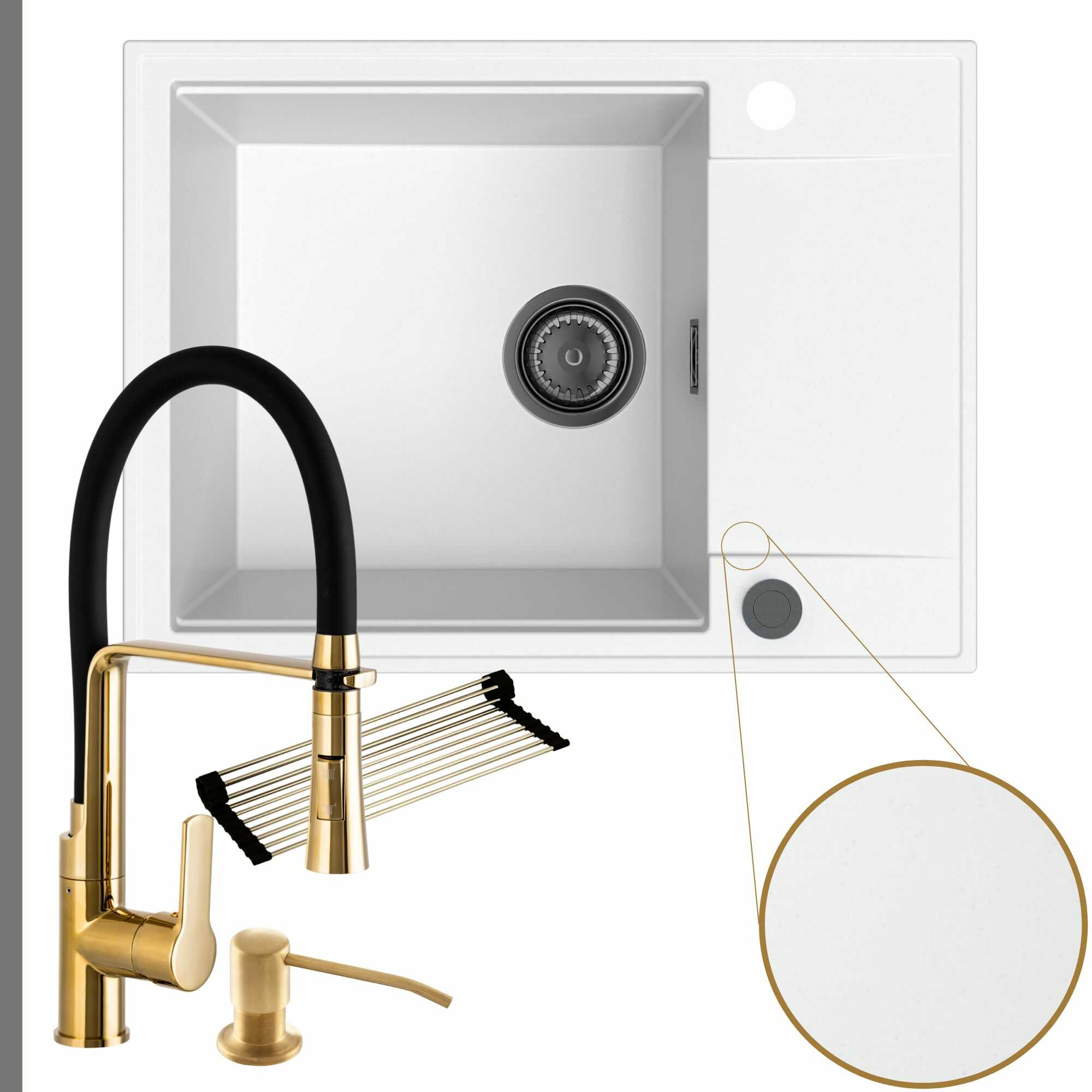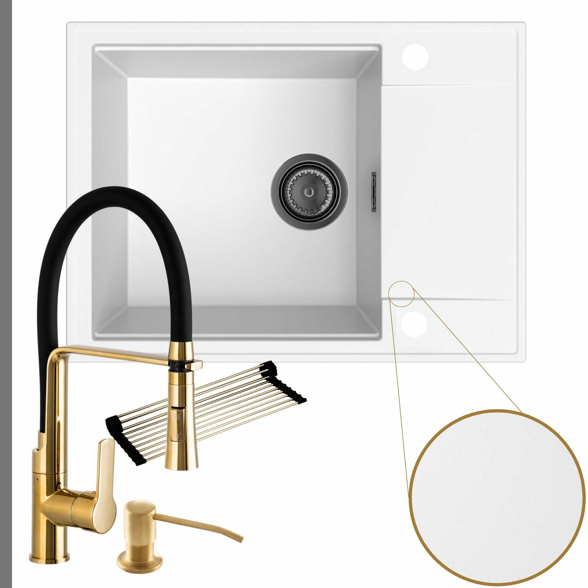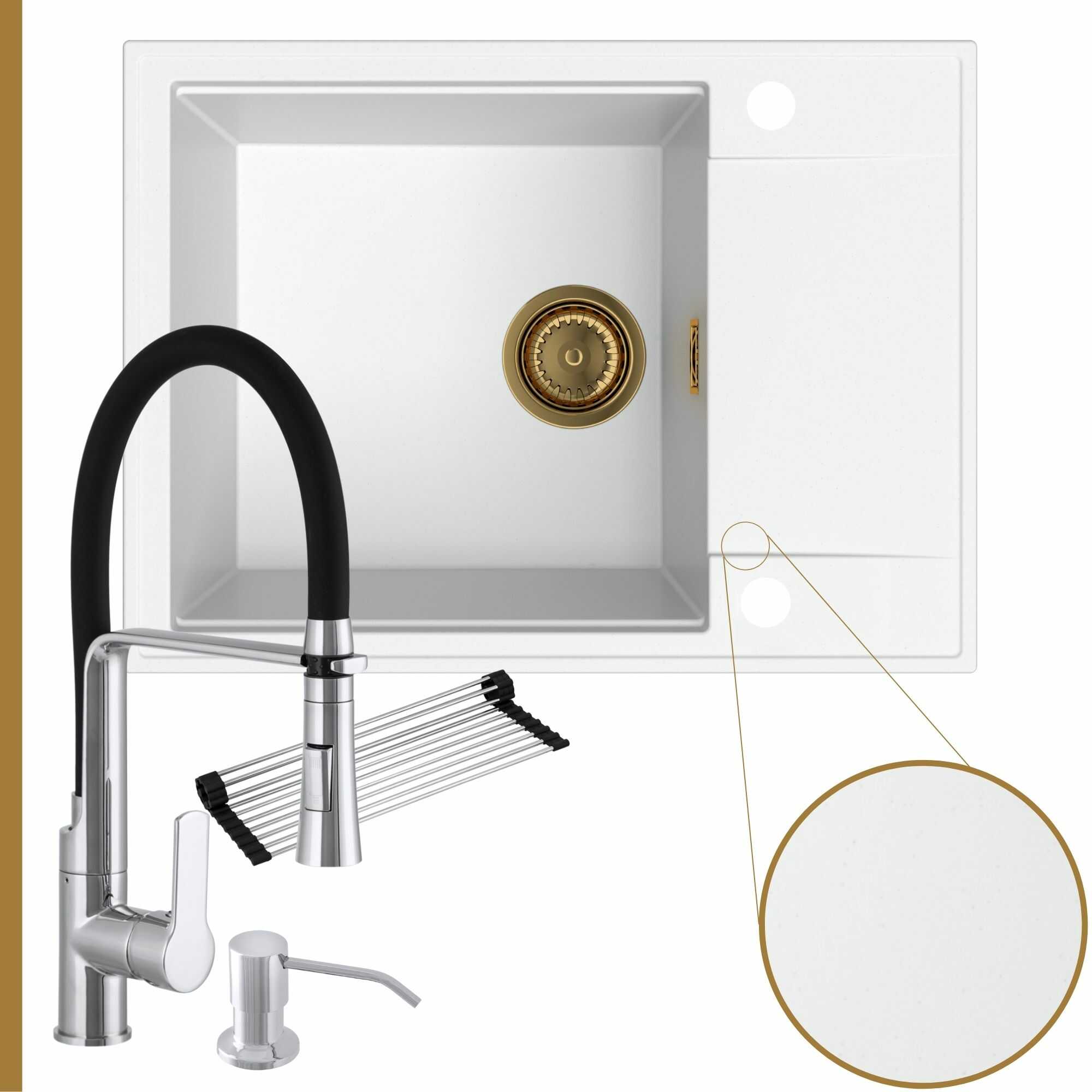 Komfortowa kuchnia: zlew + bateria + dozownik + syfon + mata