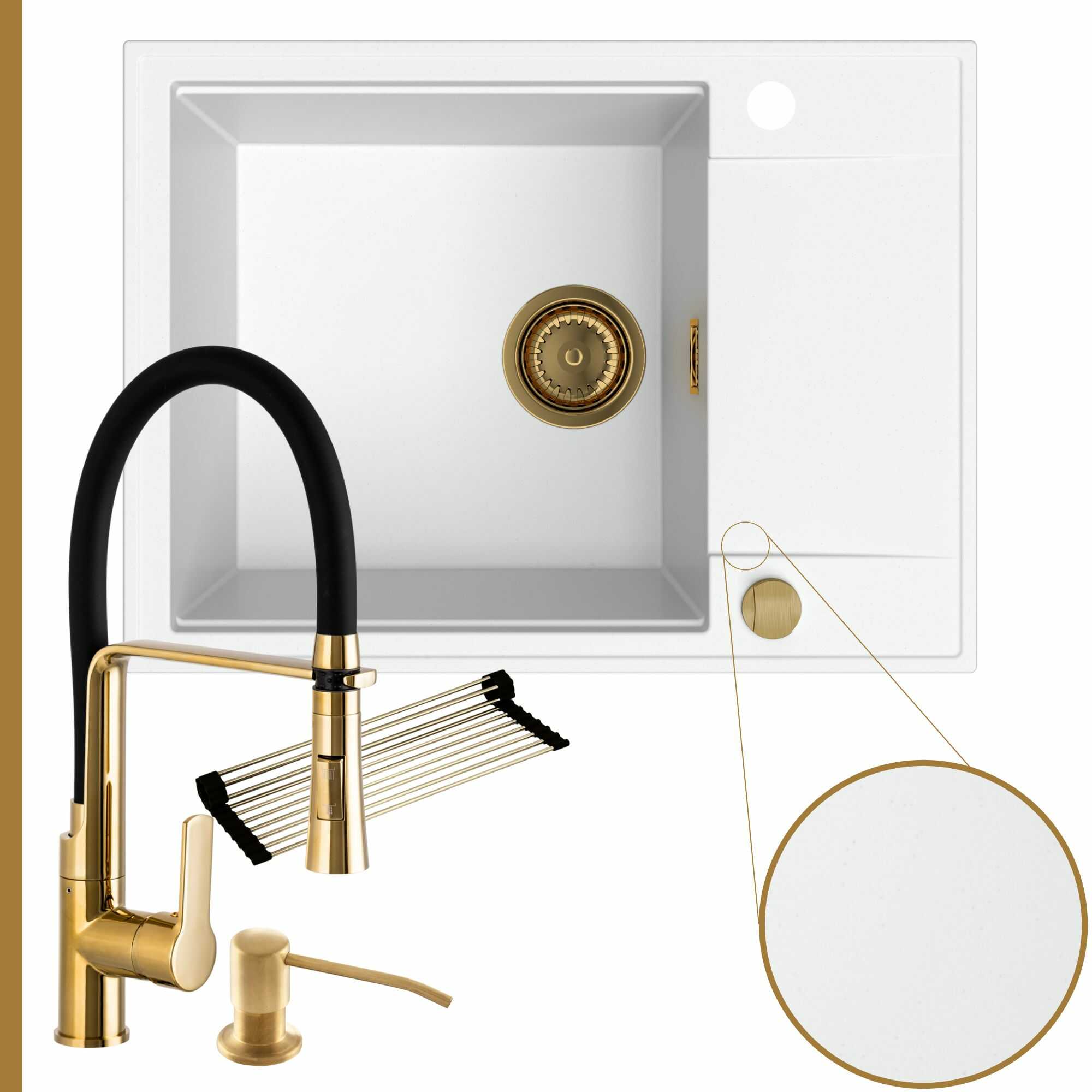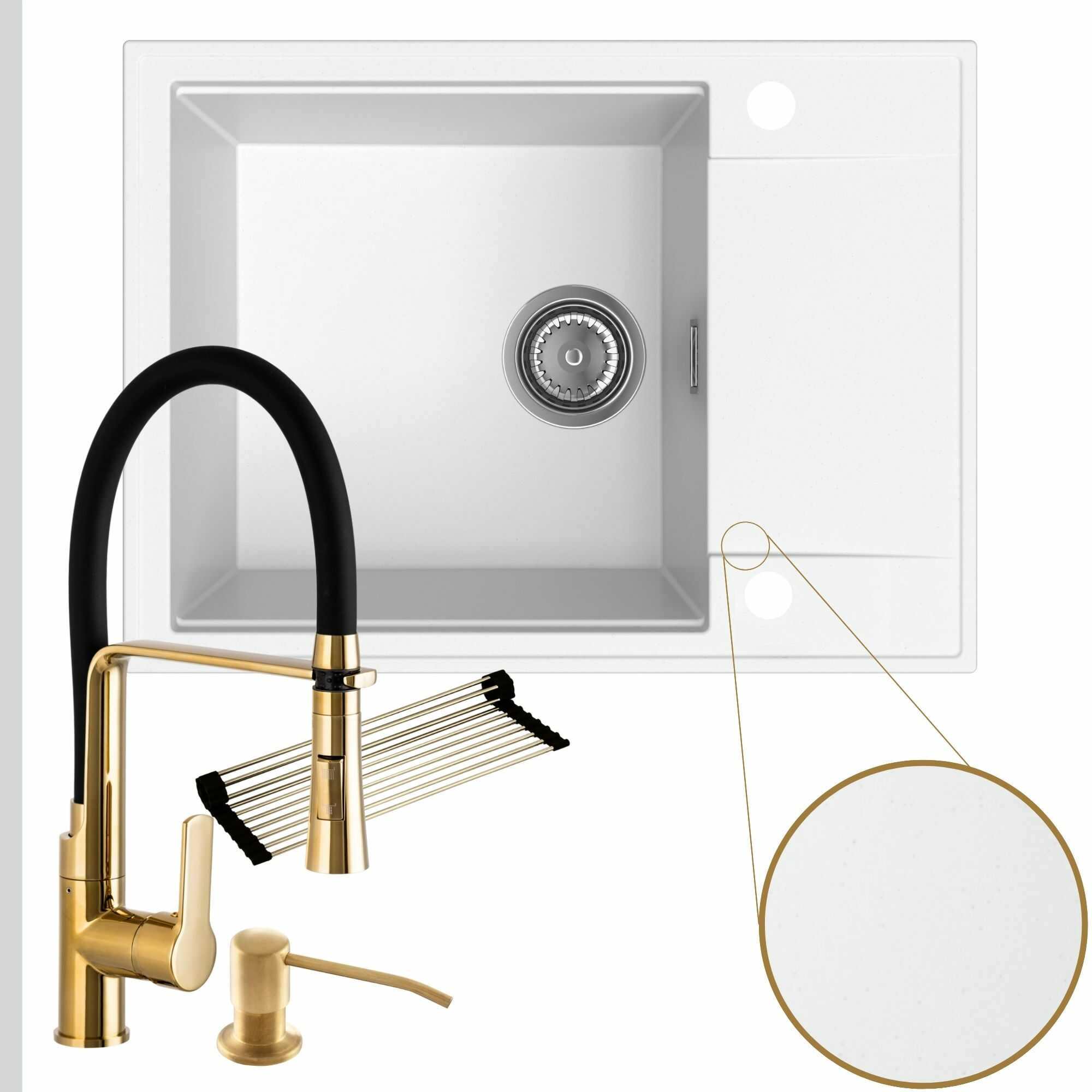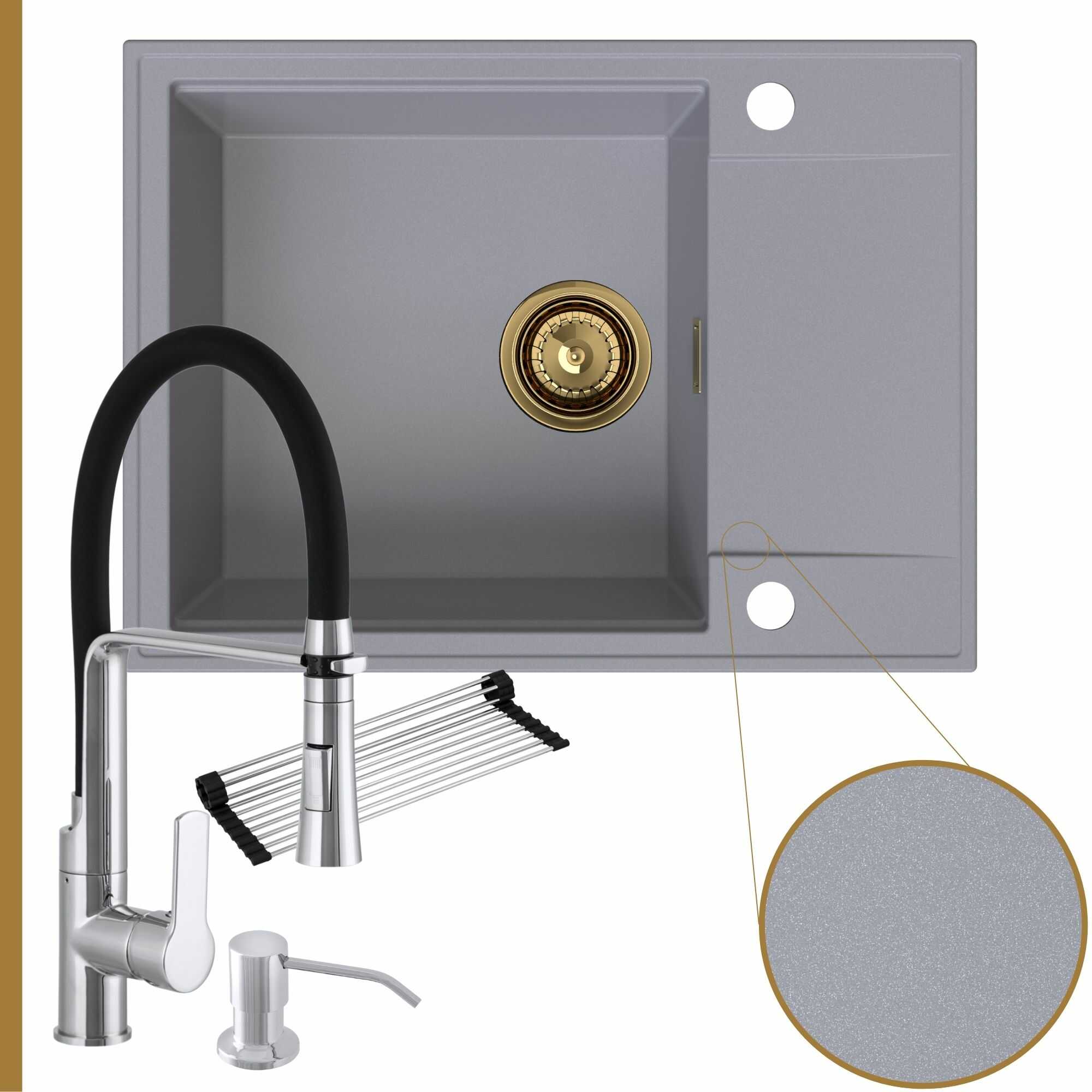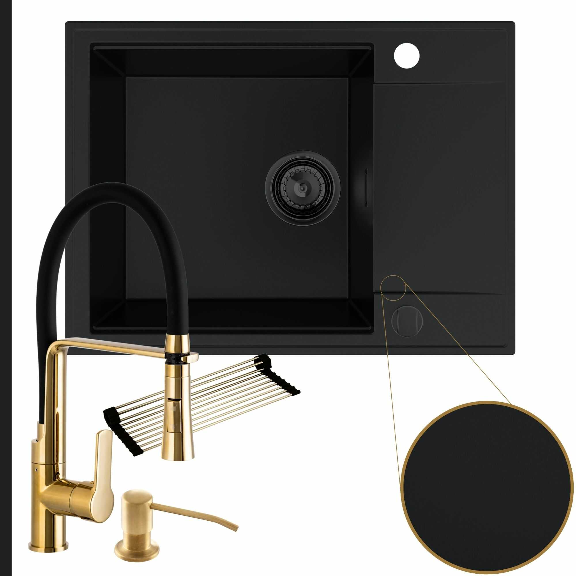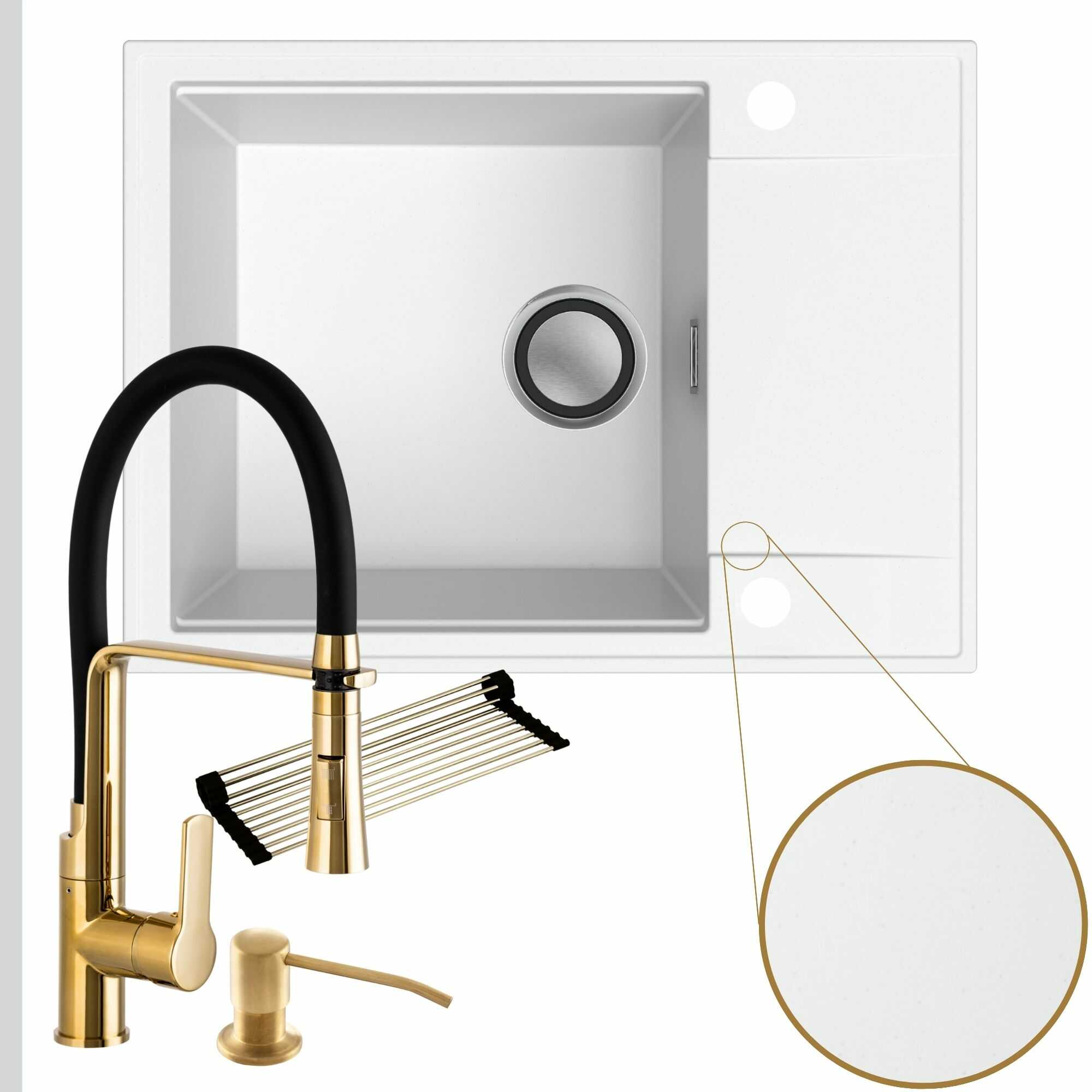Komfortowa kuchnia: zlew + bateria + dozownik + syfon + mata