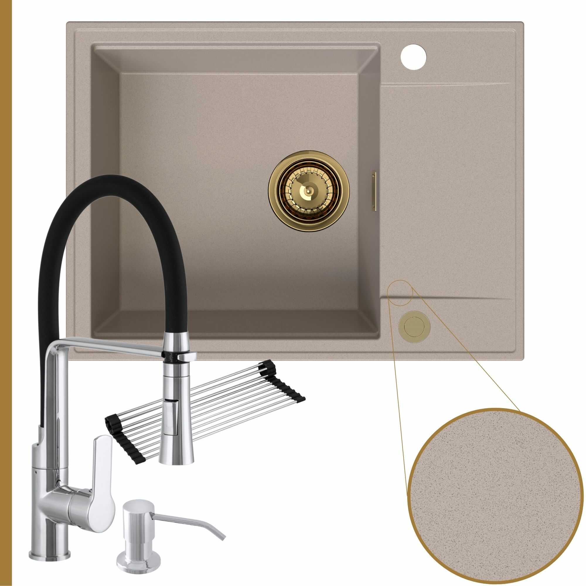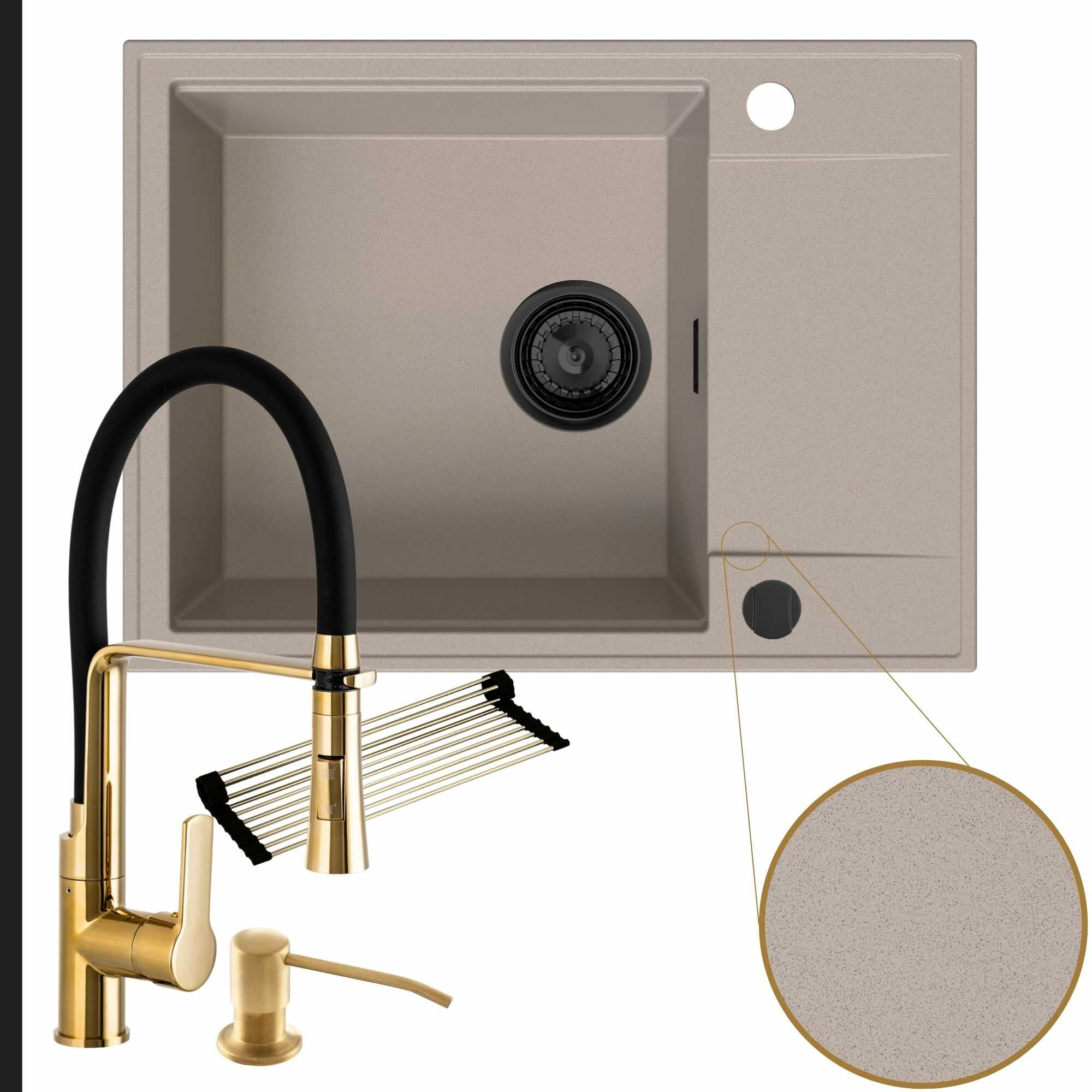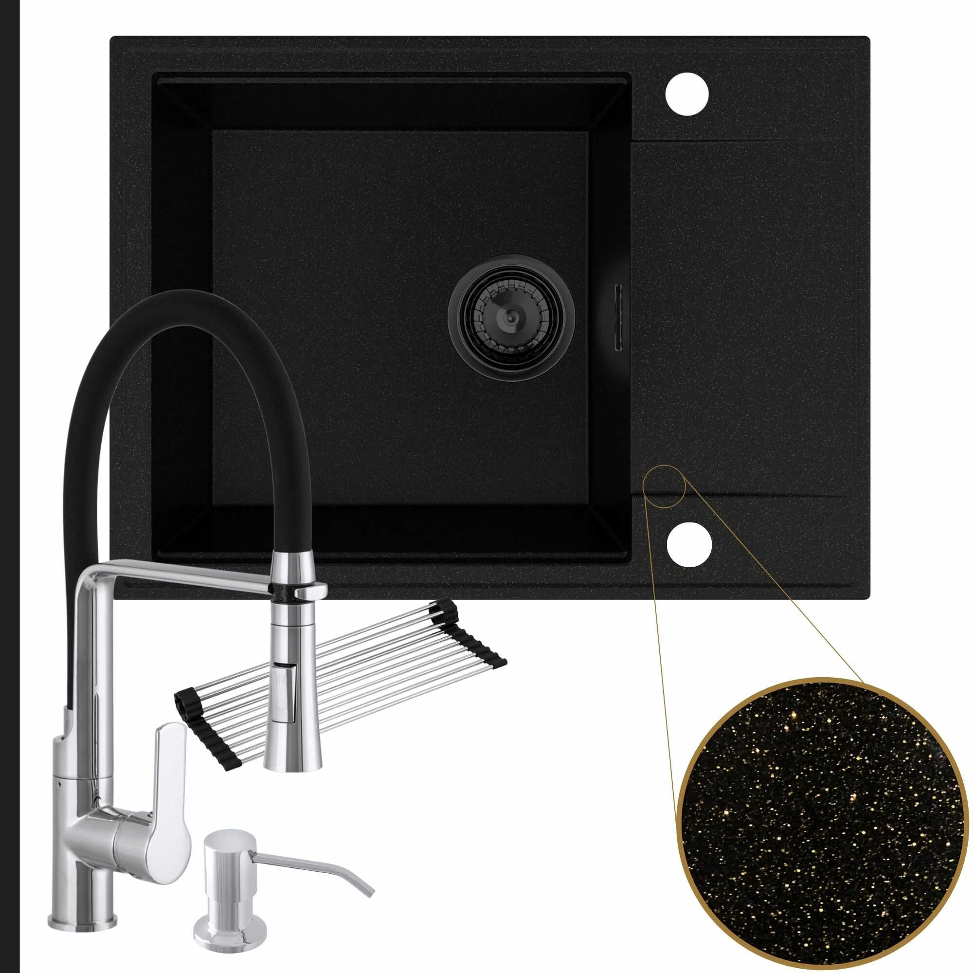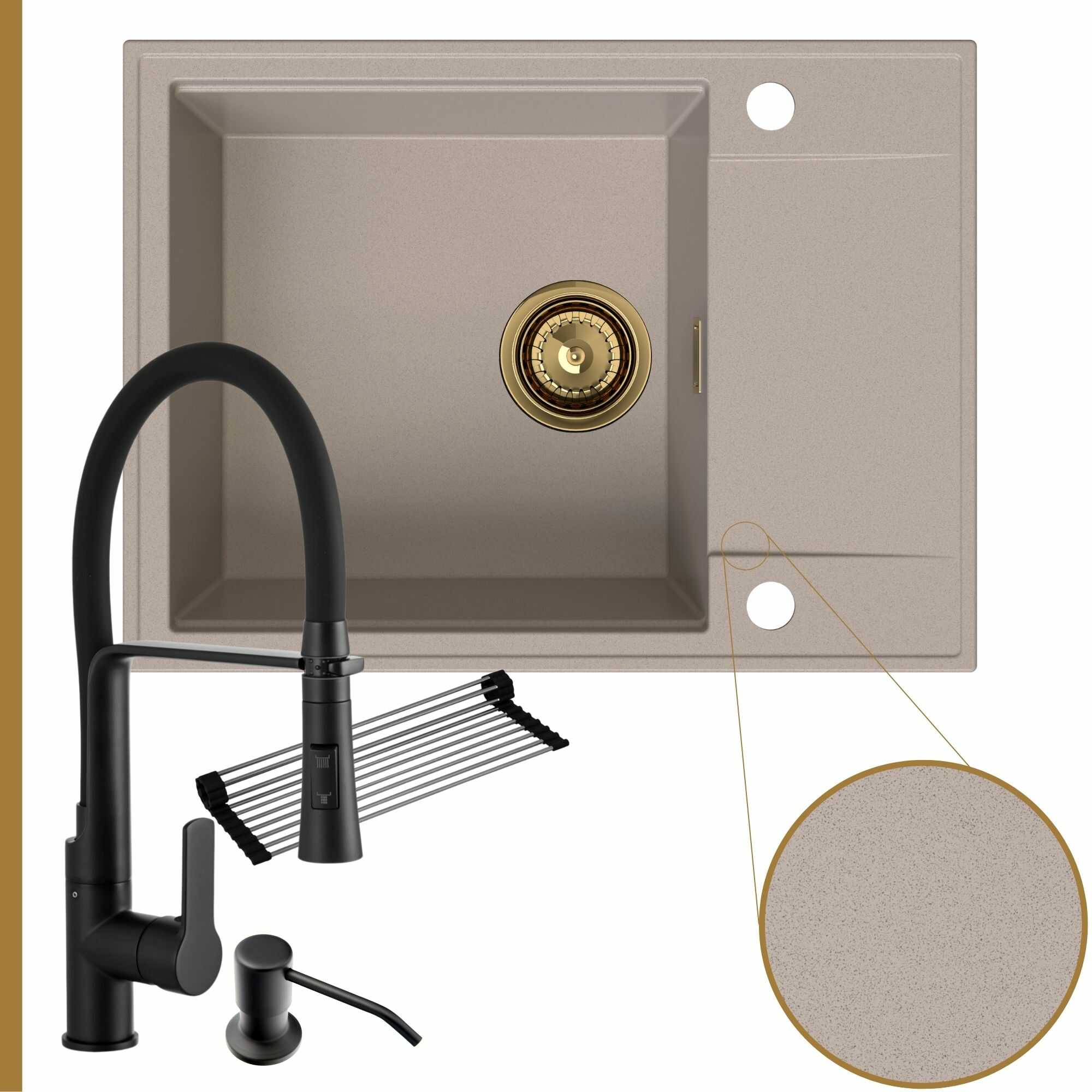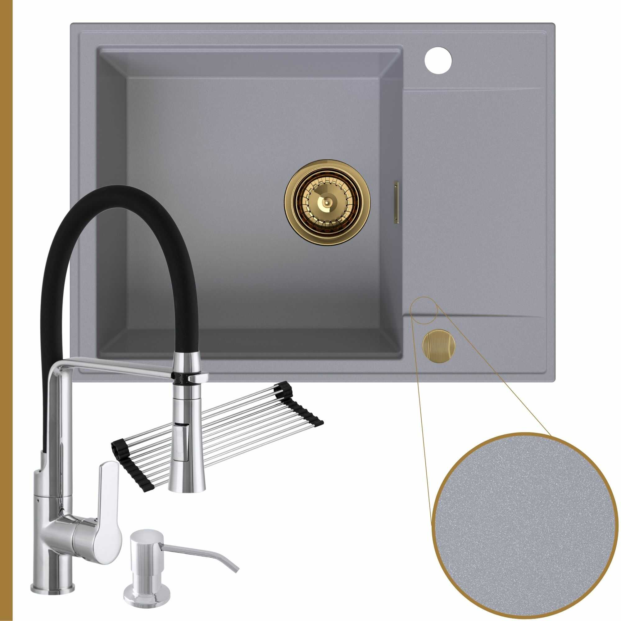 Komfortowa kuchnia: zlew + bateria + dozownik + syfon + mata