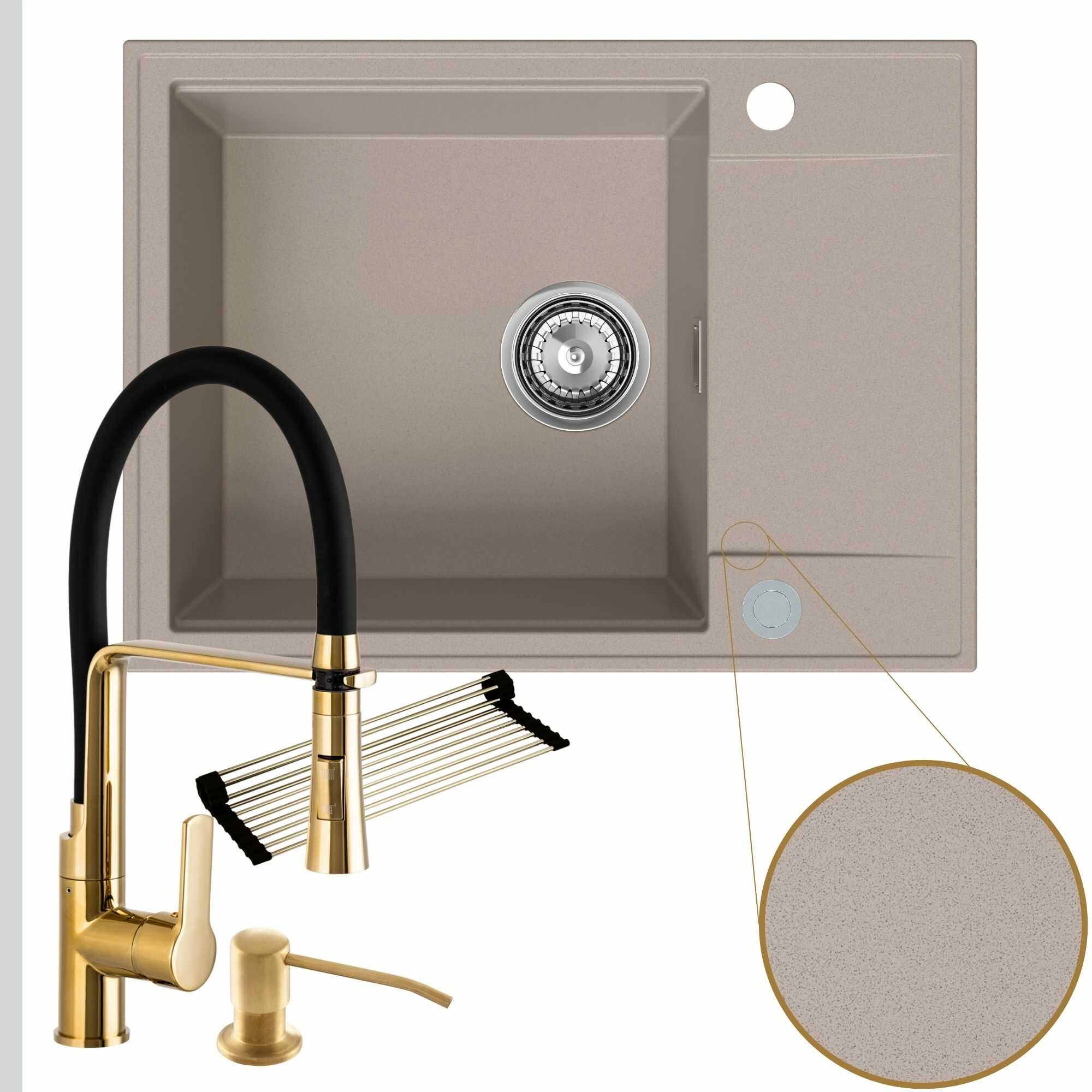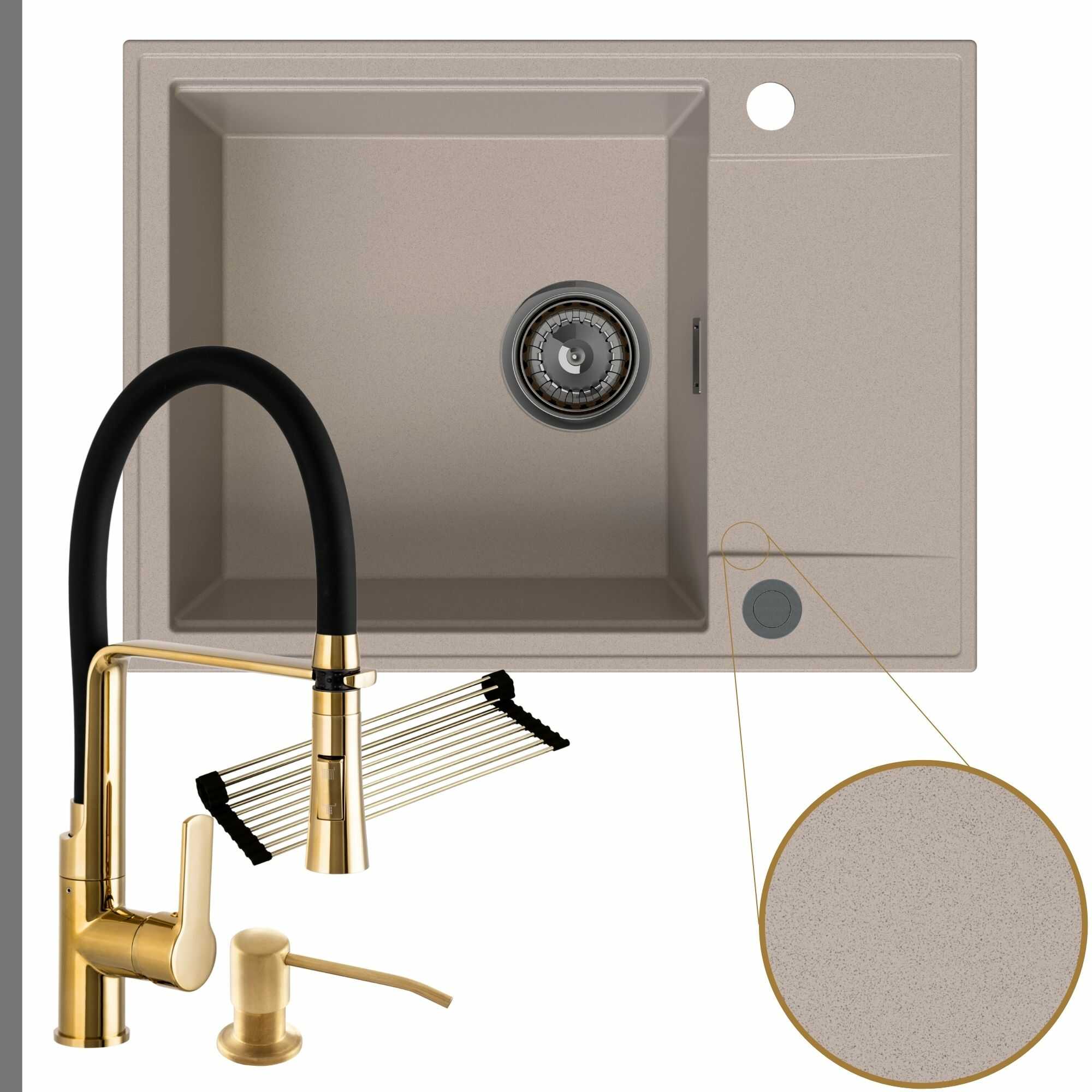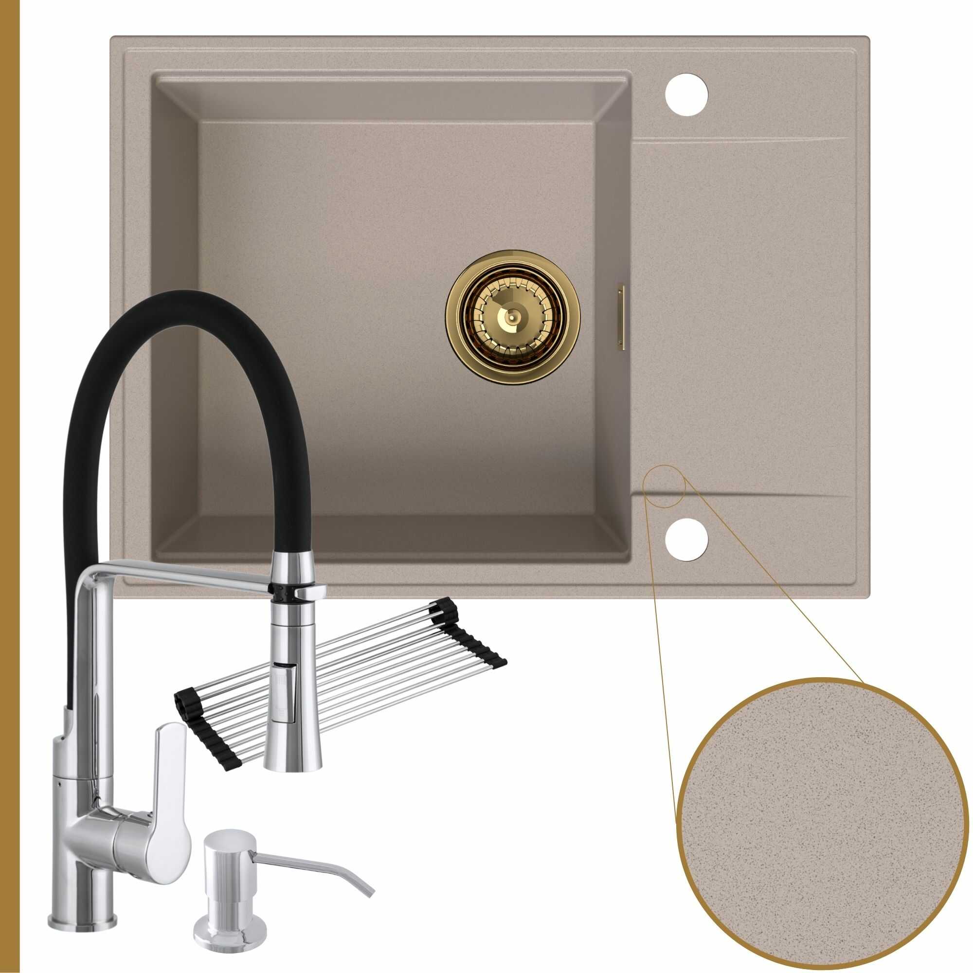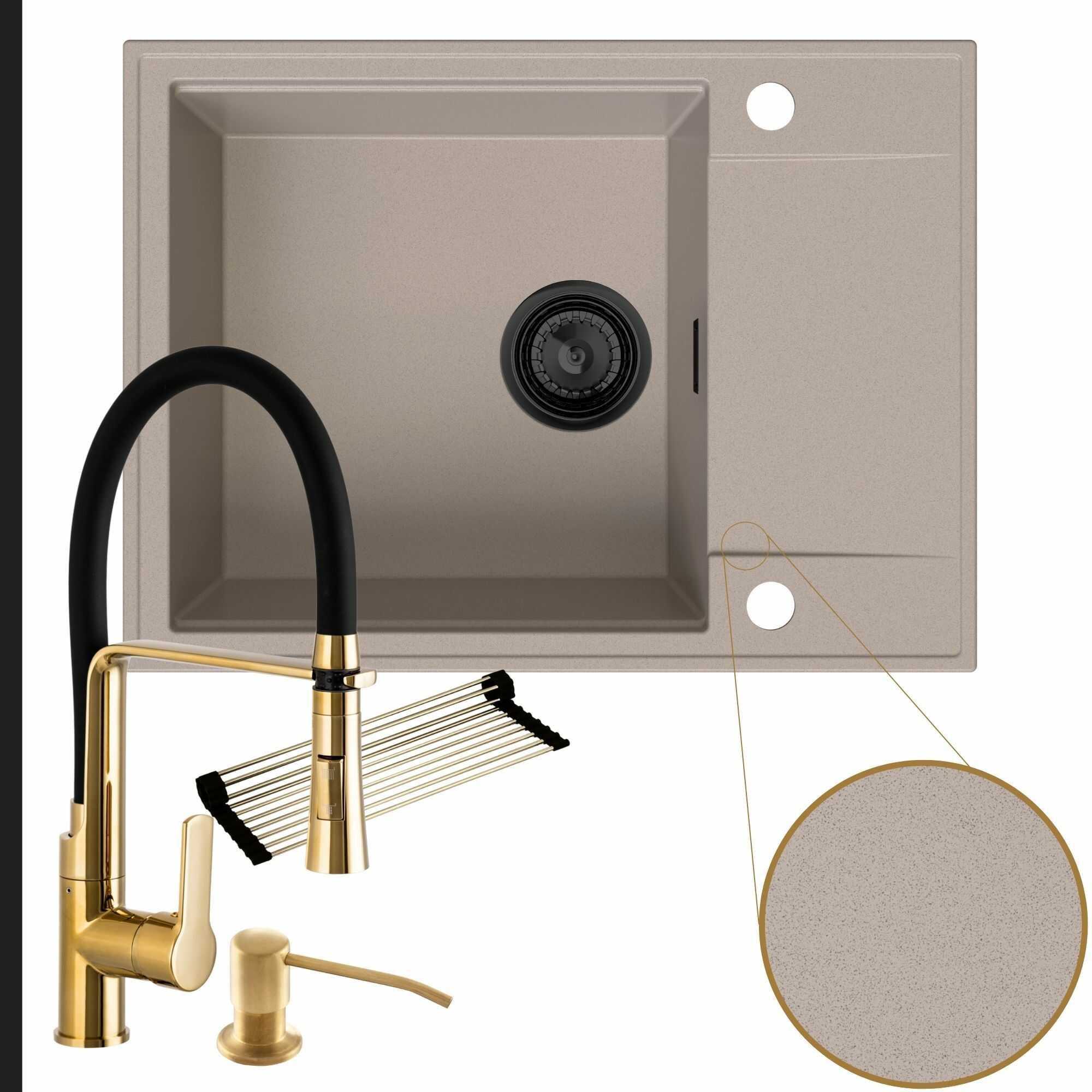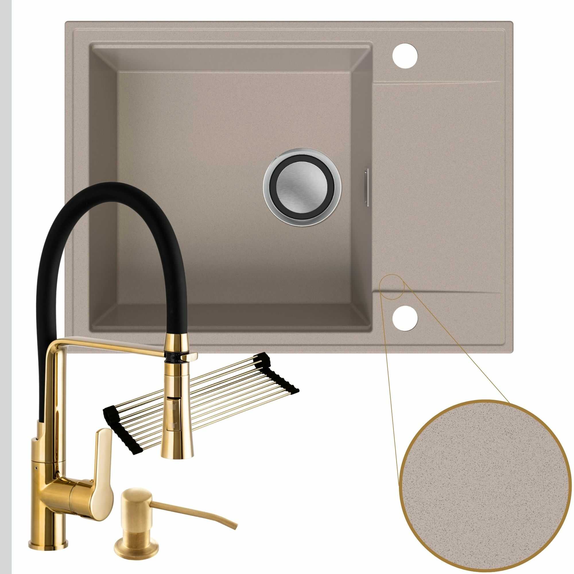 Komfortowa kuchnia: zlew + bateria + dozownik + syfon + mata