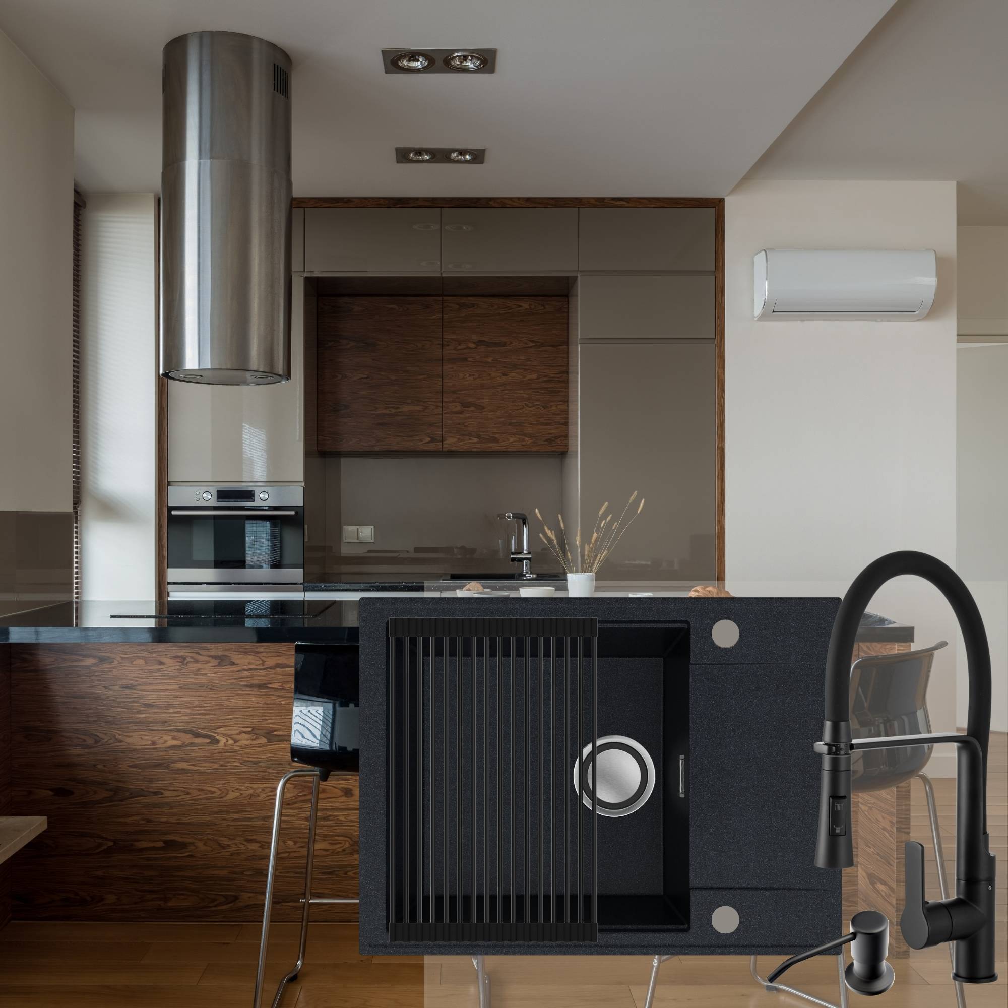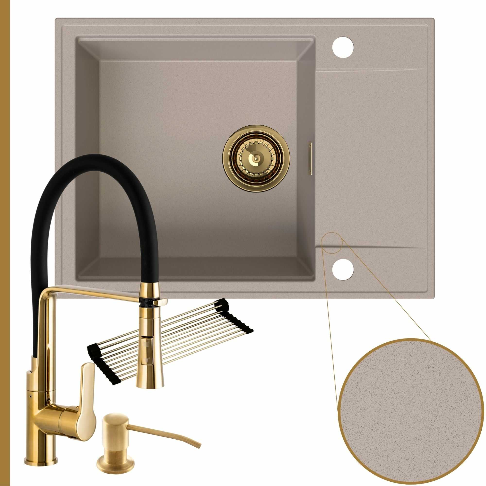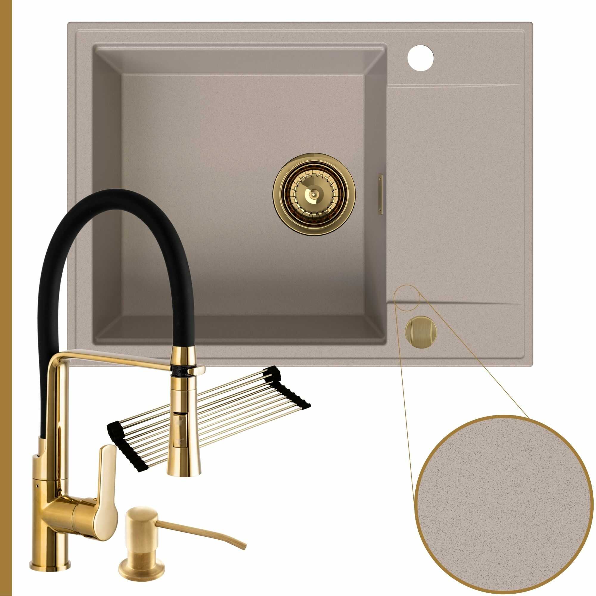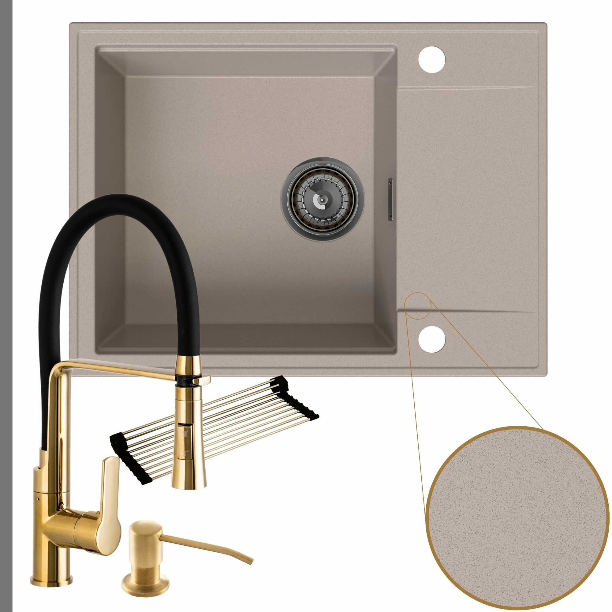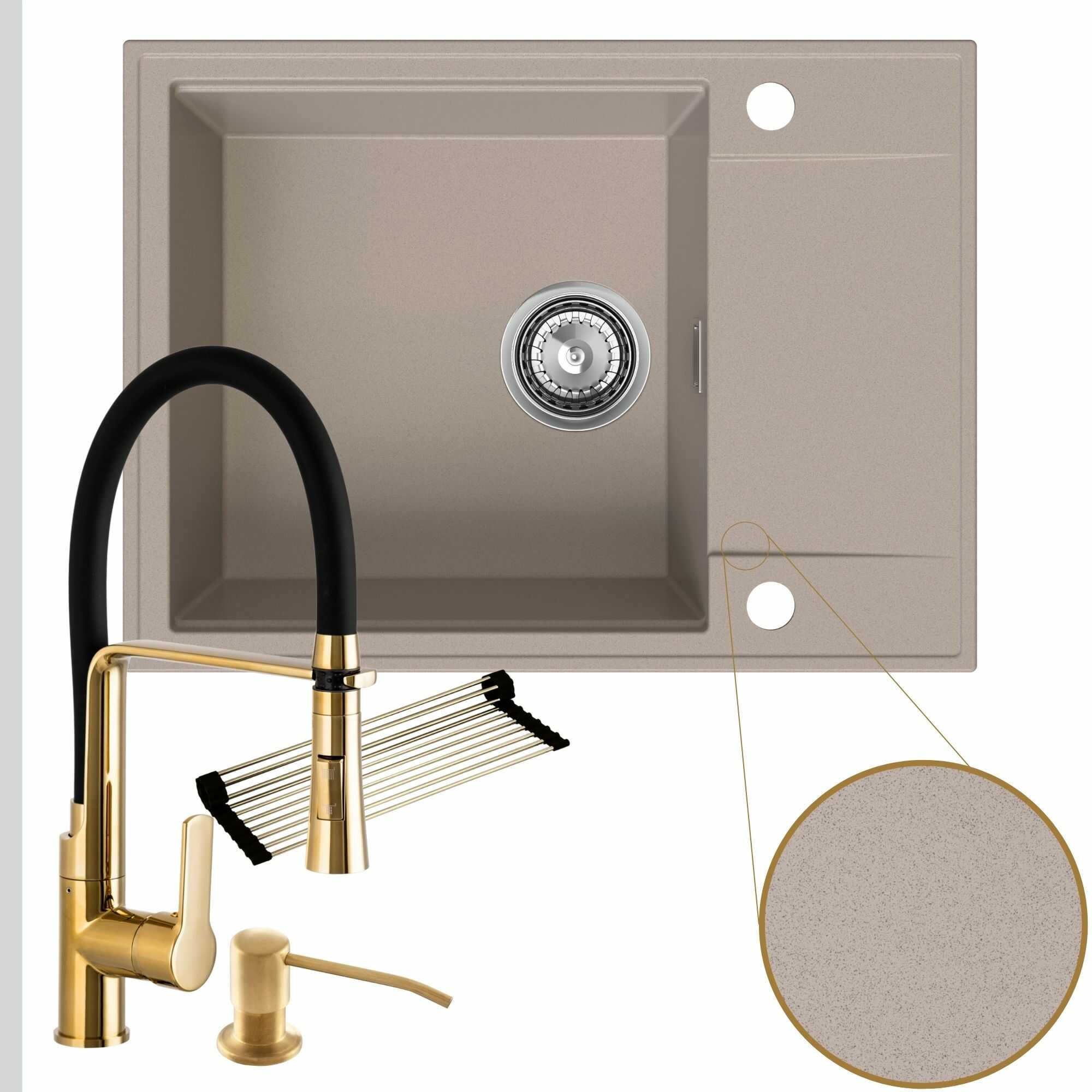 Komfortowa kuchnia: zlew + bateria + dozownik + syfon + mata
