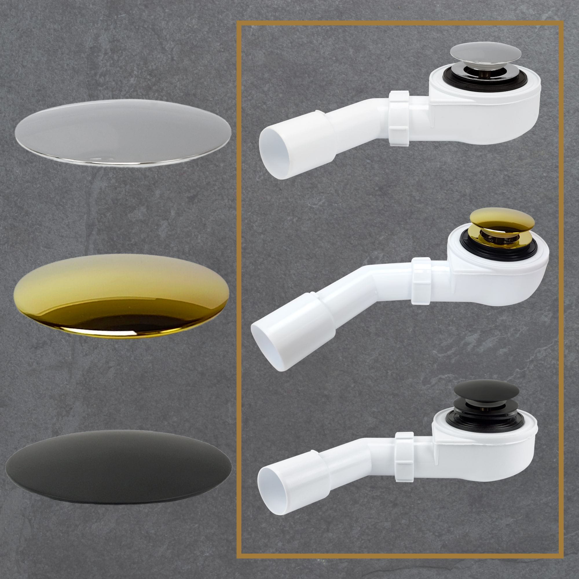 Dostępny w trzech modnych kolorach – czarny mat, srebrny i złoty, pozwala idealnie dopasować go do armatury łazienkowej. Czyszczenie od góry ułatwia konserwację, a korek klik-klak zapewnia wygodę użytkowania.