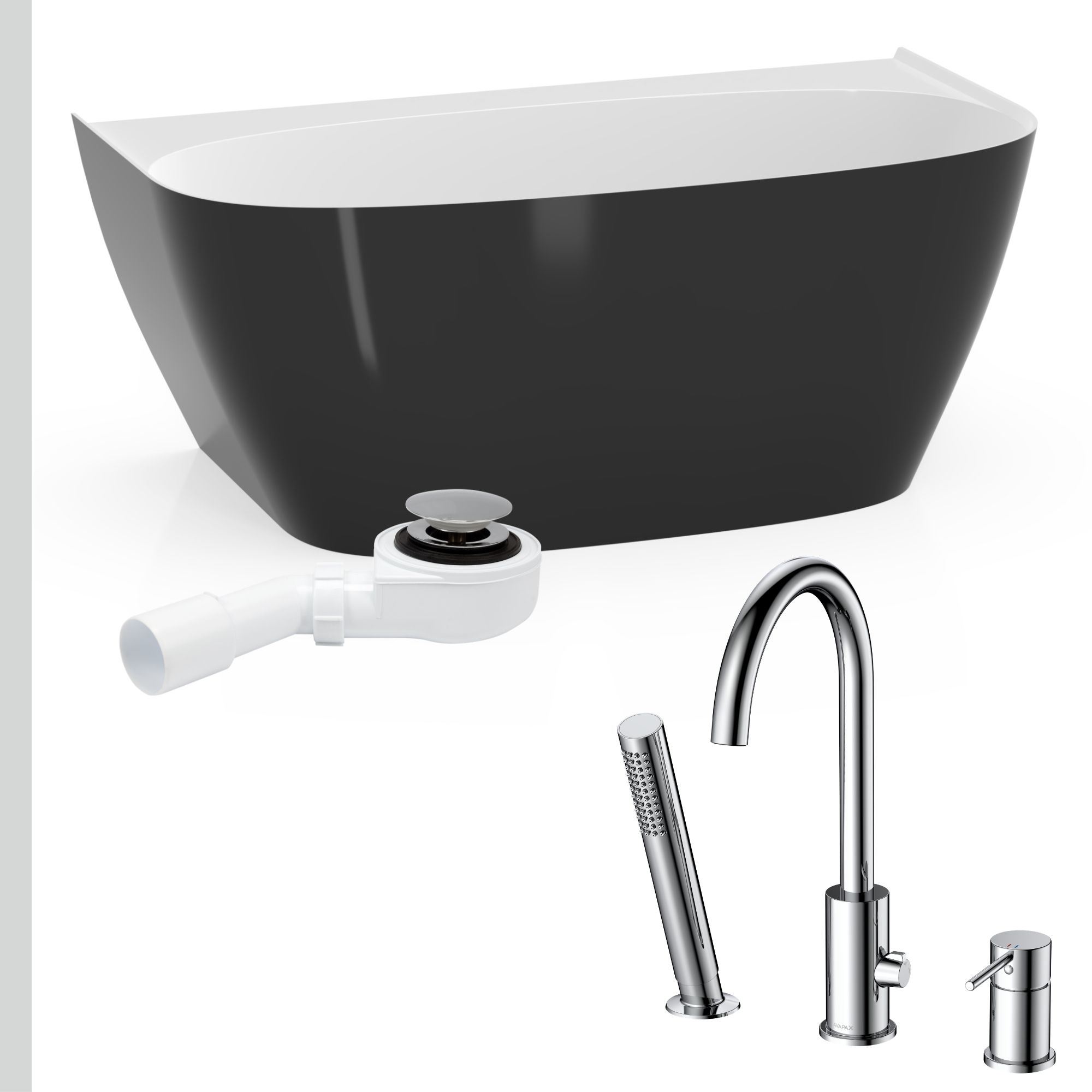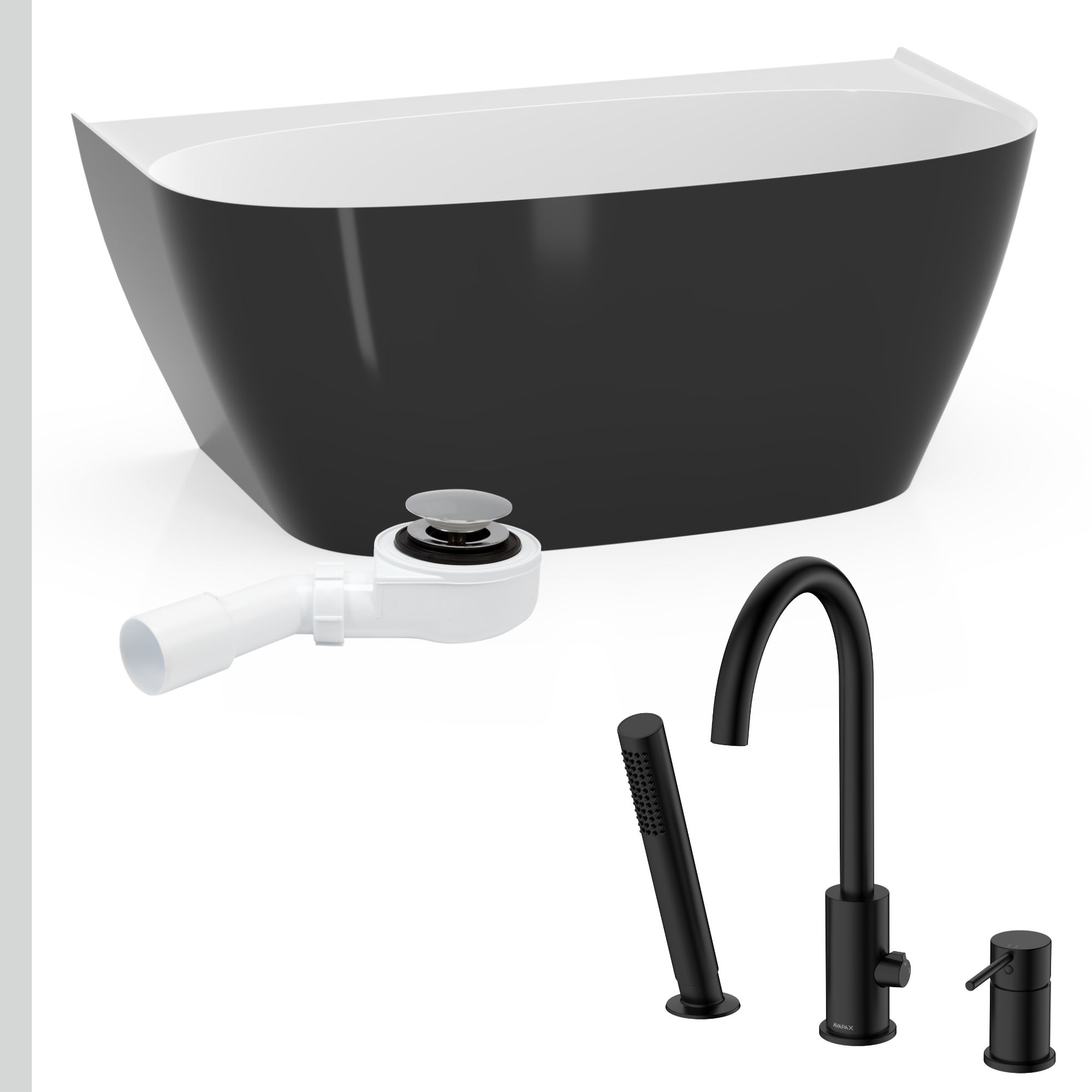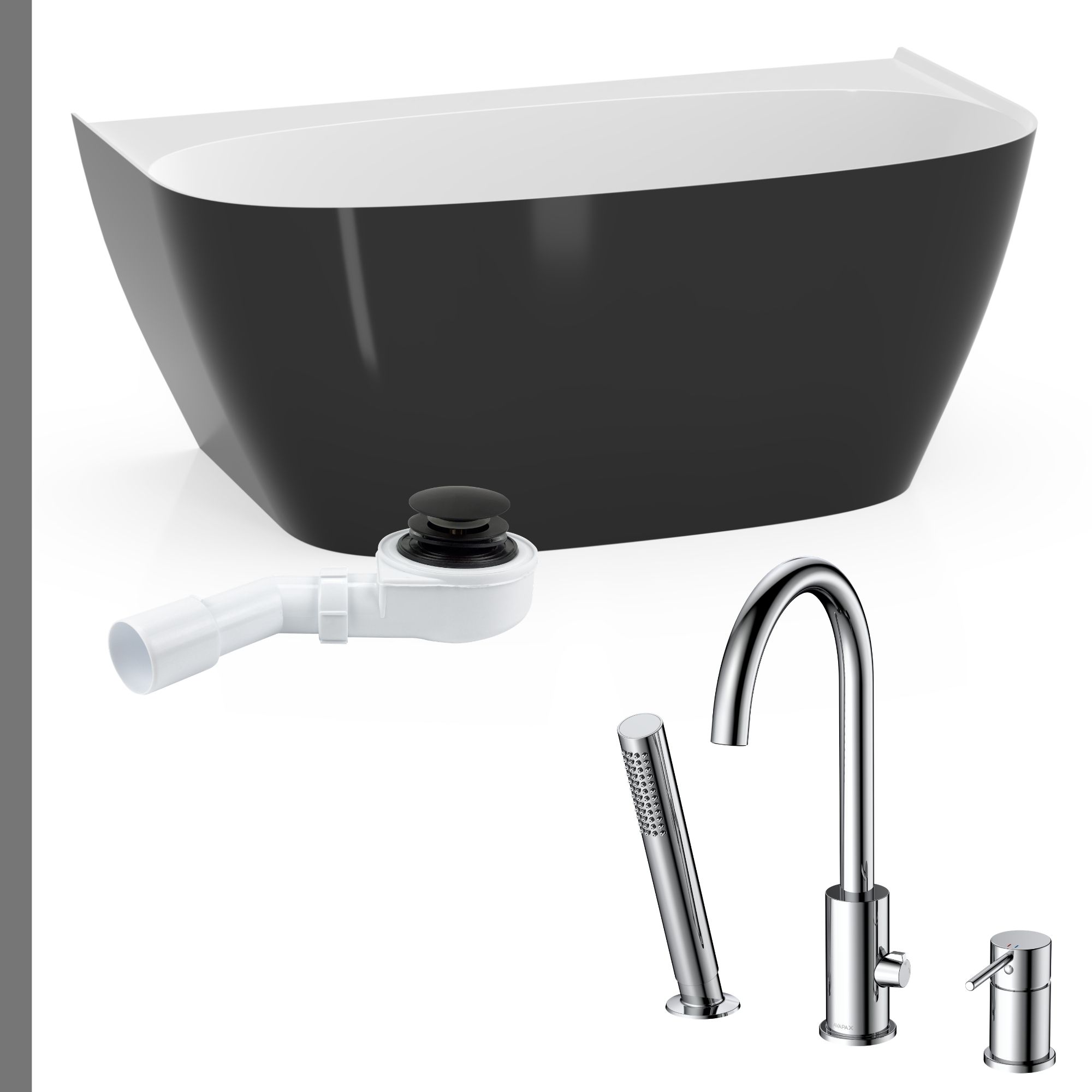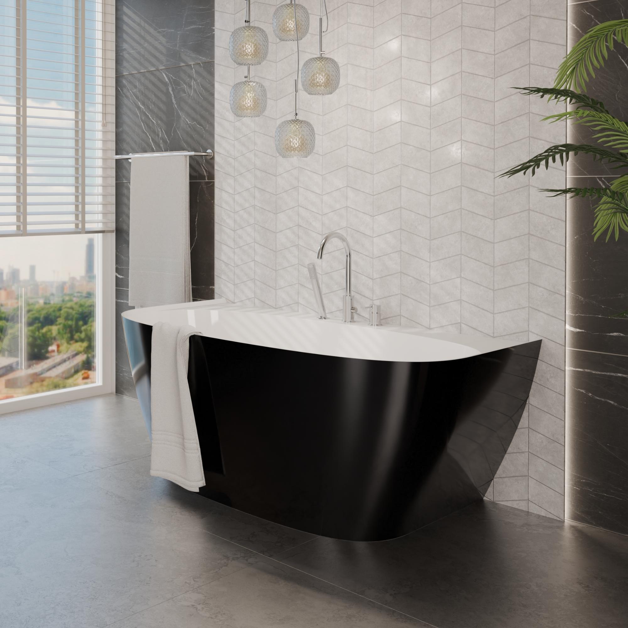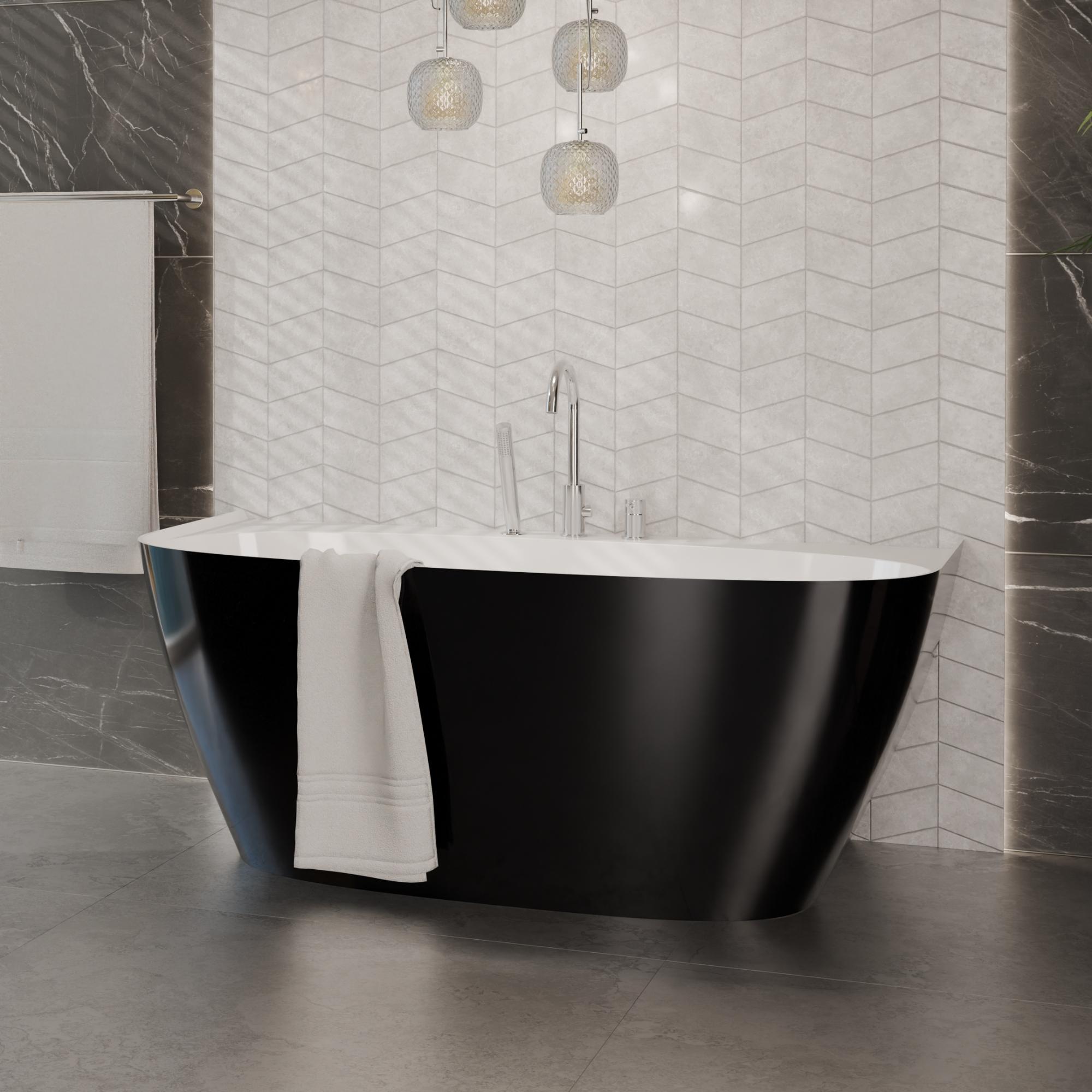 Łazienka kontrastu: Wanna Ela 150 czarno-biała + syfon + bateria wannowa 3-otworowa Ultimate