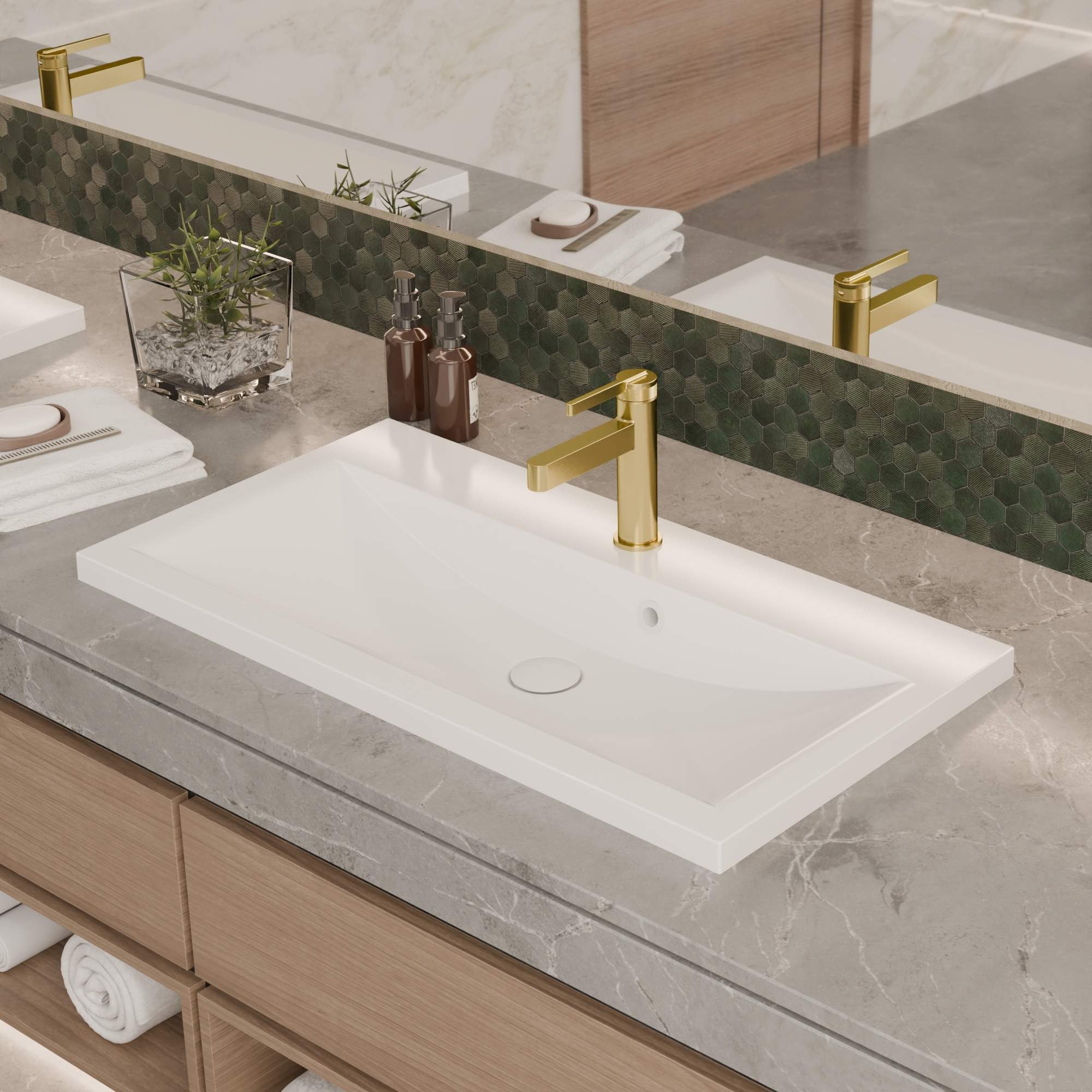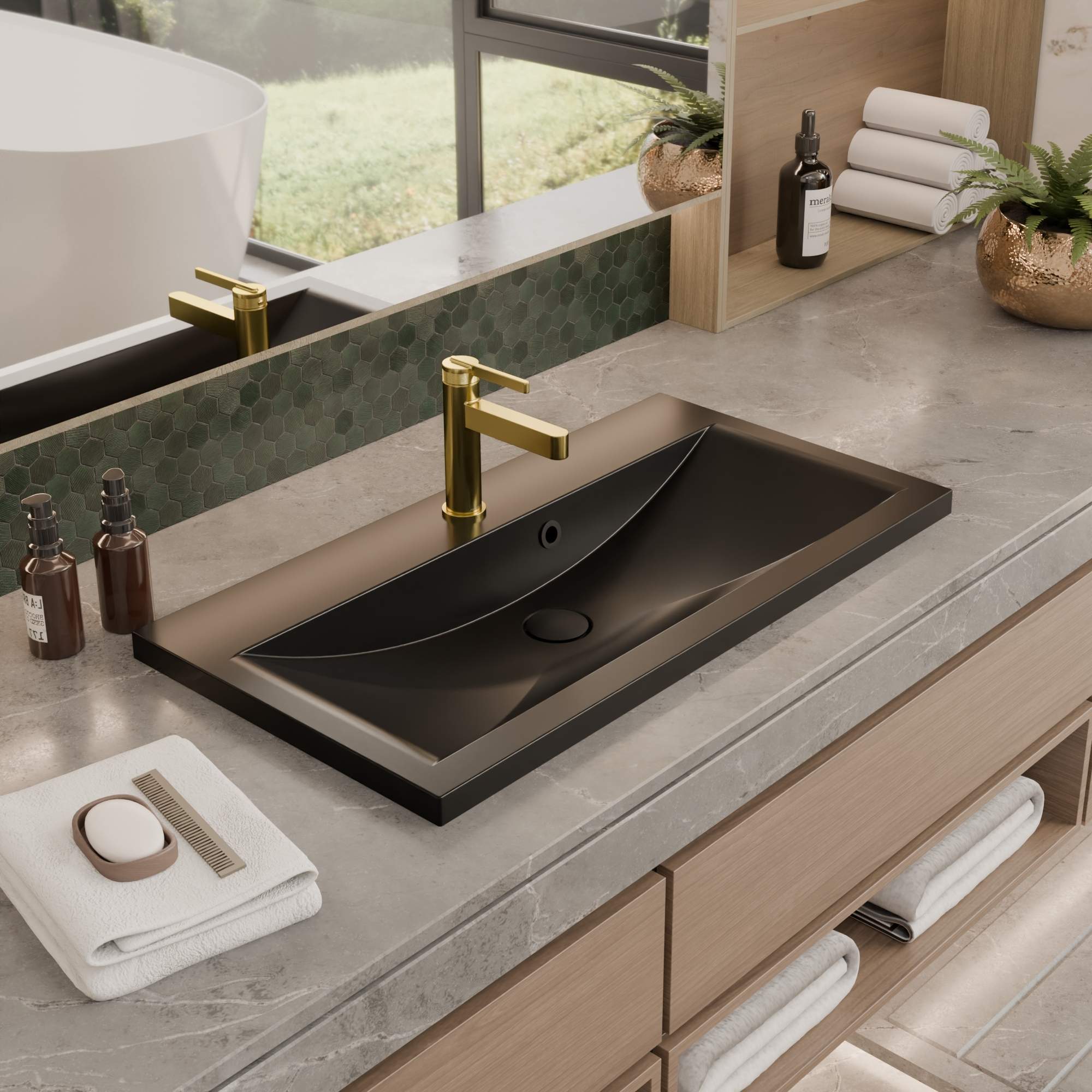 Wersja brushed gold to idealny wybór do wnętrz premium, minimalistycznych oraz glamour. Jej szlachetne, satynowe wykończenie pięknie komponuje się z kamieniem, szkłem i matową czernią, tworząc luksusowy, hotelowy klimat w Twojej łazience.