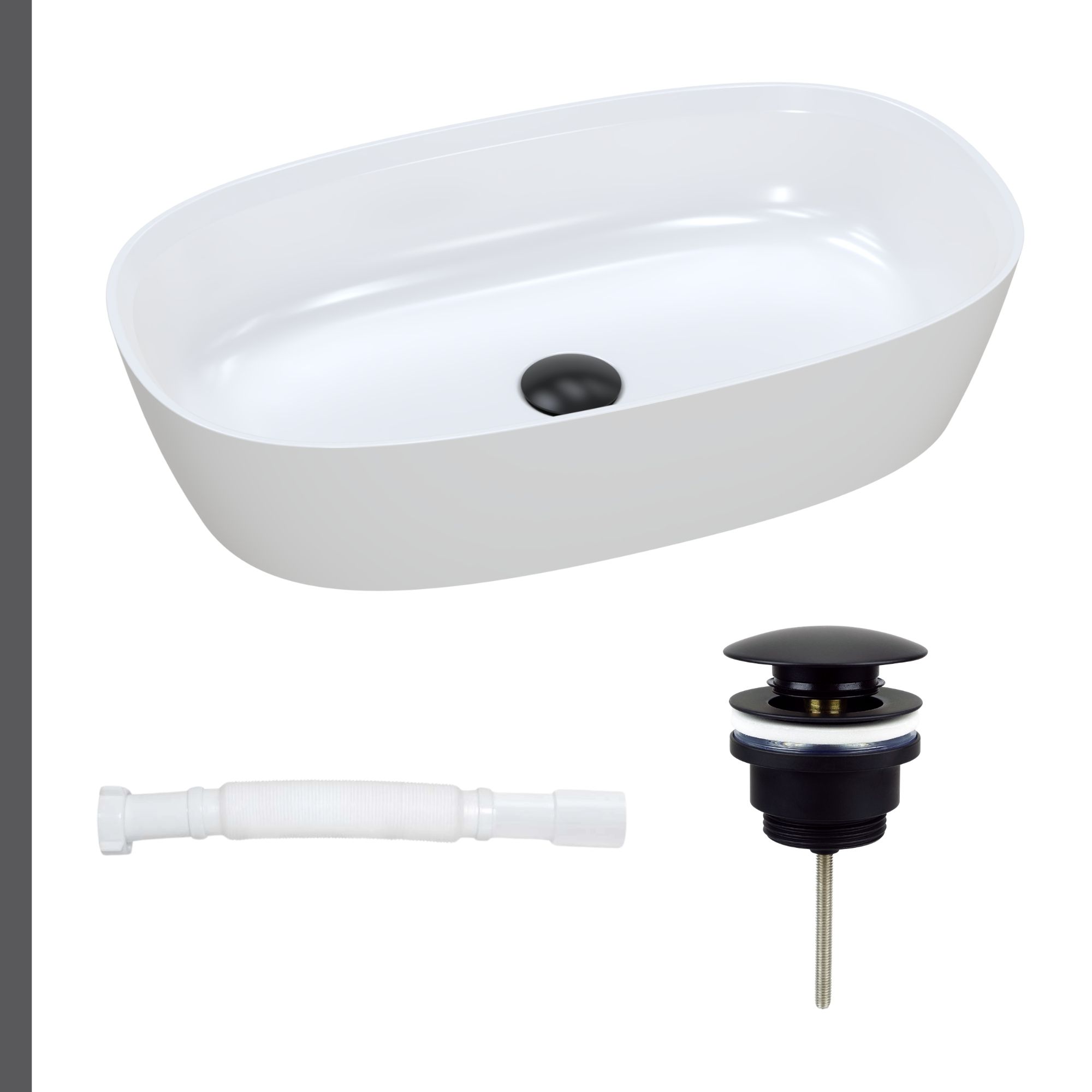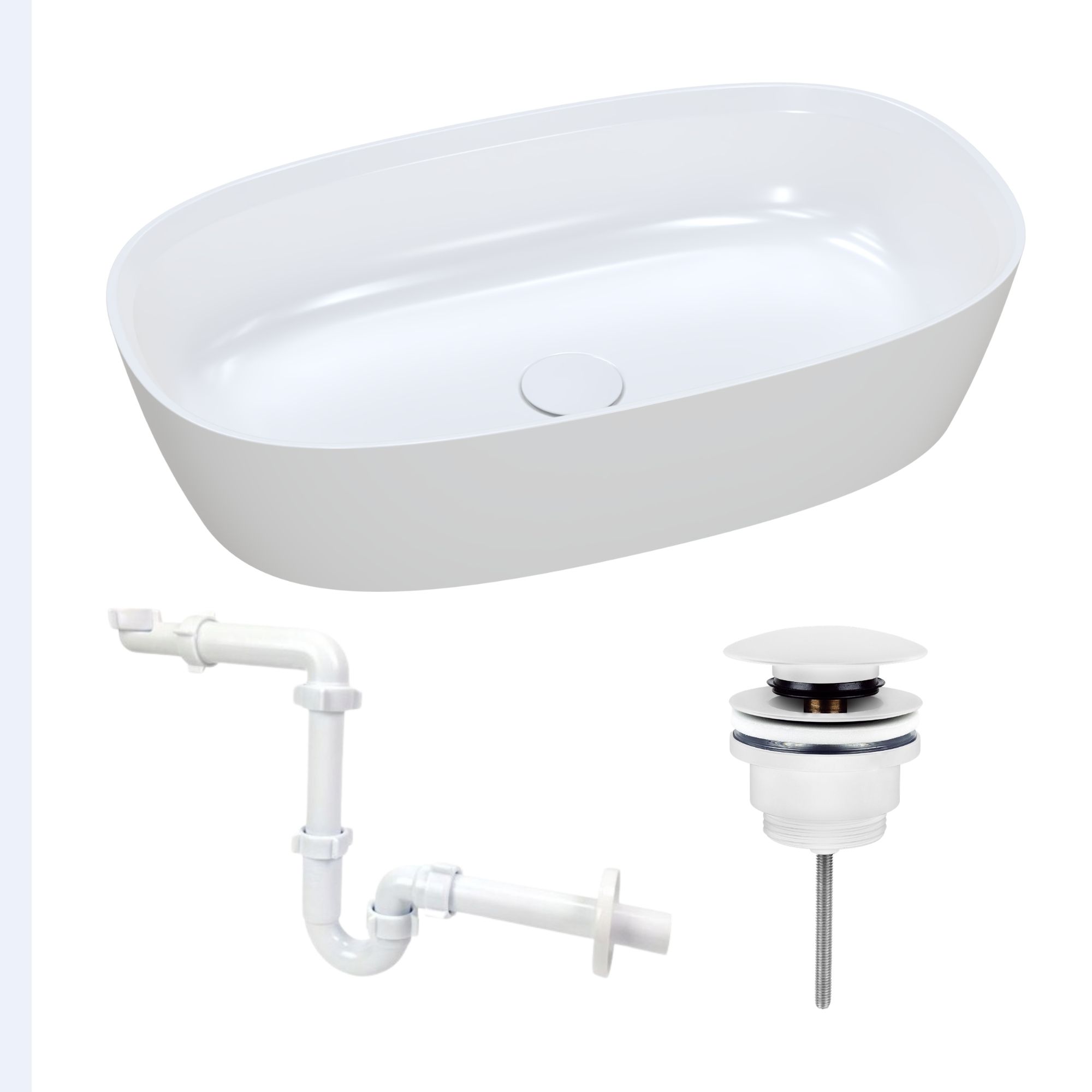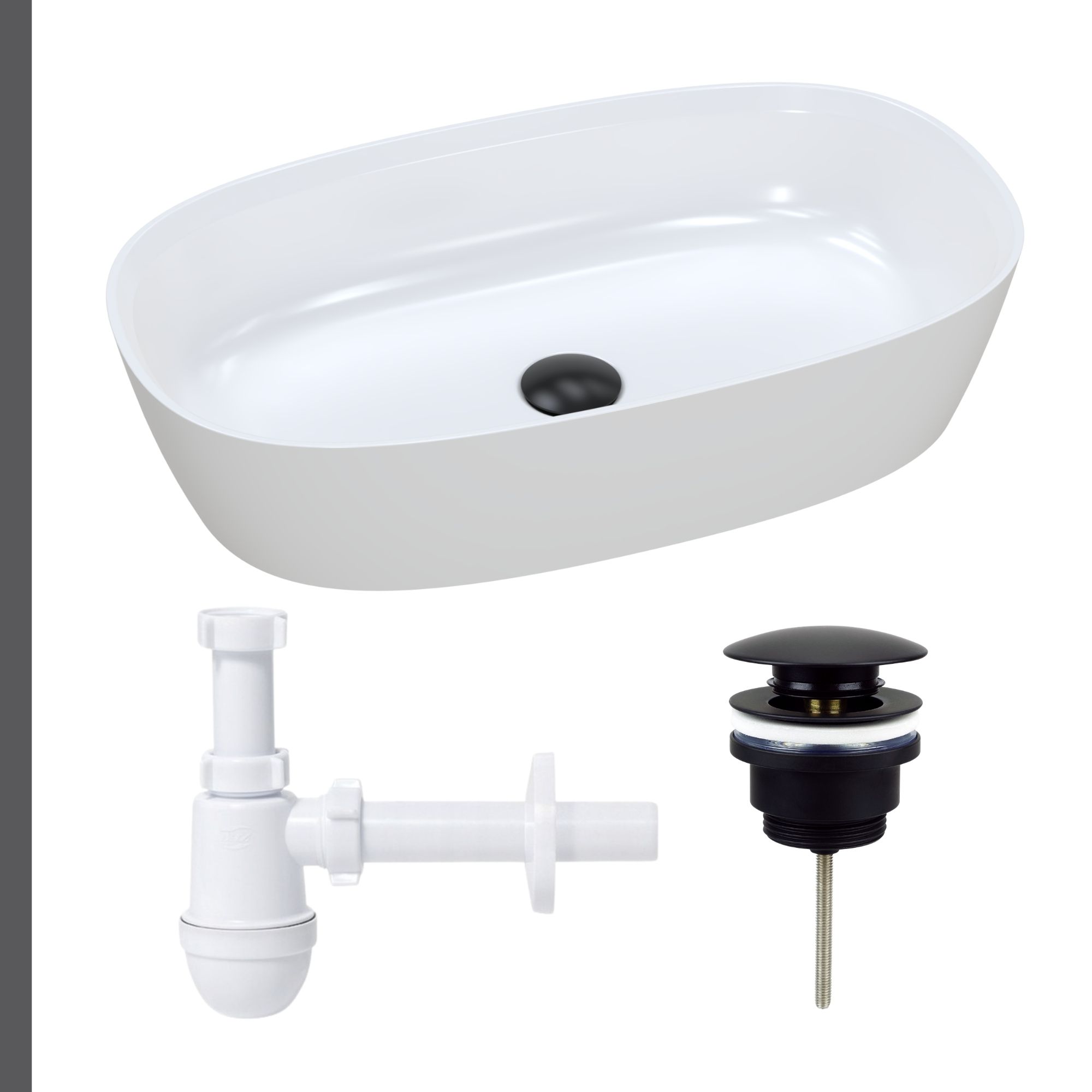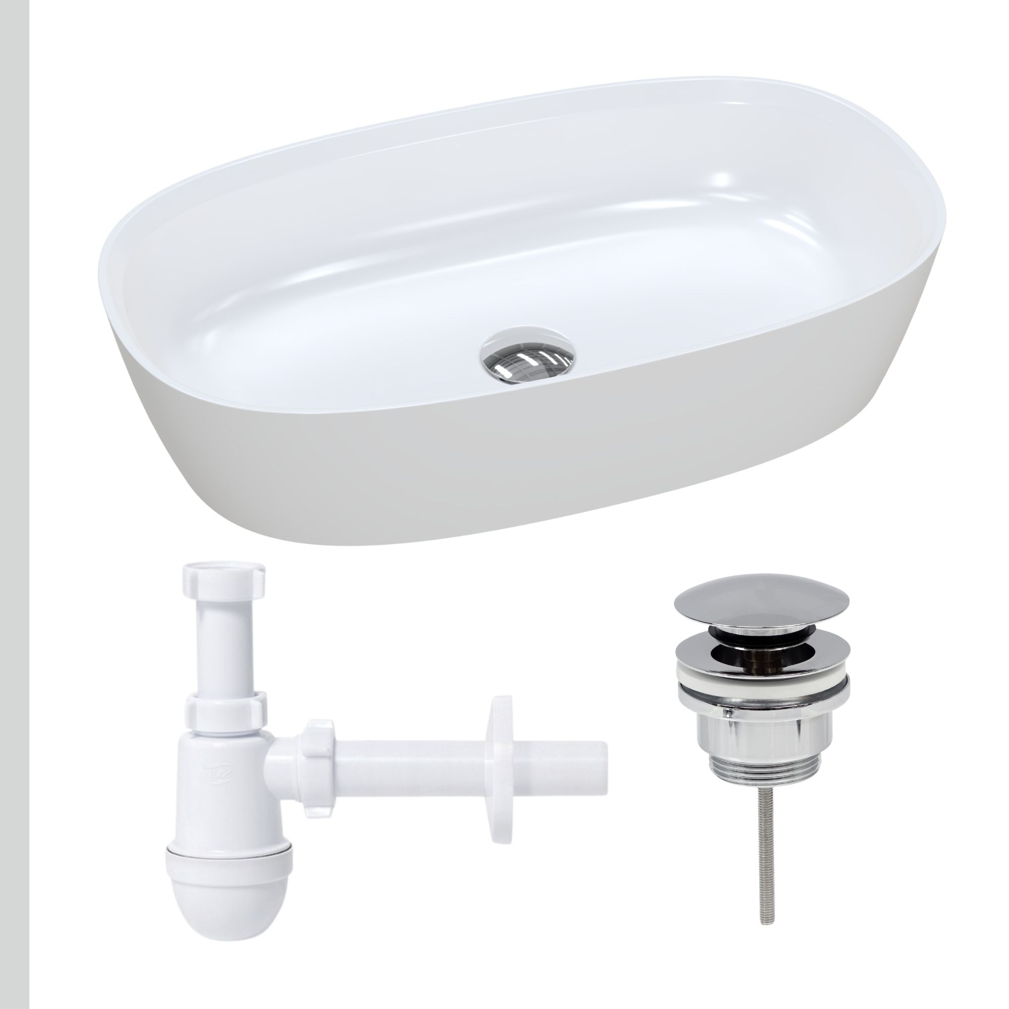 Nablatowa umywalka dolomitowa Lina Wide + korek klik klak + syfon