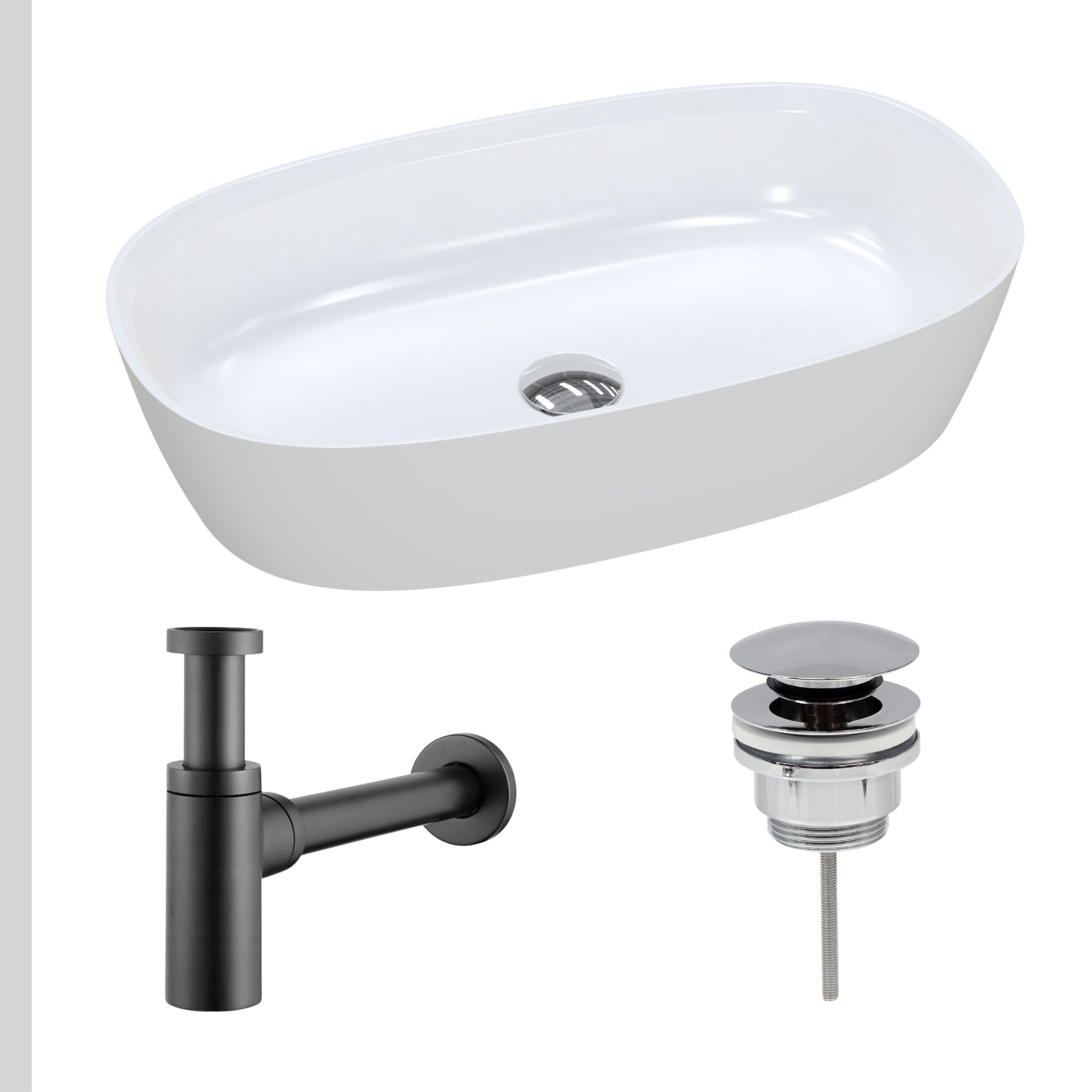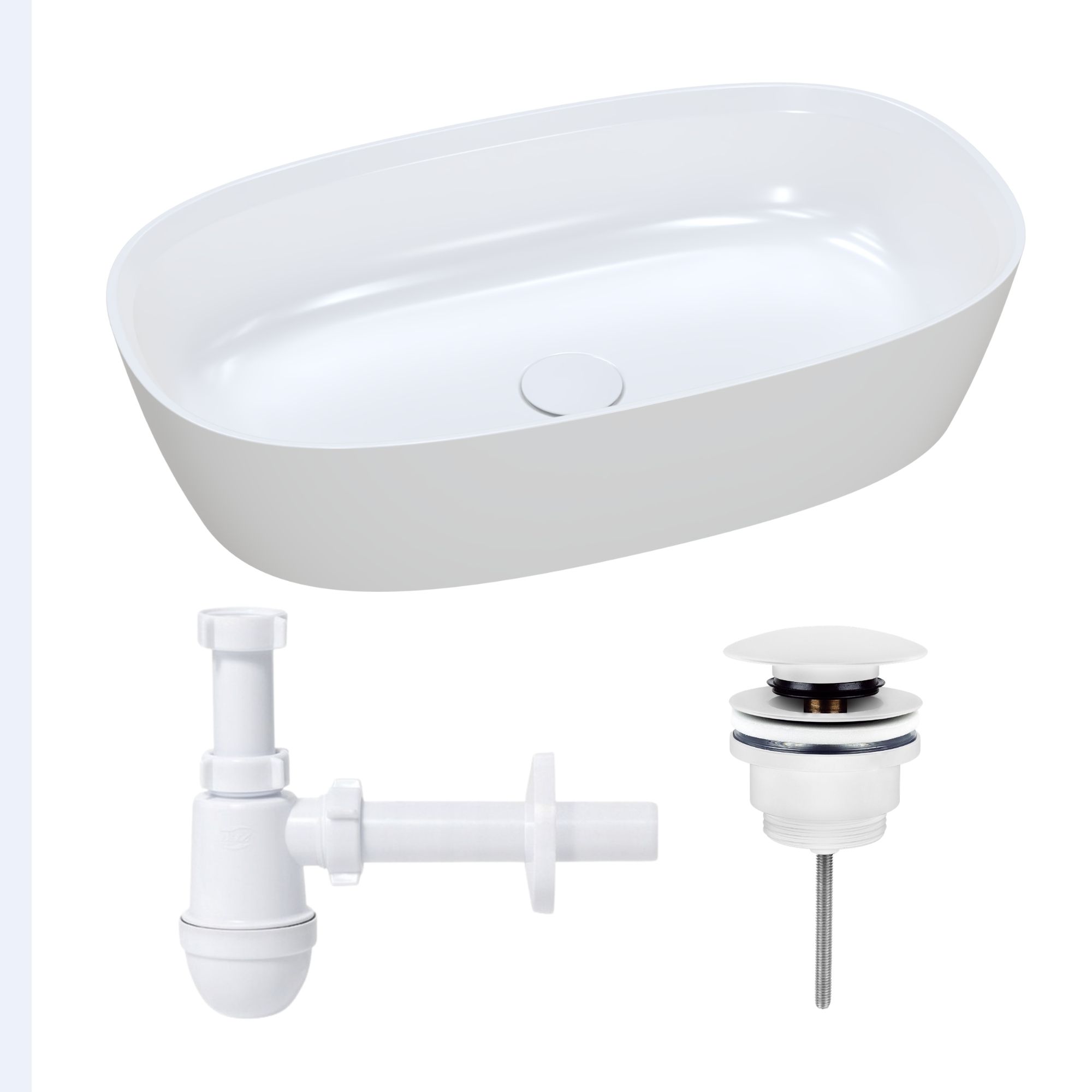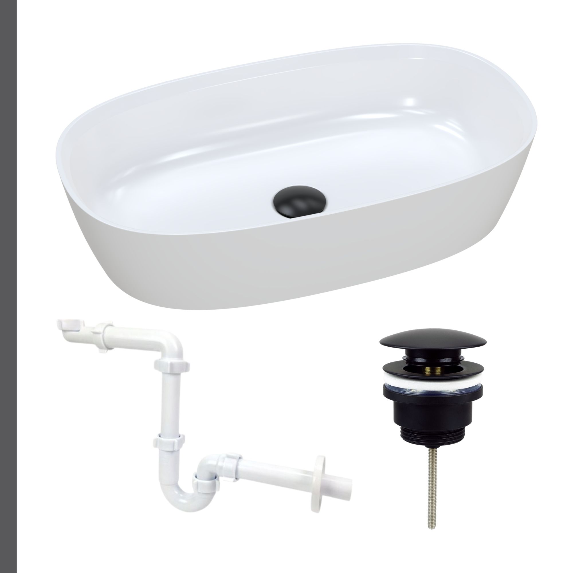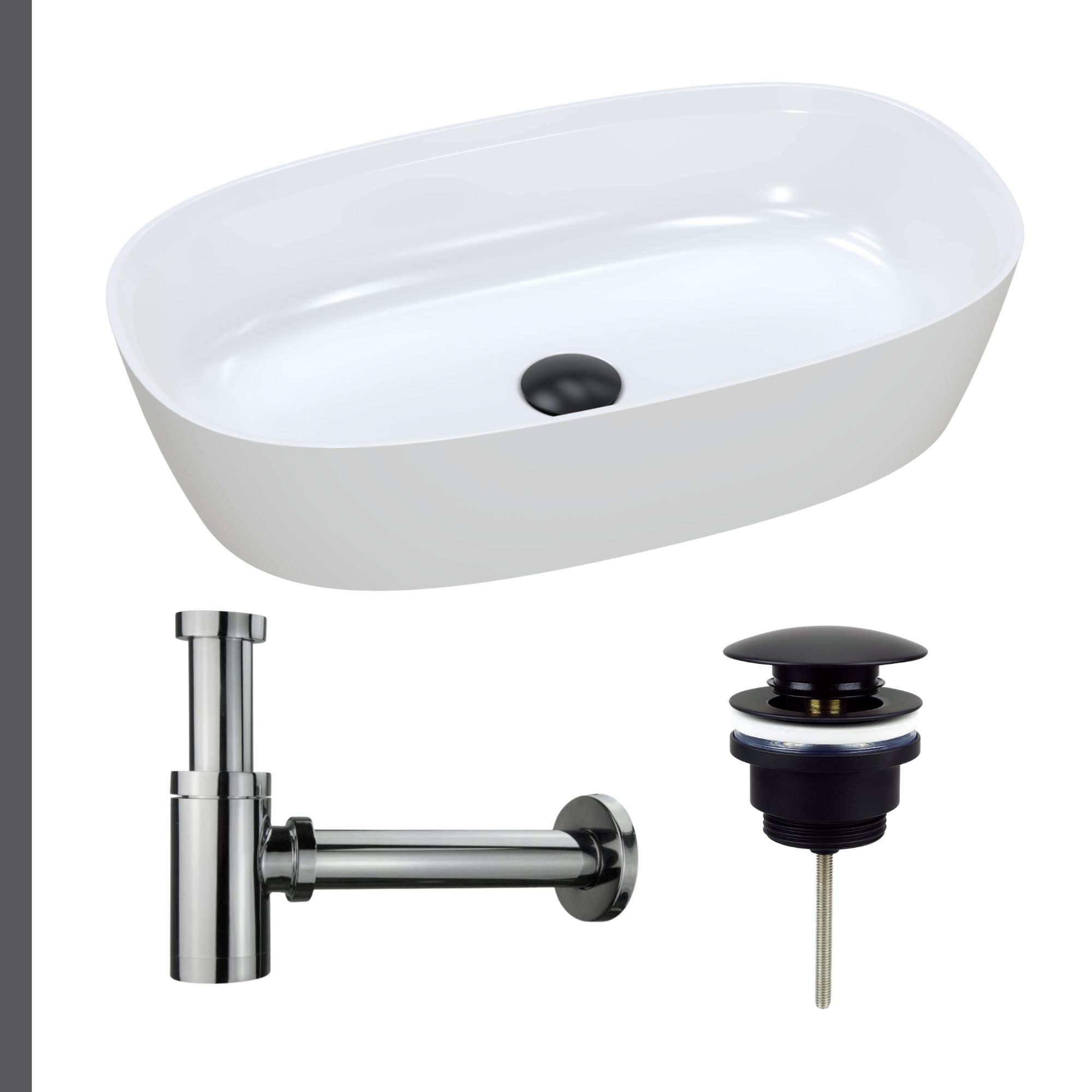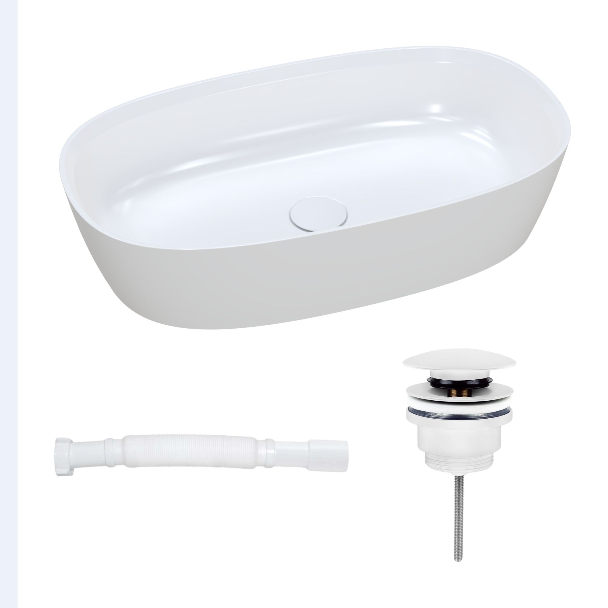 Nablatowa umywalka dolomitowa Lina Wide + korek klik klak + syfon