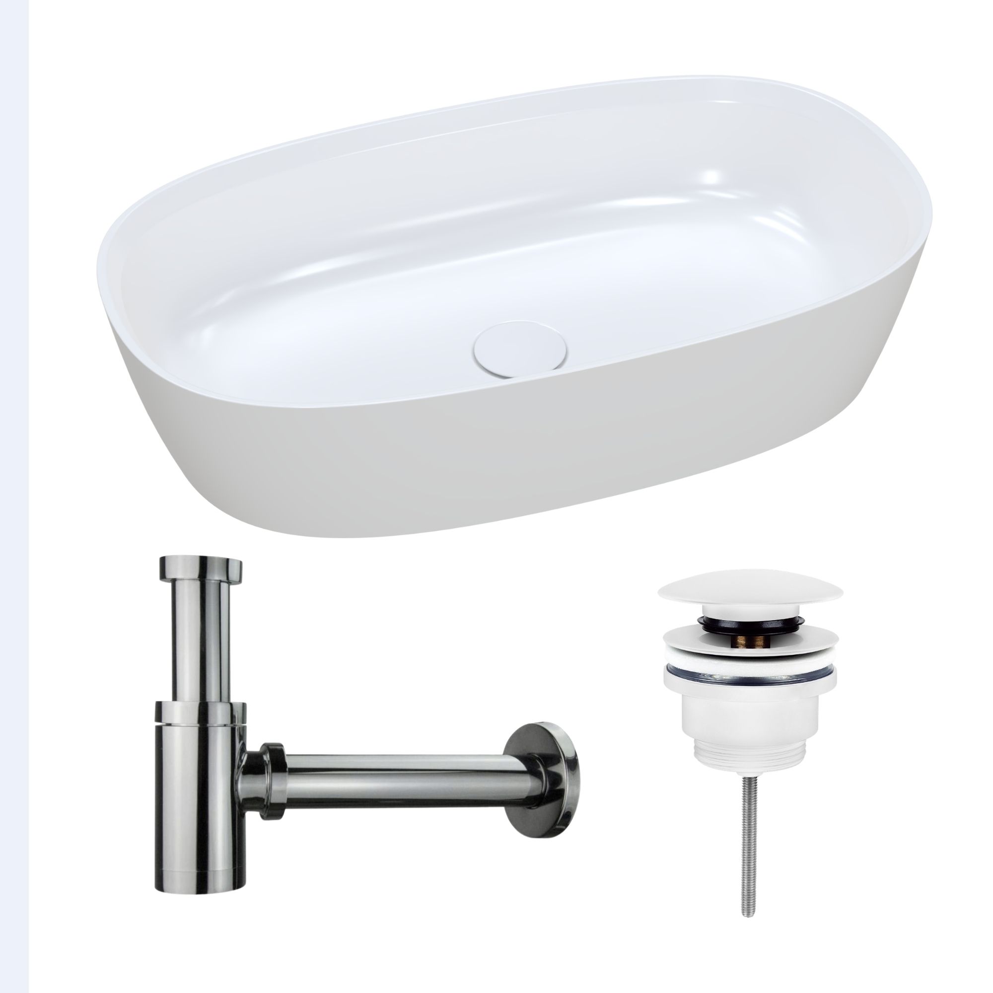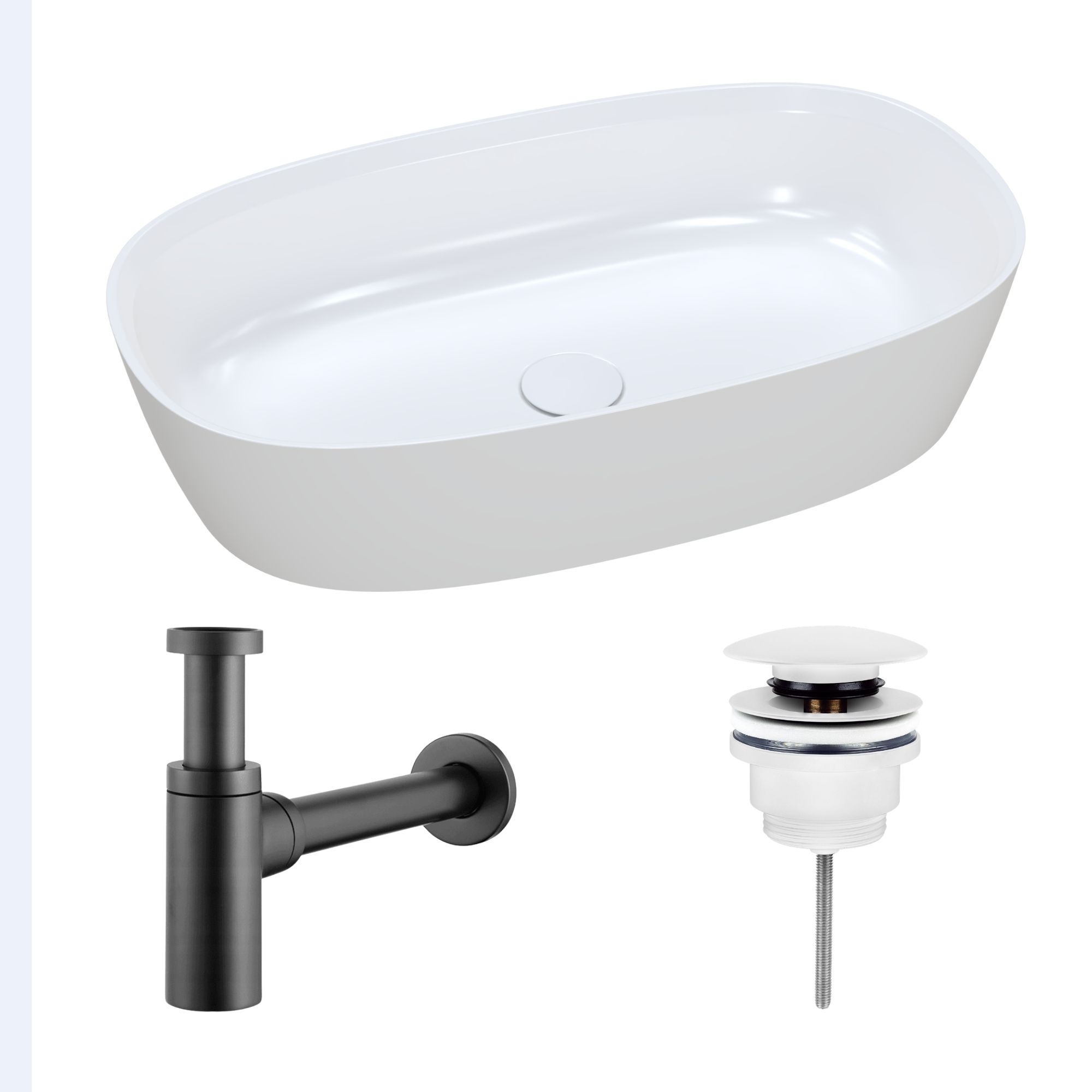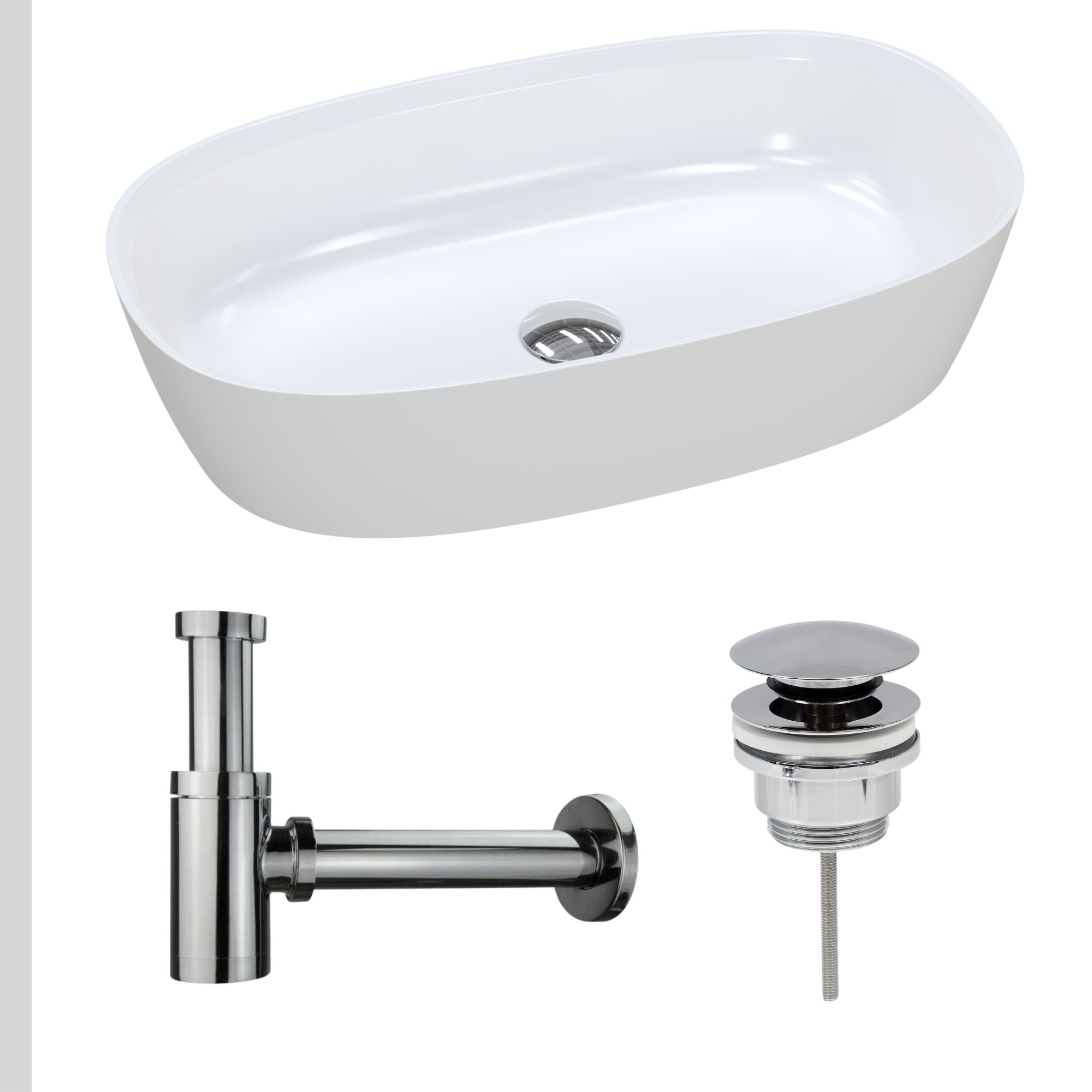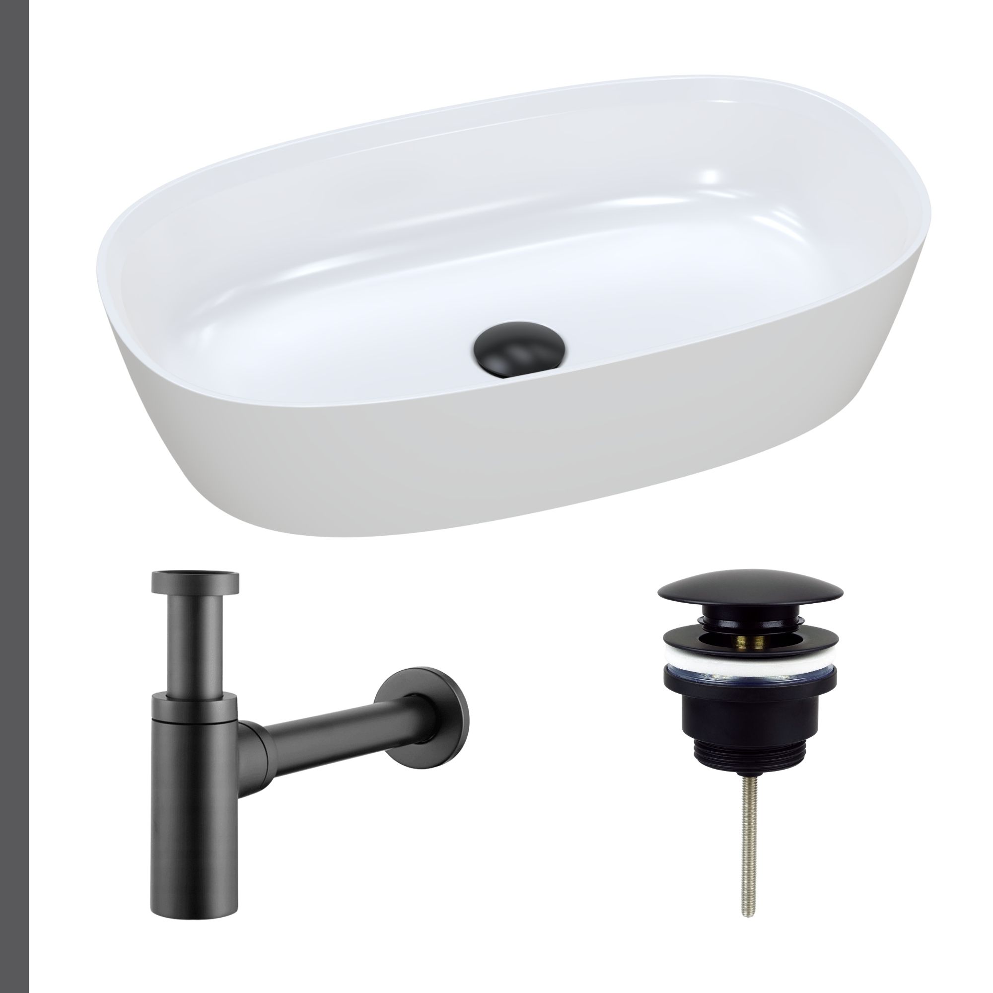 Nablatowa umywalka dolomitowa Lina Wide + korek klik klak + syfon