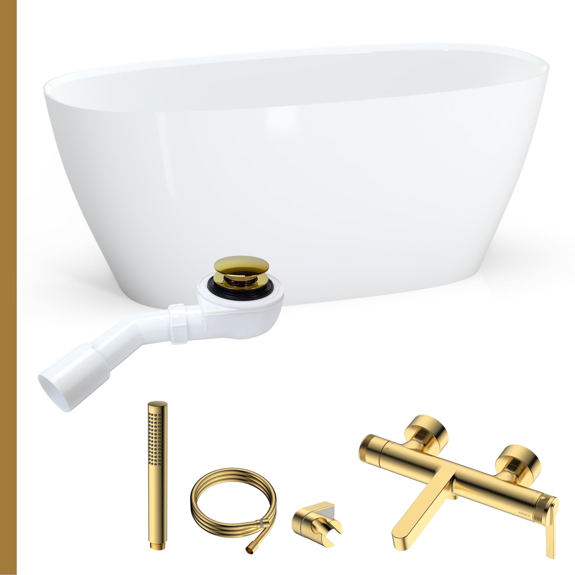 Zestaw SPA: Wanna Lena 150 + syfon + bateria wannowa ścienna z przełącznikiem natrysku Aurevo