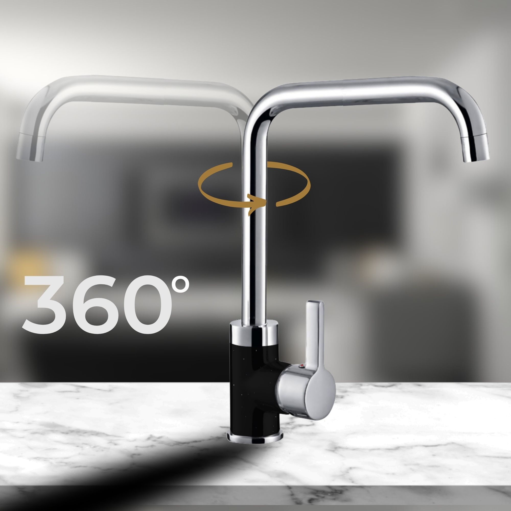Wylewkę 360° możesz wygodnie i łatwo obrócić w dowolnym kierunku. Zamontuj korpus w dowolną stronę – prawo/lewo ręcznie lub frontalnie.