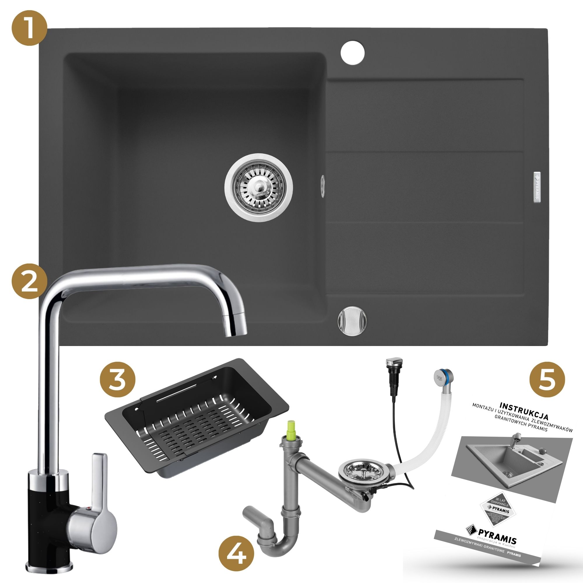 Zestaw Sparta Plus: zlew + bateria + syfon + wkładka regulowana