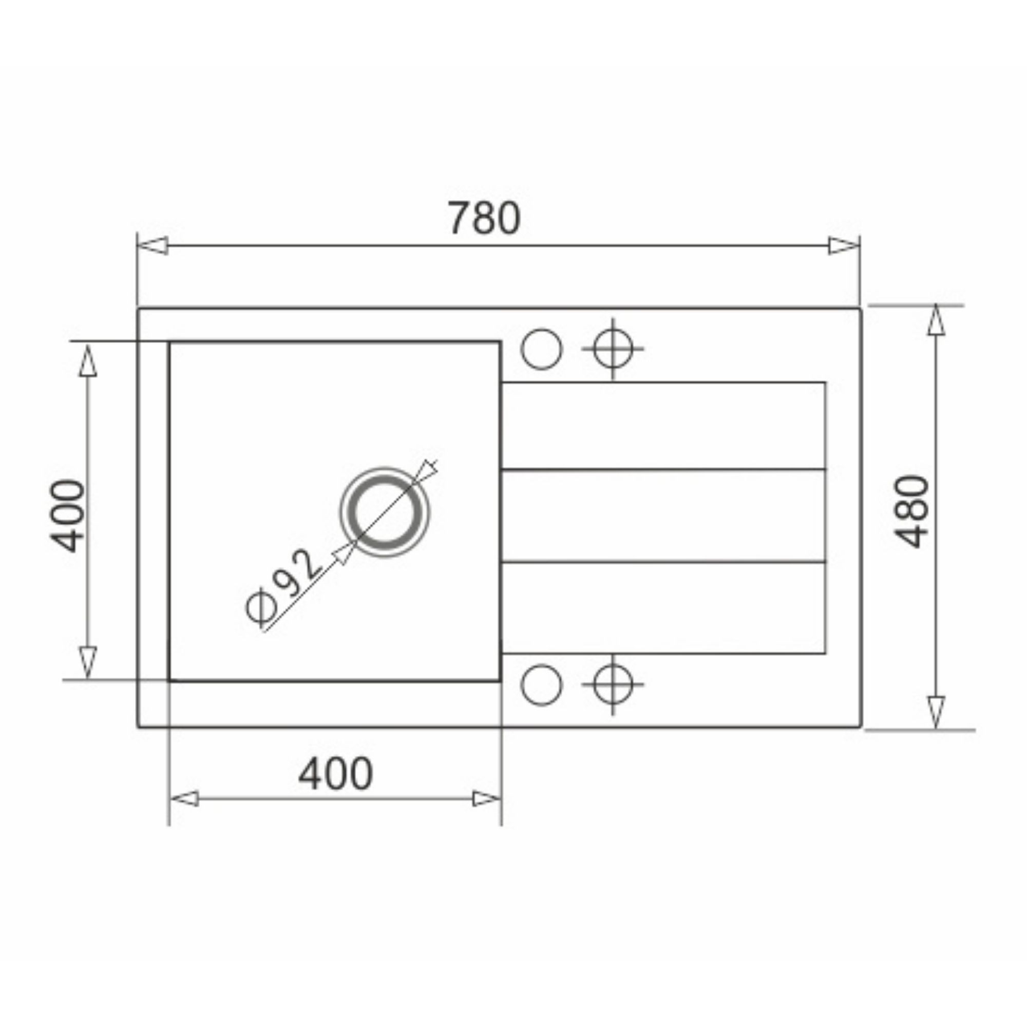 Zlew posiada dodatkowe 2 podwierty technologiczne dla łatwiejszego wiercenia otworów do akcesoriów.