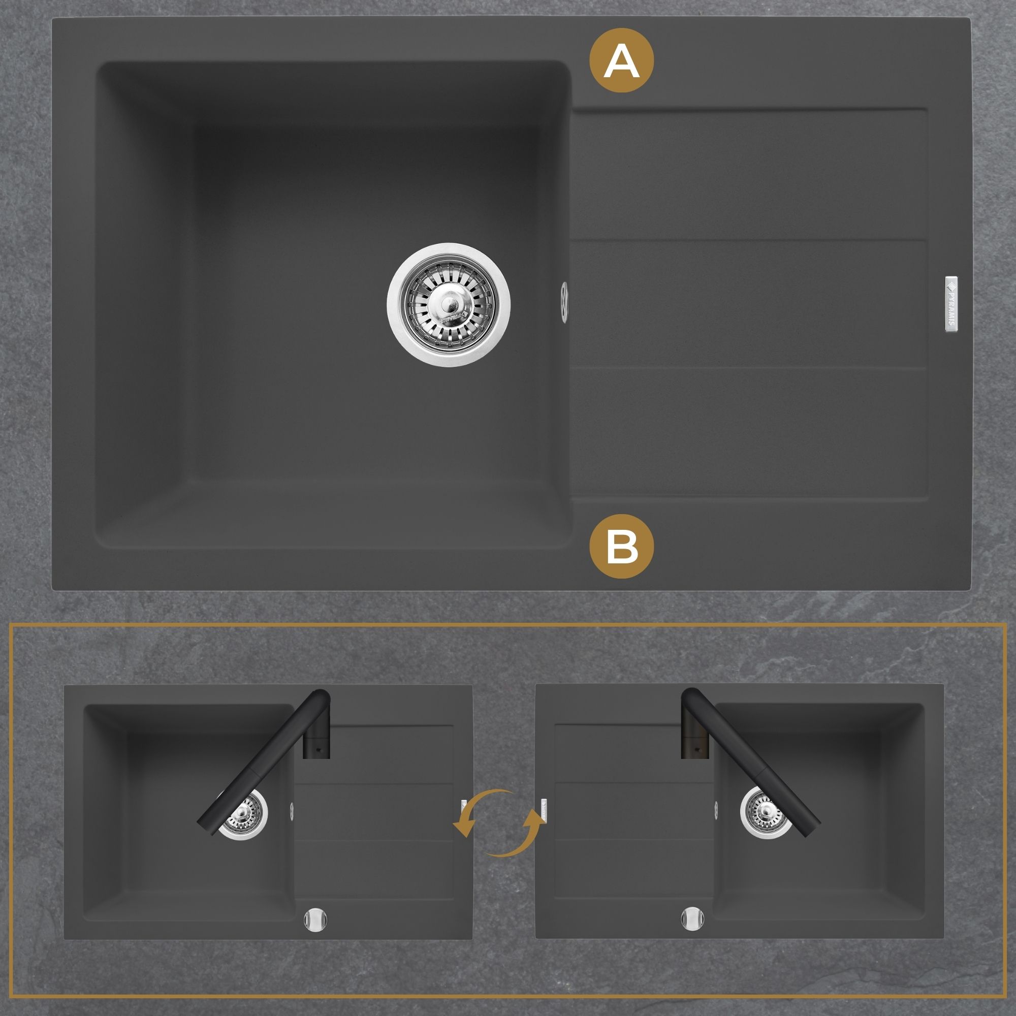 - Zlew odwracalny: montaż ociekacza z prawej lub lewej strony