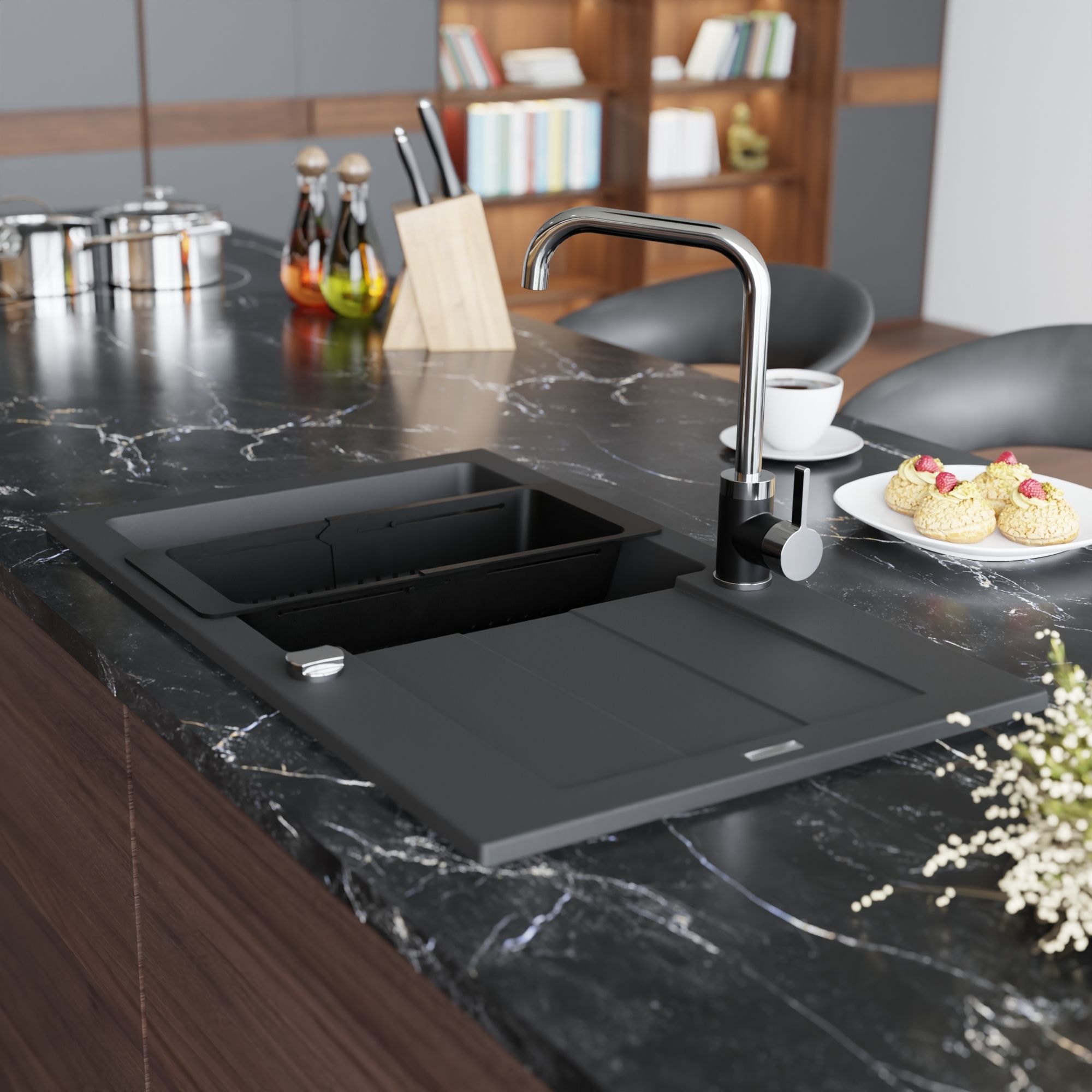 - Dodatkowa przestrzeń robocza, dzięki dzięki ociekaczowi idealnemu do suszenia naczyń lub odkładania produktów podczas gotowania.