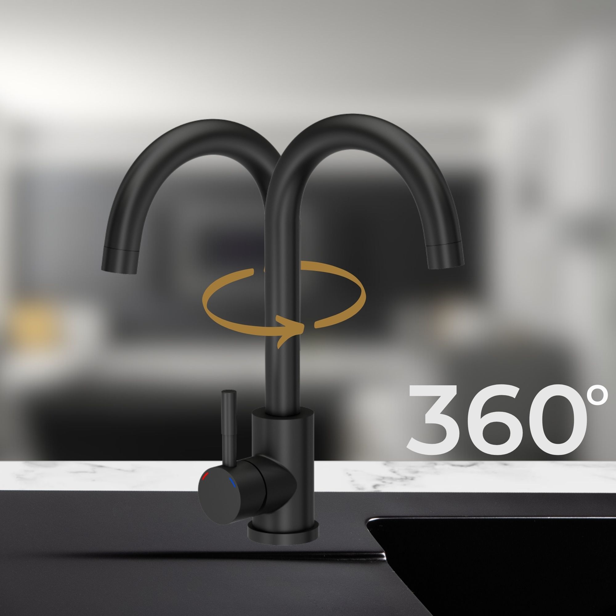 Wylewkę 360° możesz wygodnie i łatwo obrócić w dowolnym kierunku. Zamontuj korpus w dowolną stronę – prawo/lewo ręcznie lub frontalnie.
