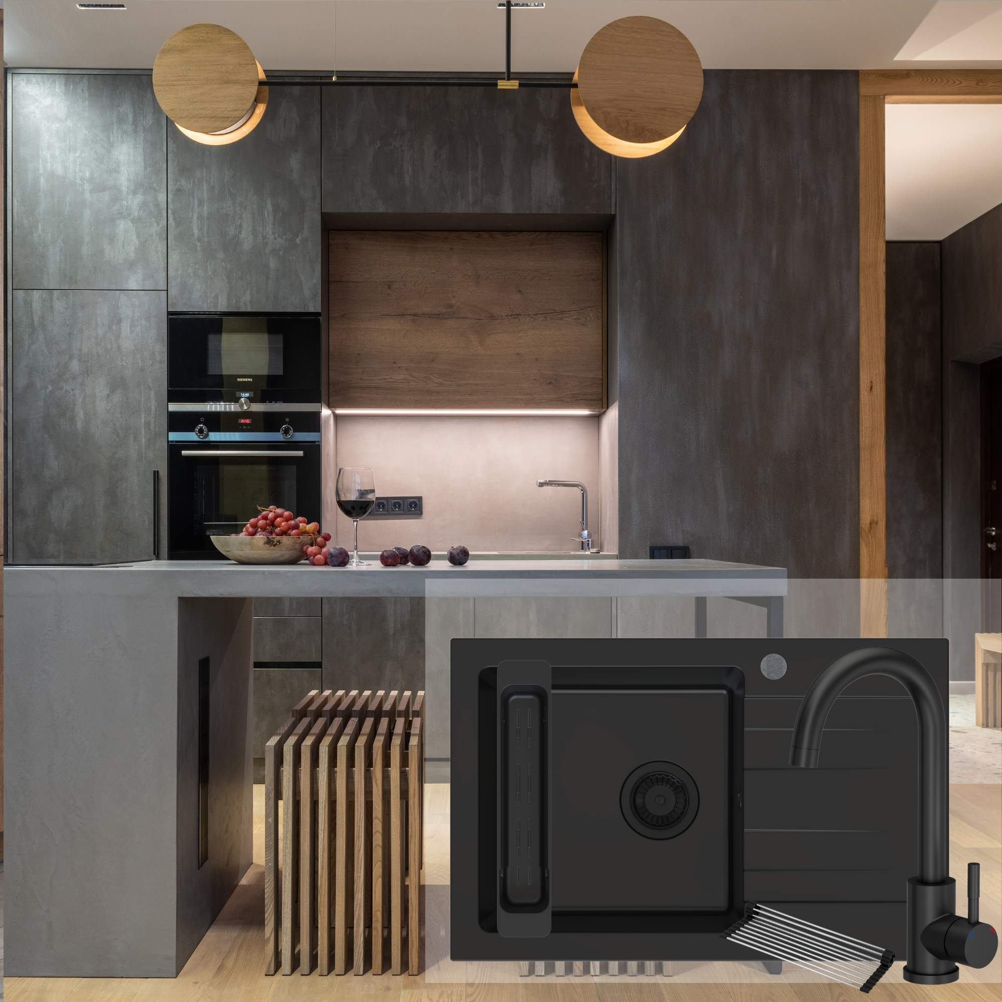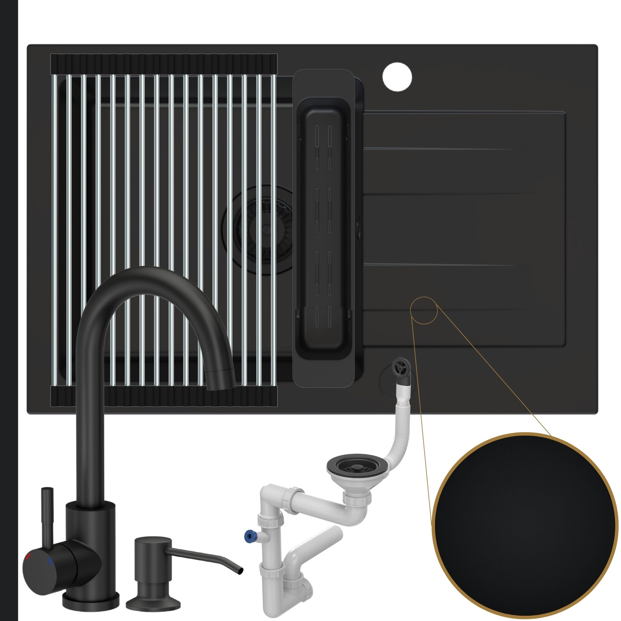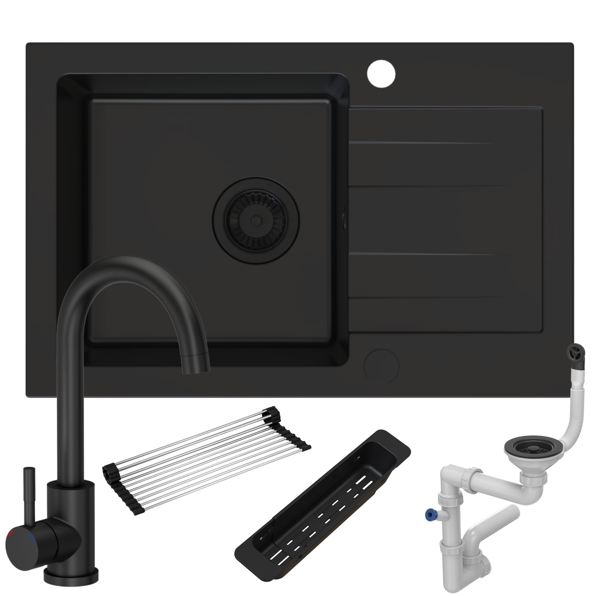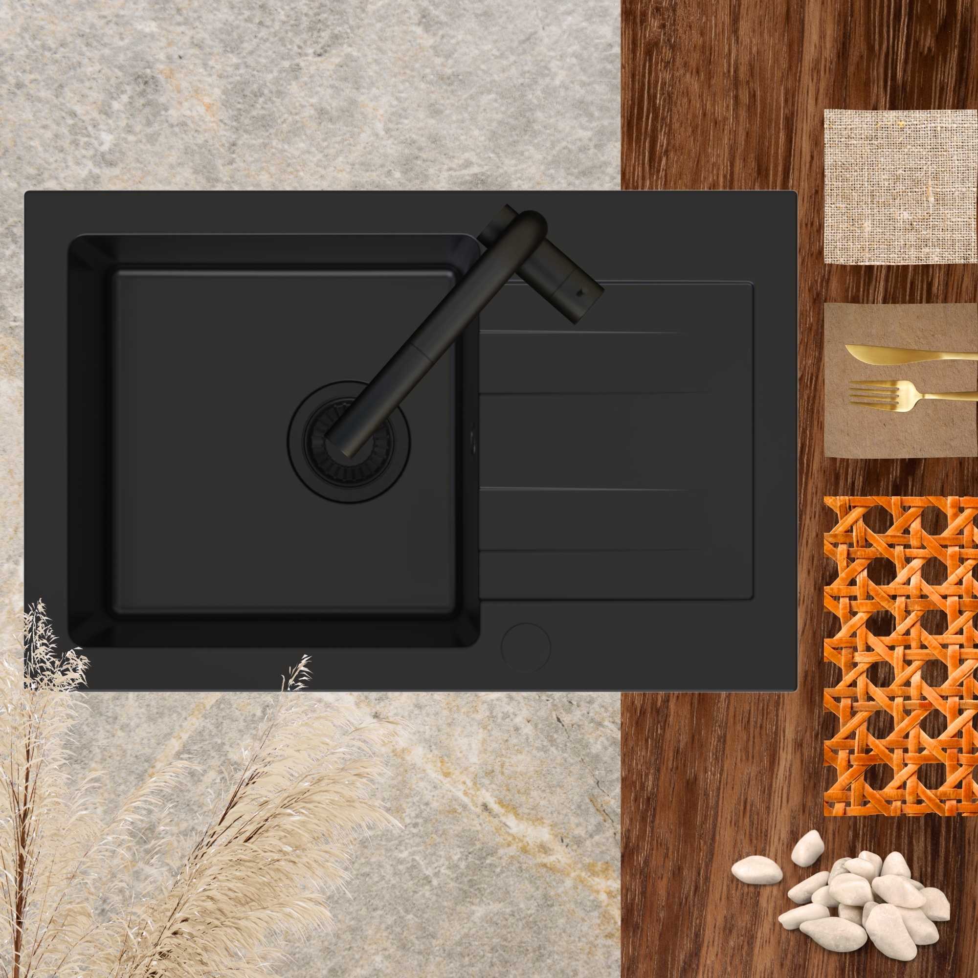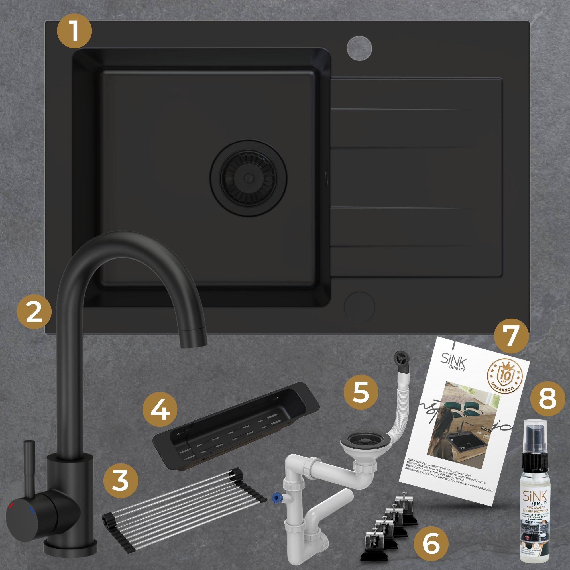 Zestaw | Czarny zlew Fabros 1KKO z czarną baterią Katie