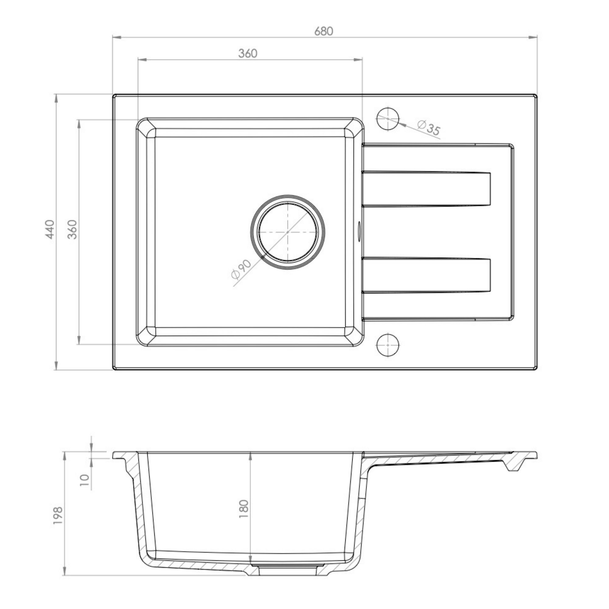 - Przyścienny syfon manualny, w kolorze czarnym. Wykonujemy otwory o standardowej średnicy 35 mm. Ilość otworów w zlewie dopasowana jest do wybranego syfonu.