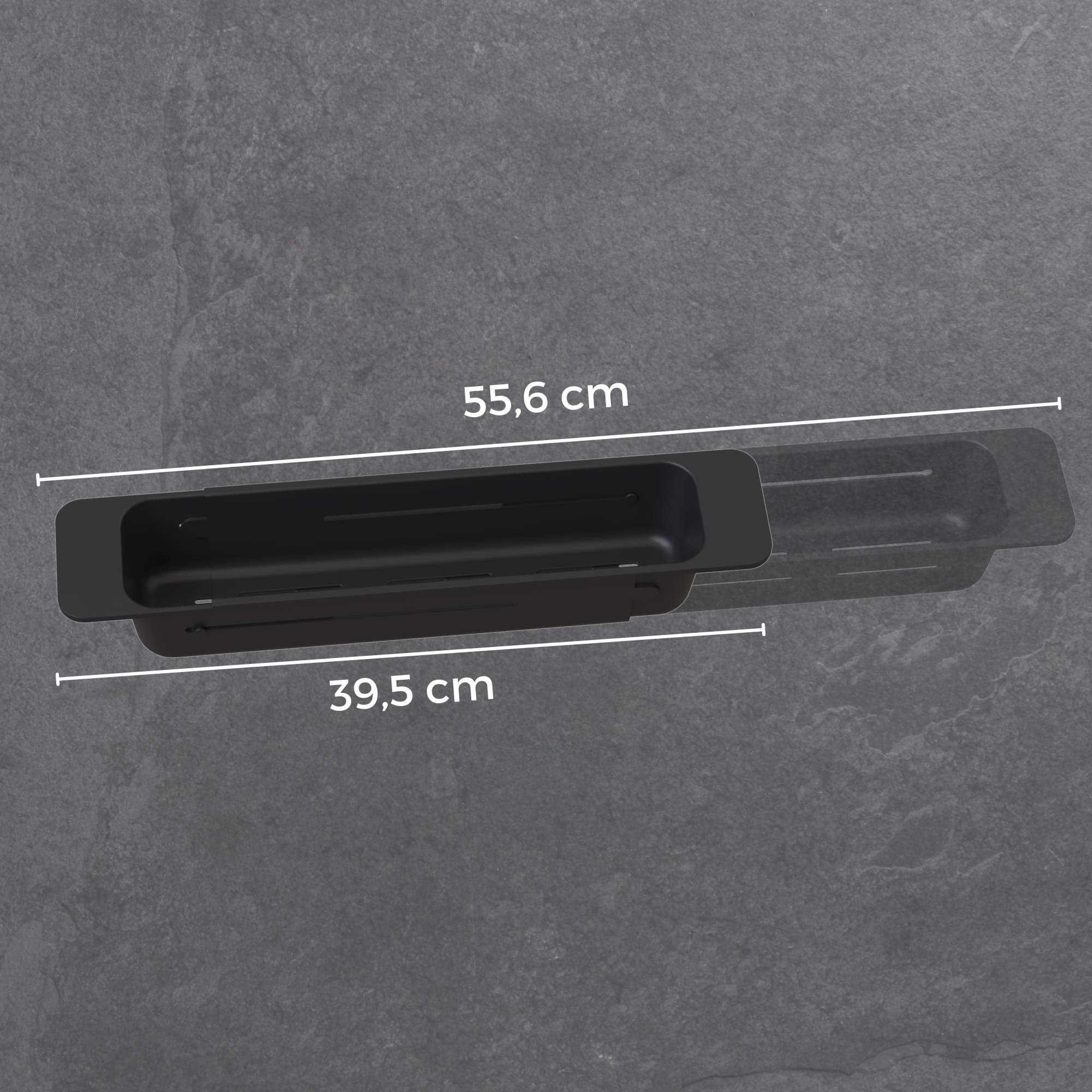 Doskonale sprawdza się podczas płukania warzyw i owoców zapewniając wygodę i higienę użytkowania. Jej uniwersalny design pasuje do większości zlewozmywaków, czyniąc ją praktycznym dodatkiem do codziennych obowiązków. Wkładka posiada regulowaną szerokość od 39,5 do 55,6 cm.