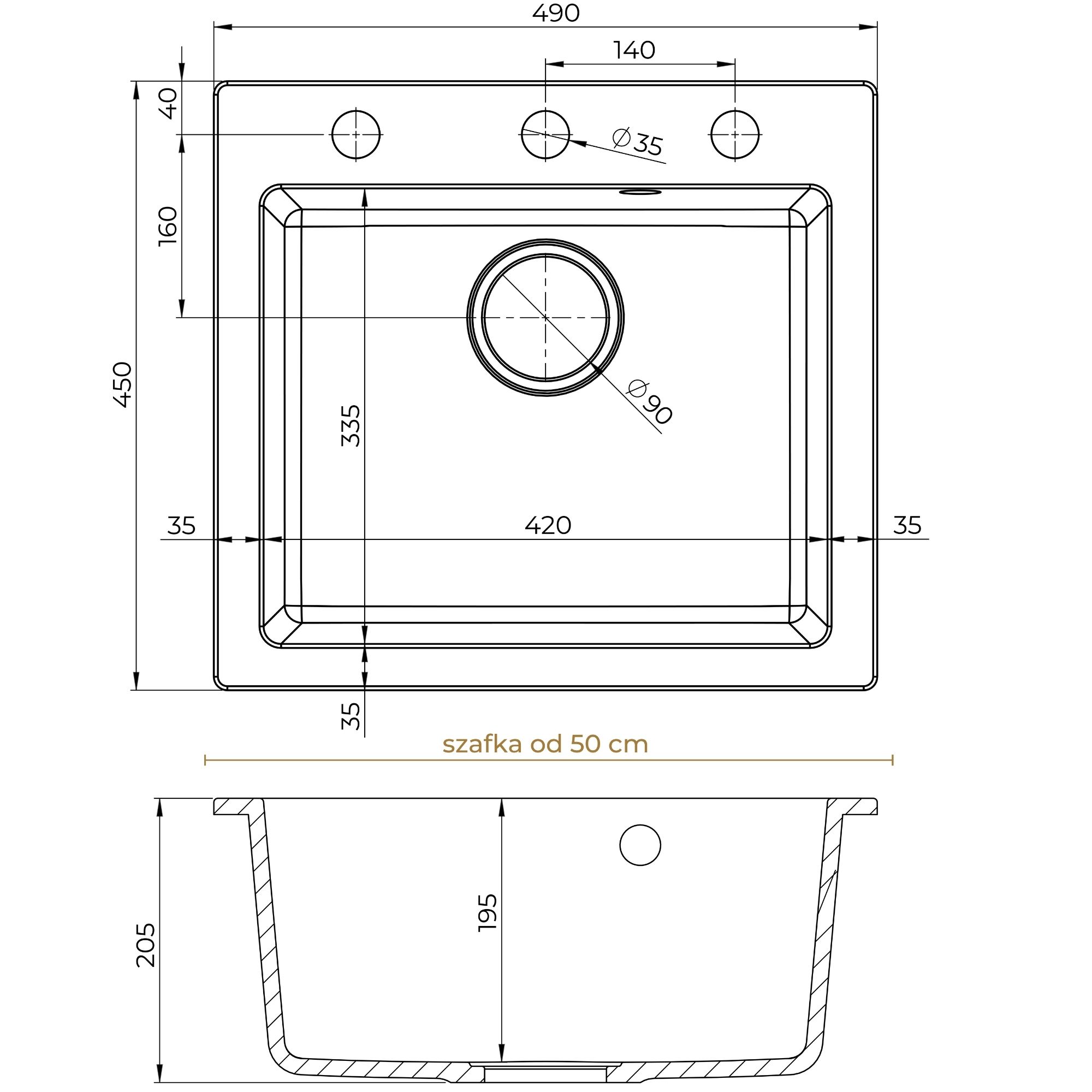 - Zlew do szafki od 50 cm