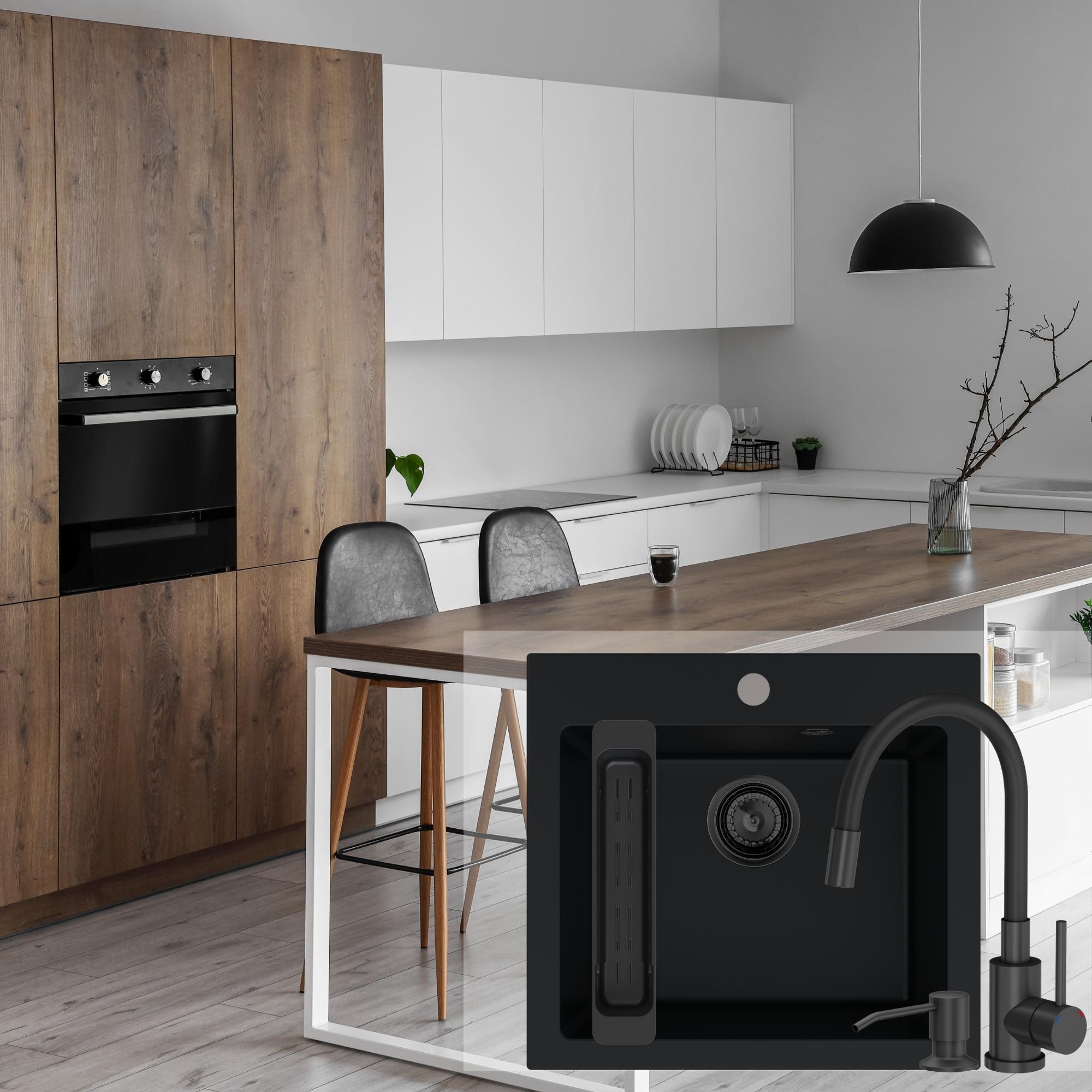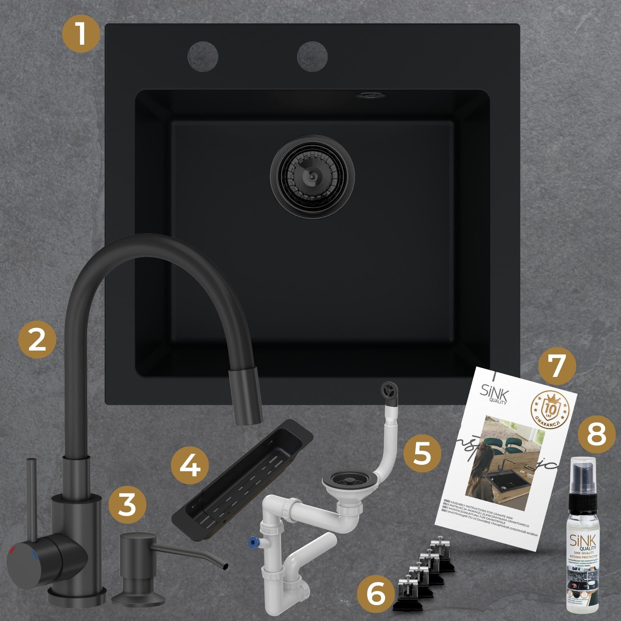 Zestaw | Czarny zlew Ferrum 1K50 z czarną baterią Megan
