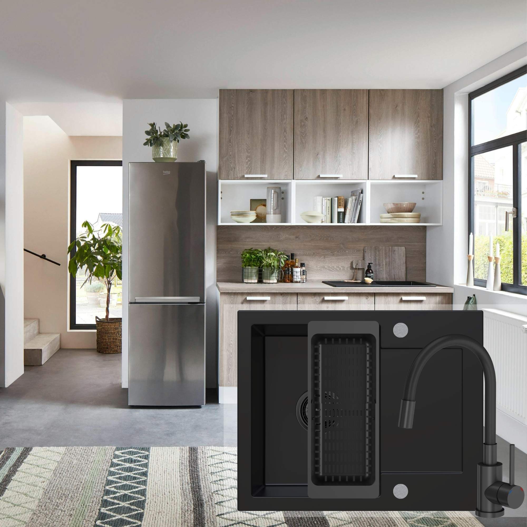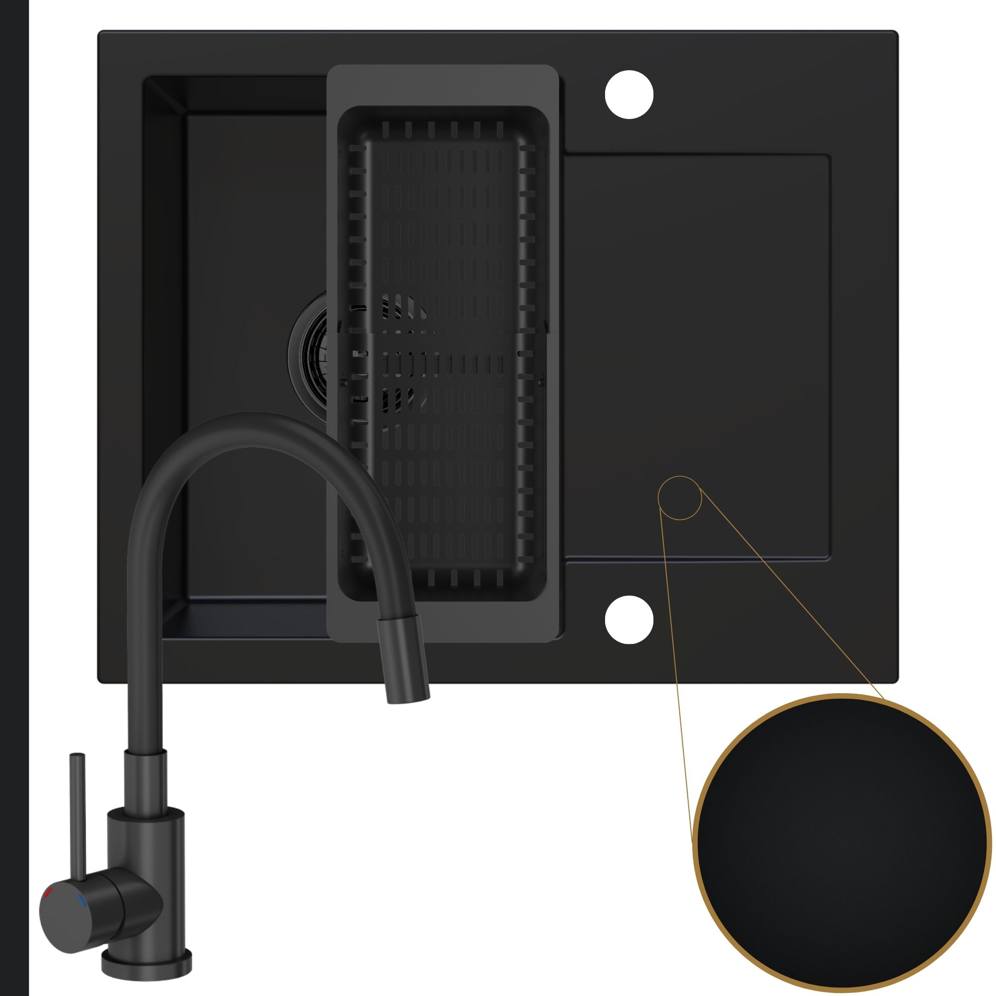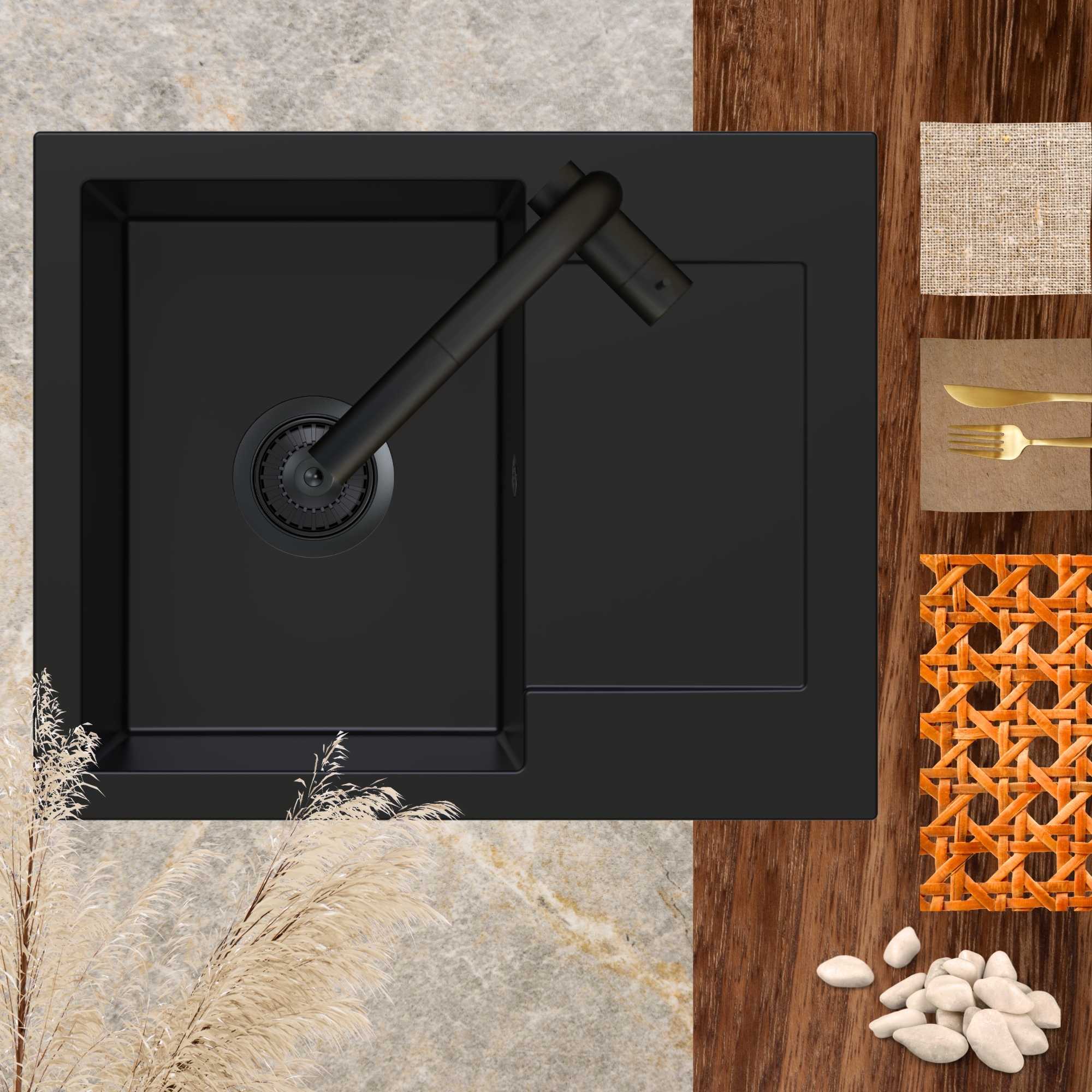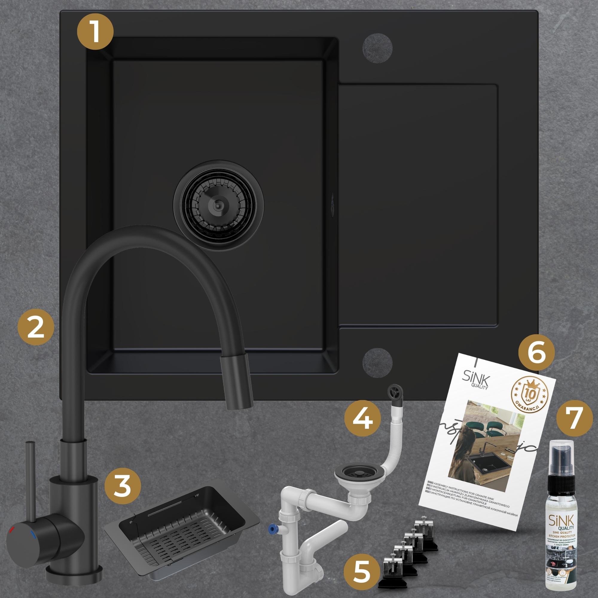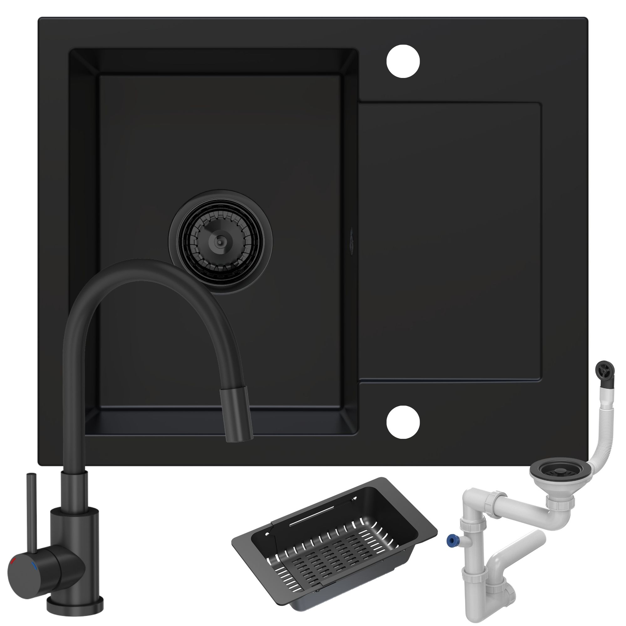 Zestaw | Czarny zlew Pixie 1KKO z czarną baterią Megan