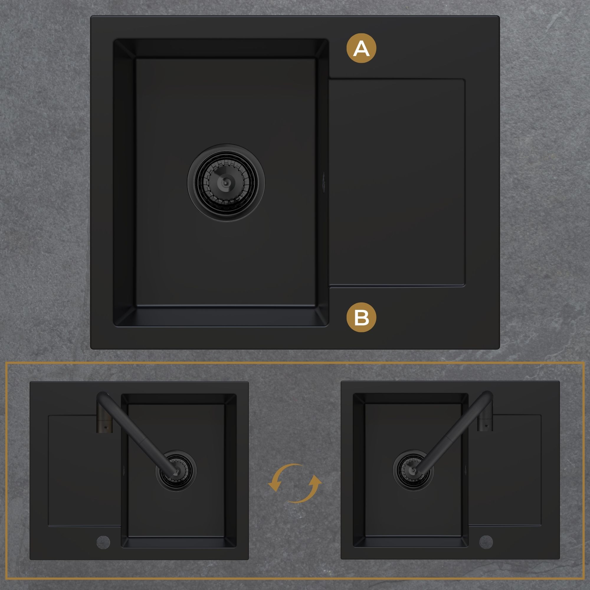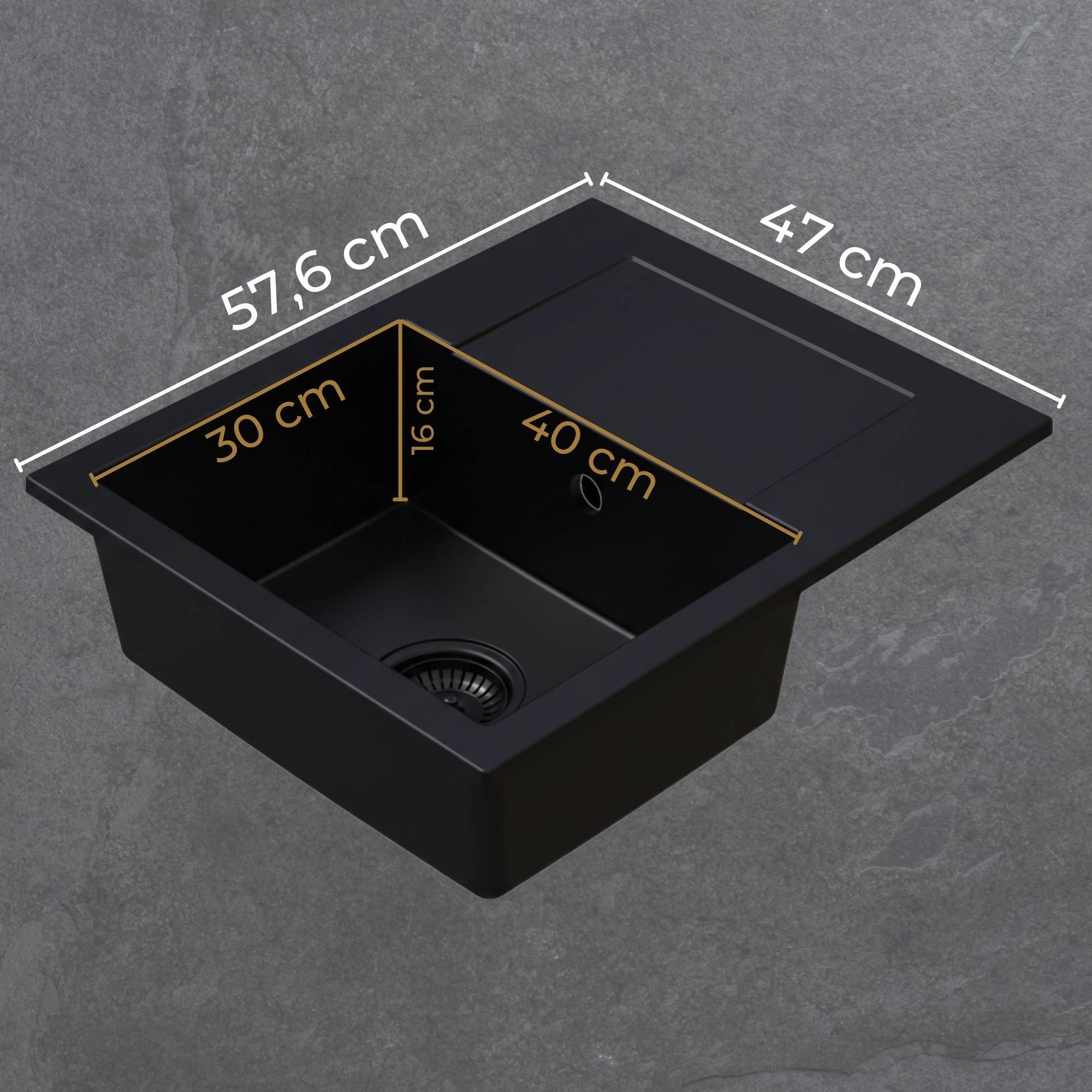 - Zlewozmywak granitowy PIXIE 1KKO w czarnym kolorze